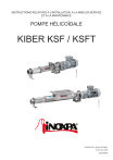 INSTRUCTIONS RELATIVES À L’INSTALLATION, À LA MISE EN SERVICE ET À LA MAINTENANCE POMPE HÉLICOÏDALE 01.611.32.0035 01.611.32.0030 KIBER KSF / KSFT Traduction du manuel d’origine 01.611.30.14FR (0) 2025/05 Déclaration de conformité CE INOXPA S.A.U. Telers, 60 17820 - Banyoles (Espagne) déclare sous sa responsabilité que la Machine : POMPE HÉLICOÏDALE Modèle : KIBER KSF / KIBER KSFT Type : KIBER KSF-20, KIBER 2KSF-20, KIBER KSF-25, KIBER 2KSF-25, KIBER KSF-30, KIBER 2KSF-30, KIBER KSF-40, KIBER 2KSF-40, KIBER KSF-50, KIBER 2KSF-50, KIBER KSF-60, KIBER KSF-80, KIBER KSFT-20, KIBER 2KSFT-20,KIBER KSFT-25, KIBER 2KSFT-25, KIBER KSFT-30, KIBER 2KSFT-30, KIBER KSFT-40, KIBER 2KSFT-40, KIBER KSFT-50, KIBER 2KSFT-50, KIBER KSFT-60, KIBER KSFT-80 Numéro de série : IXXXXXXXXX à IXXXXXXXXX XXXXXXXXXIINXXX à XXXXXXXXXIINXXX est conforme aux dispositions applicables des directives suivantes : Directive Machines 2006/42/CE Directive 2011/65/UE relative à la limitation de l'utilisation de certaines substances dangereuses dans les équipements électriques et électroniques Règlement (CE) nº 1935/2004 Règlement (CE) nº 2023/2006 et aux normes harmonisées et/ou aux règlements suivants : EN ISO 12100:2010 EN 809:1998+A1:2009/AC:2010 EN 60204-1:2018 EN ISO 14159:2008 EN 1672-2:2005+A1:2009 EN 12162:2001+A1:2009 EN ISO 13857:2019 EN CEI 63000:2018 Le dossier technique a été préparé par la personne qui signe le présent document. David Reyero Brunet Responsable du bureau technique 24/04/2025 Document : 01.611.30.15FR Révision : (0) 2025/04 confor m ité d e D é cl ar at i on INOXPA S.A.U. Telers, 60 17820 - Banyoles (Espagne) déclare sous sa responsabilité que la Machine : POMPE HÉLICOÏDALE Modèle : KIBER KSF / KIBER KSFT Type : KIBER KSF-20, KIBER 2KSF-20, KIBER KSF-25, KIBER 2KSF-25, KIBER KSF-30, KIBER 2KSF-30, KIBER KSF-40, KIBER 2KSF-40, KIBER KSF-50, KIBER 2KSF-50, KIBER KSF-60, KIBER KSF-80, KIBER KSFT-20, KIBER 2KSFT-20,KIBER KSFT-25, KIBER 2KSFT-25, KIBER KSFT-30, KIBER 2KSFT-30, KIBER KSFT-40, KIBER 2KSFT-40, KIBER KSFT-50, KIBER 2KSFT-50, KIBER KSFT-60, KIBER KSFT-80 Numéro de série : IXXXXXXXXX à IXXXXXXXXX XXXXXXXXXIINXXX à XXXXXXXXXIINXXX est conforme aux dispositions applicables des règlements suivants : Supply of Machinery (Safety) Regulations 2008 Règlement de 2012 sur la restriction de l'utilisation de certaines substances dangereuses dans les équipements électriques et électroniques (tel que modifié) et aux normes harmonisées suivantes : EN ISO 12100:2010 EN 809:1998+A1:2009/AC:2010 EN 60204-1:2018 EN ISO 14159:2008 EN 1672-2:2005+A1:2009 EN 12162:2001+A1:2009 EN ISO 13857:2008 EN CEI 63000:2018 Le dossier technique a été préparé par la personne qui signe le présent document. David Reyero Brunet Responsable du bureau technique 24/04/2025 Document : 01.611.30.16FR Révision : (0) 2025/04 1. Table des matières 1. Table des matières 2. Informations générales 2.1. Manuel d’instructions......................................................................................................................................... 5 2.2. Conformité aux instructions............................................................................................................................. 5 2.3. Garantie................................................................................................................................................................. 5 3. Sécurité 3.1. Symboles d’avertissement............................................................................................................................... 6 3.2. Consignes générales de sécurité.................................................................................................................. 6 4. Informations générales 4.1. Description............................................................................................................................................................ 7 4.2. Application............................................................................................................................................................. 7 5. Installation 5.1. Réception de la pompe..................................................................................................................................... 8 5.2. Identification de la pompe................................................................................................................................ 8 5.3. Transport et stockage........................................................................................................................................ 8 5.4. Emplacement....................................................................................................................................................... 9 5.5. Tuyauteries........................................................................................................................................................... 9 5.6. Système auxiliaire pour les garnitures mécaniques.............................................................................. 10 5.7. By-pass de pression.........................................................................................................................................11 5.8. Installation électrique....................................................................................................................................... 12 6. Mise en service 6.1. Mise en service.................................................................................................................................................. 13 6.2. Vérifications lors de la mise en service de la pompe............................................................................ 13 7. Dysfonctionnements 8. Maintenance 8.1. Informations générales...........................................................................................................