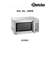 DIG, 25L, 1000W 610181 Bartscher GmbH Franz-Kleine-Str. 28 D-33154 Salzkotten Allemagne tél. +49 5258 971-0 fax : +49 5258 971-120 Hotline technique : +49 5258 971-197 www.bartscher.com Version: 5.0 Date de création : 2025-06-30 FR Manuel d'utilisation original 1 2 3 4 5 6 7 8 Sécurité ......................................................................................................... 2 1.1 Explication des avertissements ................................................................ 2 1.2 Consignes de sécurité ............................................................................. 3 1.3 Utilisation conforme à l’usage .................................................................. 8 1.4 Utilisation non conforme à l’usage ........................................................... 8 Généralités .................................................................................................... 9 2.1 Responsabilité et garantie ....................................................................... 9 2.2 Protection des droits d’auteur .................................................................. 9 2.3 Déclaration de conformité ........................................................................ 9 Transport, emballage et stockage ............................................................... 10 3.1 Inspection suite au transport .................................................................. 10 3.2 Emballage .............................................................................................. 10 3.3 Stockage ................................................................................................ 10 Paramètres techniques ................................................................................ 11 4.1 Indications techniques ........................................................................... 11 4.2 Fonctions de l’appareil ........................................................................... 12 4.3 Éléments de l’appareil............................................................................ 13 Installation et utilisation ............................................................................... 14 5.1 Installation.............................................................................................. 14 5.2 Principes de base pour la cuisson dans un four à micro-ondes ............. 15 5.3 Récipients adaptés à l’utilisation dans des fours à micro-ondes ............ 16 5.4 Utilisation ............................................................................................... 17 Nettoyage .................................................................................................... 23 6.1 Consignes de sécurité pour le nettoyage ............................................... 23 6.2 Nettoyage .............................................................................................. 24 Défaillances possibles ................................................................................. 25 Élimination des déchets ............................................................................... 26 610181 1 / 28 Sécurité Diese Bedi enungsanlei tung besc hrei bt di e Installation, Bedi enung und Wartung des Geräts und gilt als wic htige Inform ationsquelle und N achschl agew erk. Z najom ość w szystkich zaw artyc h w ni ej wsk az ówek dotycz ącyc h bezpi ecz eńs twa i obsł ugi stanowi w arunek bez pi ecz nej i prawi dłow ej pr acy z urządz eni em. Ponadto należy przestrzeg ać odpowi ednio do mi ejsca użytk owani a urządz eni a l okal nyc h przepis ów dotycz ącyc h z apobieg ani a wy padk om oraz og ólnyc h zas ad BH P. Dies e Bedi enungsanleitung is t Bes tandteil des Produkts und m uss i n unmittelbarer N ähe des Ger äts für das In¬s tall ations-, Bedi enungs-, W artungs- und R einigungspers onal j ederzei t z ugänglich auf¬bewahrt w erden. W enn das Ger ät an eine dritte Pers on weitergegeben wird, muss die Bedi enungsanlei tung mit ausgehändigt wer den. Avant d’utiliser l’appareil, lire attentivement la notice et la conserver dans un endroit facilement accessible, à proximité de l’appareil ! La présente notice d’utilisation décrit l’installation, la manipulation et la maintenance de l’appareil, elle est une source d’informations importante et un ouvrage de référence. La connaissance de toutes les consignes de sécurité et d’utilisation comprises dans la présente notice est une condition indispensable pour assurer le fonctionnement correct et en toute sécurité de l’appareil. Avant de mettre en marche l’appareil, lire la présente notice d’utilisation, pour éviter les blessures et les dommages matériels. Une utilisation incorrecte peut endommager l’appareil. À chaque étape d’utilisation de l’appareil, toutes les informations essentielles contenues dans le mode d’emploi doivent être accessibles pour le personnel. C’est l’opérateur qui est responsable de leur disponibilité. Outre le mode d’emploi, il est impératif de respecter les règles générales et la loi en en vigueur, relatives à la sécurité du travail et à la protection de l’environnement. FR 1 Sécurité L’appareil est conçu d’après les règles techniques en vigueur. Cependant, l’appareil peut constituer une source de dangers, s’il n’est pas utilisé correctement ou conformément à son usage. Toutes les personnes qui utilisent l’appareil doivent se tenir aux indications mentionnées dans la présente notice d’utilisation et respecter les consignes de sécurité. 1.1 Explication des avertissements Les indications importantes relatives à la sécurité ainsi que les avertissements sont désignés dans la présente notice par des mentions d’avertissement adéquates. Ces indications doivent être impérativement respectées, pour éviter les accidents, les blessures et les dommages matériels. DANGER ! La mention d