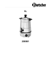 5L 200061 Bartscher GmbH Franz-Kleine-Str. 28 D-33154 Salzkotten Allemagne tél. +49 5258 971-0 fax : +49 5258 971-120 Hotline technique : +49 5258 971-197 www.bartscher.com Version: 5.0 Date de création : 2025-05-21 FR Manuel d'utilisation original 1 2 3 4 5 6 7 8 Sécurité ......................................................................................................... 2 1.1 Explication des avertissements ................................................................ 2 1.2 Consignes de sécurité ............................................................................. 3 1.3 Utilisation conforme à l’usage .................................................................. 7 1.4 Utilisation non conforme à l’usage ........................................................... 7 Généralités .................................................................................................... 8 2.1 Responsabilité et garantie ....................................................................... 8 2.2 Protection des droits d’auteur .................................................................. 8 2.3 Déclaration de conformité ........................................................................ 8 Transport, emballage et stockage ................................................................. 9 3.1 Inspection suite au transport .................................................................... 9 3.2 Emballage ................................................................................................ 9 3.3 Stockage .................................................................................................. 9 Paramètres techniques ................................................................................ 10 4.1 Indications techniques ........................................................................... 10 4.2 Éléments de l’appareil............................................................................ 11 4.3 Fonctions de l’appareil ........................................................................... 11 Installation et utilisation ............................................................................... 12 5.1 Installation.............................................................................................. 12 5.2 Utilisation ............................................................................................... 13 Nettoyage et détartrage ............................................................................... 15 Nettoyage .................................................................................................... 15 7.1 Consignes de sécurité pour le nettoyage ............................................... 16 7.2 Nettoyage .............................................................................................. 16 7.3 Détartrage .............................................................................................. 17 Élimination des déchets ............................................................................... 18 200061 1 / 20 Sécurité Diese Bedi enungsanlei tung besc hrei bt di e Installation, Bedi enung und Wartung des Geräts und gilt als wic htige Inform ationsquelle und N achschl agew erk. Z najom ość w szystkich zaw artyc h w ni ej wsk az ówek dotycz ącyc h bezpi ecz eńs twa i obsł ugi stanowi w arunek bez pi ecz nej i prawi dłow ej pr acy z urządz eni em. Ponadto należy przestrzeg ać odpowi ednio do mi ejsca użytk owani a urządz eni a l okal nyc h przepis ów dotycz ącyc h z apobieg ani a wy padk om oraz og ólnyc h zas ad BH P. Dies e Bedi enungsanleitung is t Bes tandteil des Produkts und m uss i n unmittelbarer N ähe des Ger äts für das In¬s tall ations-, Bedi enungs-, W artungs- und R einigungspers onal j ederzei t z ugänglich auf¬bewahrt w erden. W enn das Ger ät an eine dritte Pers on weitergegeben wird, muss die Bedi enungsanlei tung mit ausgehändigt wer den. Avant d’utiliser l’appareil, lire attentivement la notice et la conserver dans un endroit facilement accessible, à proximité de l’appareil ! La présente notice d’utilisation décrit l’installation, la manipulation et la maintenance de l’appareil, elle est une source d’informations importante et un ouvrage de référence. La connaissance de toutes les consignes de sécurité et d’utilisation comprises dans la présente notice est une condition indispensable pour assurer le fonctionnement correct et en toute sécurité de l’appareil. Avant de mettre en marche l’appareil, lire la présente notice d’utilisation, pour éviter les blessures et les dommages matériels. Une utilisation incorrecte peut endommager l’appareil. À chaque étape d’utilisation de l’appareil, toutes les informations essentielles contenues dans le mode d’emploi doivent être accessibles pour le personnel. C’est l’opérateur qui est responsable de leur disponibilité. Outre le mode d’emploi, il est impératif de respecter les règles générales et la loi en en vigueur, relatives à la sécurité du travail et à la protection de l’environnement. FR 1 Sécurité L’appareil est conçu d’après les règles techniques en vigueur. Cependant, l’appareil peut constituer une source de dangers, s’il n’est pas utilisé correctement ou conformément à son usage. Toutes les personnes qui utilisent l’appareil doivent se tenir aux indications mentionnées dans la présente notice d’utilisation et respecter les consignes de sécurité. 1.1 Explication des avertissements Les indications importantes relatives à la sécurité ainsi que les avertissements sont désignés dans la présente notice par des mentions d’avertissement adéquates. Ces indications doivent être impérativement respectées, pour éviter les accidents, les blessures et les dommages matériels. DANGER ! La mention d’avertissement DANGER avertit contre les risques qui peuvent entraî
