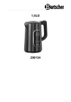 1,5LD 200134 Bartscher GmbH Franz-Kleine-Str. 28 D-33154 Salzkotten Allemagne Version: 2.0 Date de création : 2025-06-27 FR tél. +49 5258 971-0 fax : +49 5258 971-120 Hotline technique : +49 5258 971-197 www.bartscher.com Manuel d'utilisation original 1 2 3 4 5 6 7 Sécurité ......................................................................................................... 2 1.1 Explication des avertissements ................................................................ 2 1.2 Consignes de sécurité ............................................................................. 3 1.3 Utilisation conforme à l’usage .................................................................. 7 1.4 Utilisation non conforme à l’usage ........................................................... 7 Généralités .................................................................................................... 8 2.1 Responsabilité et garantie ....................................................................... 8 2.2 Protection des droits d’auteur .................................................................. 8 2.3 Déclaration de conformité ........................................................................ 8 Transport, emballage et stockage ................................................................. 9 3.1 Inspection suite au transport .................................................................... 9 3.2 Emballage ................................................................................................ 9 3.3 Stockage .................................................................................................. 9 Paramètres techniques ................................................................................ 10 4.1 Indications techniques ........................................................................... 10 4.2 Fonctions de l’appareil ........................................................................... 11 4.3 Éléments de l’appareil............................................................................ 12 Installation et utilisation ............................................................................... 13 5.1 Installation.............................................................................................. 13 5.2 Utilisation ............................................................................................... 15 Nettoyage et détartrage ............................................................................... 18 6.1 Consignes de sécurité pour le nettoyage ............................................... 18 6.2 Nettoyage .............................................................................................. 19 6.3 Détartrage .............................................................................................. 19 Élimination des déchets ............................................................................... 20 200134 1 / 22 Sécurité Diese Bedi enungsanlei tung besc hrei bt di e Installation, Bedi enung und Wartung des Geräts und gilt als wic htige Inform ationsquelle und N achschl agew erk. Z najom ość w szystkich zaw artyc h w ni ej wsk az ówek dotycz ącyc h bezpi ecz eńs twa i obsł ugi stanowi w arunek bez pi ecz nej i prawi dłow ej pr acy z urządz eni em. Ponadto należy przestrzeg ać odpowi ednio do mi ejsca użytk owani a urządz eni a l okal nyc h przepis ów dotycz ącyc h z apobieg ani a wy padk om oraz og ólnyc h zas ad BH P. Dies e Bedi enungsanleitung is t Bes tandteil des Produkts und m uss i n unmittelbarer N ähe des Ger äts für das In¬s tall ations-, Bedi enungs-, W artungs- und R einigungspers onal j ederzei t z ugänglich auf¬bewahrt w erden. W enn das Ger ät an eine dritte Pers on weitergegeben wird, muss die Bedi enungsanlei tung mit ausgehändigt wer den. Avant d’utiliser l’appareil, lire attentivement la notice et la conserver dans un endroit facilement accessible, à proximité de l’appareil ! La présente notice d’utilisation décrit l’installation, la manipulation et la maintenance de l’appareil, elle est une source d’informations importante et un ouvrage de référence. La connaissance de toutes les consignes de sécurité et d’utilisation comprises dans la présente notice est une condition indispensable pour assurer le fonctionnement correct et en toute sécurité de l’appareil. Avant de mettre en marche l’appareil, lire la présente notice d’utilisation, pour éviter les blessures et les dommages matériels. Une utilisation incorrecte peut endommager l’appareil. À chaque étape d’utilisation de l’appareil, toutes les informations essentielles contenues dans le mode d’emploi doivent être accessibles pour le personnel. C’est l’opérateur qui est responsable de leur disponibilité. Outre le mode d’emploi, il est impératif de respecter les règles générales et la loi en en vigueur, relatives à la sécurité du travail et à la protection de l’environnement. FR 1 Sécurité L’appareil est conçu d’après les règles techniques en vigueur. Cependant, l’appareil peut constituer une source de dangers, s’il n’est pas utilisé correctement ou conformément à son usage. Toutes les personnes qui utilisent l’appareil doivent se tenir aux indications mentionnées dans la présente notice d’utilisation et respecter les consignes de sécurité. 1.1 Explication des avertissements Les indications importantes relatives à la sécurité ainsi que les avertissements sont désignés dans la présente notice par des mentions d’avertissement adéquates. Ces indications doivent être impérativement respectées, pour éviter les accidents, les blessures et les dommages matériels. DANGER ! La mention d’avertissement DANGER avertit contre les risques qui peuvent entraîner des blessures graves ou la mort, s’ils ne sont pas évités. 2 / 22 200134 Sécurité AVERTISSEMENT ! La me
