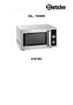 25L, 1000W 610182 Bartscher GmbH Franz-Kleine-Str. 28 D-33154 Salzkotten Allemagne tél. +49 5258 971-0 fax : +49 5258 971-120 Hotline technique : +49 5258 971-197 www.bartscher.com Version: 5.0 Date de création : 2025-06-20 FR Manuel d'utilisation original 1 2 3 4 5 6 7 8 Sécurité ......................................................................................................... 2 1.1 Explication des avertissements ................................................................ 2 1.2 Consignes de sécurité ............................................................................. 3 1.3 Utilisation conforme à l’usage .................................................................. 7 1.4 Utilisation non conforme à l’usage ........................................................... 7 Généralités .................................................................................................... 8 2.1 Responsabilité et garantie ....................................................................... 8 2.2 Protection des droits d’auteur .................................................................. 8 2.3 Déclaration de conformité ........................................................................ 8 Transport, emballage et stockage ................................................................. 9 3.1 Inspection suite au transport .................................................................... 9 3.2 Emballage ................................................................................................ 9 3.3 Stockage .................................................................................................. 9 Paramètres techniques ................................................................................ 10 4.1 Indications techniques ........................................................................... 10 4.2 Éléments de l’appareil............................................................................ 11 4.3 Fonctions de l’appareil ........................................................................... 12 Installation et utilisation ............................................................................... 13 5.1 Installation.............................................................................................. 13 5.2 Principes de base pour la cuisson dans un four à micro-ondes ............. 15 5.3 Récipients adaptés à l’utilisation dans des fours à micro-ondes ............ 15 5.4 Utilisation ............................................................................................... 17 Nettoyage .................................................................................................... 21 6.1 Consignes de sécurité pour le nettoyage ............................................... 22 6.2 Nettoyage .............................................................................................. 22 Défaillances possibles ................................................................................. 23 Élimination des déchets ............................................................................... 24 610182 1 / 26 Sécurité Diese Bedi enungsanlei tung besc hrei bt di e Installation, Bedi enung und Wartung des Geräts und gilt als wic htige Inform ationsquelle und N achschl agew erk. Z najom ość w szystkich zaw artyc h w ni ej wsk az ówek dotycz ącyc h bezpi ecz eńs twa i obsł ugi stanowi w arunek bez pi ecz nej i prawi dłow ej pr acy z urządz eni em. Ponadto należy przestrzeg ać odpowi ednio do mi ejsca użytk owani a urządz eni a l okal nyc h przepis ów dotycz ącyc h z apobieg ani a wy padk om oraz og ólnyc h zas ad BH P. Dies e Bedi enungsanleitung is t Bes tandteil des Produkts und m uss i n unmittelbarer N ähe des Ger äts für das In¬s tall ations-, Bedi enungs-, W artungs- und R einigungspers onal j ederzei t z ugänglich auf¬bewahrt w erden. W enn das Ger ät an eine dritte Pers on weitergegeben wird, muss die Bedi enungsanlei tung mit ausgehändigt wer den. Avant d’utiliser l’appareil, lire attentivement la notice et la conserver dans un endroit facilement accessible, à proximité de l’appareil ! La présente notice d’utilisation décrit l’installation, la manipulation et la maintenance de l’appareil, elle est une source d’informations importante et un ouvrage de référence. La connaissance de toutes les consignes de sécurité et d’utilisation comprises dans la présente notice est une condition indispensable pour assurer le fonctionnement correct et en toute sécurité de l’appareil. Avant de mettre en marche l’appareil, lire la présente notice d’utilisation, pour éviter les blessures et les dommages matériels. Une utilisation incorrecte peut endommager l’appareil. À chaque étape d’utilisation de l’appareil, toutes les informations essentielles contenues dans le mode d’emploi doivent être accessibles pour le personnel. C’est l’opérateur qui est responsable de leur disponibilité. Outre le mode d’emploi, il est impératif de respecter les règles générales et la loi en en vigueur, relatives à la sécurité du travail et à la protection de l’environnement. FR 1 Sécurité L’appareil est conçu d’après les règles techniques en vigueur. Cependant, l’appareil peut constituer une source de dangers, s’il n’est pas utilisé correctement ou conformément à son usage. Toutes les personnes qui utilisent l’appareil doivent se tenir aux indications mentionnées dans la présente notice d’utilisation et respecter les consignes de sécurité. 1.1 Explication des avertissements Les indications importantes relatives à la sécurité ainsi que les avertissements sont désignés dans la présente notice par des mentions d’avertissement adéquates. Ces indications doivent être impérativement respectées, pour éviter les accidents, les blessures et les dommages matériels. DANGER ! La mention d