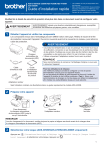 ADS-3100/ADS-3350W/ADS-4300N/ADS-4700W/ ADS-4900W Guide d’installation rapide Les manuels les plus récents sont disponibles sur le Site Web de soutien Brother : support.brother.com/manuals. • Les modèles ne sont pas disponibles dans tous les pays. • Merci d’avoir choisi Brother. Nous accordons beaucoup d’importance à l’intérêt que vous portez à nos produits et nous sommes heureux de vous compter parmi nos clients. Veuillez lire le Guide de sécurité du produit, situé plus loin dans ce document avant de configurer votre appareil. AVERTISSEMENT 1 AVERTISSEMENT signale une situation potentiellement dangereuse, susceptible d’entraîner des blessures physiques graves, voire mortelles. Déballer l’appareil et vérifier les composants Les composants inclus dans l’emballage peuvent différer selon votre pays. Retirez le ruban et le film de protection recouvrant l’appareil. Ouvrez le couvercle avant et le couvercle du rouleau, puis retirez le ruban de protection. AVERTISSEMENT Chargeur automatique de documents (ADF) • Ce produit est emballé dans un sac en plastique. Pour éviter tout risque de suffocation, conservez ce sac de plastique hors de portée des bébés et des enfants. N’utilisez pas ce sac dans des lits d’enfant, des lits, des poussettes ou des parcs pour enfant. Ce sac n’est pas un jouet. • Utilisez uniquement l’adaptateur secteur fourni avec ce produit. REMARQUE Nous recommandons de conserver l’emballage d’origine si vous avez à retourner l’appareil. Câble d’interface USB Guide d’installation rapide/Guide de sécurité du produit Adaptateur secteur Pour les utilisateurs de réseaux Une meilleure pratique consiste à configurer un mot de passe administrateur unique pour tout appareil réseau. Le mot de passe par défaut de votre appareil se trouve à l’arrière de l’appareil (la chaîne de huit chiffres marquée « Pwd »). Nous vous recommandons de changer ce mot de passe par défaut immédiatement afin d’utiliser les outils/utilitaires réseau en toute sécurité. Sauf indication contraire, les illustrations dans ce guide représentent le modèle ADS-4300N. 2 Préparez votre appareil Fixez fermement le chargeur automatique de documents (ADF) jusqu’à ce qu’il s’enclenche. Branchez l’adaptateur secteur. Allongez les bacs. REMARQUE Lors du chargement d’un document, ventilez toujours le papier et alignez ses bords avant de le charger dans le chargeur automatique de documents (ADF). 3 Sélectionnez votre langue (ADS-3350W/ADS-4700W/ADS-4900W uniquement) Appuyez sur [Paramètres/Settings] > [Réglage init./Initial Setup] > [Langue locale/ Local Language] et sélectionnez votre langue. Appuyez sur . 1 4 Connecter l’appareil et installer le logiciel Sélectionnez votre méthode de balayage préférée et choisissez votre méthode de connexion. A Utilisation de votre scanner avec votre ordinateur ou appareil mobile Visitez setup.brother.com pour télécharger et installer le logiciel Brother. setup.brother.com Pour les Mac : Visitez support.brother.com/mac pour télécharger le logiciel Brother. Suivez les instructions à l’écran pour mener à bien l’installation. Terminer Une fois l’installation terminée, redémarrez votre ordinateur. • Pour vérifier la dernière version du micrologiciel, visitez support.brother.com/up7. • En cas d’échec, essayez de configurer la connexion manuellement. Pour les appareils mobiles : • Configurez la connexion manuellement. • Vous pouvez également vous connecter à votre appareil s’il est connecté à votre routeur/point d’accès à l’aide d’un câble LAN. Pour plus obtenir plus d’informations, consultez le Guide de l’utilisateur en ligne. Pour obtenir des instructions détaillées sur le balayage, consultez le Guide de l’utilisateur en ligne à l’adresse support.brother.com/manuals. B Utilisation de votre scanner en tant qu’appareil autonome (ADS-3350W/ADS-4300N/ ADS-4700W/ADS-4900W uniquement) Connectez votre appareil à votre réseau à l’aide d’un câble réseau (acheté séparément) ou via Wi-Fi®. Vous pouvez configurer votre connexion Wi-Fi soit à l’aide du panneau de configuration de l’appareil, soit à l’aide de votre ordinateur. Configuration sans fil manuelle (ADS-3350W/ADS-4700W/ADS-4900W uniquement) Si vous n’avez pas d’ordinateur connecté au réseau ou si vous ne pouvez pas connecter votre appareil à l’aide de votre ordinateur, essayez de configurer la connexion manuellement. 1. Appuyez sur > [Trouver réseau Wi-Fi] > [Oui]. 2. Sélectionnez le SSID (nom du réseau). Entrez la clé de réseau (mot de passe). Lorsque la configuration sans fil est réussie, l’écran à cristaux liquides affiche [Connecté]. Si vous n’êtes pas en mesure de trouver votre SSID ou votre clé de réseau, demandez à votre administrateur réseau ou au fabricant de votre point d’accès sans fil/routeur. REMARQUE • Si la configuration échoue, redémarrez votre appareil et le point d’accès/routeur sans fil, puis répétez ces étapes. • Si vous utilisez un ordinateur, retournez à pour installer le logiciel. REMARQUE Si la configuration échoue, visitez support.brother.com pour consulter la FAQ, le dépannage et les manuels. Pour les spécifications du produit, consultez le Guide de l’utilisateur en ligne. Voyants DEL (ADS-3100/ADS-4300N uniquement) Éteint Allumé État de l’appareil Statut d’erreur Prêt • Bourrage de documents • Notification • Erreur de ramassage de maintenance du document programmée • Capot avant est ouvert • Notification • Erreur de détection de remplacement d’alimentation multiple du rouleau (ADS-4300N uniquement) d’entraînement • Erreur d’accès Clignotant (Clignote lentement) Veille Pour plus d’informations sur le dépannage de votre appareil, consultez le Guide de l’utilisateur en ligne. 2 A Guide de sécurité du produit Le non-respect de ces instructions de sécurité vo