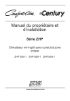 Manuel du propriétaire et d’installation Série ZHP Climatiseur mini-split sans conduit à zone unique ZHP15SA-1 ZHP18SA-1 ZHP24SA-1 www.marsdelivers.com Série ZHP - Manuel d’installation MATIÈRES Instructions de fonctionnement Consignes de sécurité 02 Mieux connaitre son climatiseur 12 Autres fonctionnalités 13 Régler l’angle du flux d’air 14 Fonctionnement manuel (sans télécommande) 15 Entretien et maintenance 16 Résolution des problèmes 18 1 Série ZHP - Manuel d’installation Mesures de sécurité Il est très important de lire les consignes de sécurité avant d’installer et d’utiliser l’appareil. Une mauvaise installation due au non-respect des instructions peut causer des dommages graves ou des blessures. La gravité des dommages et des blessures possibles est catégorisée comme un AVERTISSEMENT ou une MISE EN GARDE. Signification des symboles AVERTISSEMENT Ce symbole indique un risque de blessure ou de décès pour les personnes. AVERTISSEMENT Ce symbole indique la possibilité de dommages matériels ou de conséquences graves. AVERTISSEMENT Cet appareil n’est pas conçu pour être utilisé par des personnes (y compris des enfants) à capacités physiques, sensorielles ou intellectuelles réduites ou sans expérience ni connaissances, à moins qu’elles ne soient sous surveillance ou qu’elles n’aient été formées quant à l’utilisation de l’appareil par une personne responsable de leur sécurité. Les enfants doivent rester sous surveillance afin de s’assurer qu’ils ne jouent pas avec l’appareil. AVERTISSEMENTS RELATIFS À L’UTILISATION DU PRODUIT ● ● ● ● ● ● ● ● ● ● Tourner le climatiseur et débrancher l’alimentation avant de le nettoyer, de l’installer ou de le réparer. Le non-respect de cette consigne peut entraîner une décharge électrique. Si une situation anormale survient (comme une odeur de brûlé), éteignez immédiatement l’appareil et débranchez-le de l’alimentation de secteur. Communiquez avec votre concessionnaire pour obtenir des instructions afin d’éviter tout risque d’électrocution, d’incendie ou de blessure. N’insérez pas les doigts, tiges ni aucun autre objet dans l’entrée ou la sortie d’air. Cela peut provoquer des blessures, car le ventilateur peut tourner à grande vitesse. N’utilisez pas d’aérosol inflammable comme de la laque à cheveux ou de la peinture près du module. Cela pourrait provoquer un incendie ou une combustion. Ne pas faire fonctionner le climatiseur près ni autour de gaz combustibles. Les gaz émis peuvent s’accumuler autour de l’unité et provoquer une explosion. N’utilisez pas le climatiseur dans une pièce humide telle qu’une salle de bain ou une buanderie. Une exposition trop importante à l’eau peut créer un court-circuit au niveau des composants électriques. N’exposez pas votre corps directement à l’air froid pendant une période prolongée. Ne laissez pas les enfants jouer avec le climatiseur. Les enfants doivent être surveillés à tout moment autour de l’unité. Si le climatiseur est utilisé avec des brûleurs ou d’autres dispositifs chauffants, bien aérer la pièce pour éviter un manque d’oxygène. Dans certains environnements de fonctionnement, comme les cuisines, salles de serveurs, etc., le recours à des modules de climatisation spécialement conçus est vivement conseillé. 2 Série ZHP - Manuel d’installation AVERTISSEMENTS ÉLECTRIQUES ● ● ● ● ● ● ● Utiliser uniquement le fil spécifié. Si le fil est endommagé, il doit être remplacé par le fabricant, son agent de maintenance ou toute autre personne qualifiée afin d’éviter tout risque. Le produit doit être correctement mis à la terre au moment de l’installation pour éviter tout risque de décharge électrique. Pour tous les travaux électriques, suivez toutes les normes et réglementations locales et nationales en matière de câblage, ainsi que le Manuel d’installation. Connectez les câbles fermement et fixez-les fermement pour éviter que des forces externes n’endommagent la borne. Des branchements électriques incorrects peuvent surchauffer, provoquer un incendie et provoquer une décharge électrique. Toutes les connexions électriques doivent être effectuées conformément au schéma de connexion électrique situé sur les panneaux des unités intérieures et extérieures. Tout le câblage doit être correctement disposé pour s’assurer que le couvercle de la carte de commande peut se fermer correctement. Si le couvercle de la carte de commande n’est pas correctement fermé, il peut éventuellement contracter de la corrosion et provoquer la surchauffe des points de connexion sur la borne, un incendie ou une décharge électrique. La déconnexion doit être intégrée au câblage fixe conformément aux règles de câblage. Ne partagez pas la prise électrique avec d’autres appareils. Une alimentation incorrecte ou insuffisante peut provoquer un incendie ou une décharge électrique. Si l’alimentation est connectée par un câblage fixe, un dispositif de déconnexion tous pôles doit être intégrées dans le câblage fixe conformément aux règles de câblage. AVERTISSEMENTS RELATIFS AU NETTOYAGE ET À LA MAINTENANCE ● ● ● Éteignez l’appareil et débranchez l’alimentation de secteur avant de le nettoyer. Le nonrespect de cette consigne peut entraîner une décharge électrique. Ne nettoyez pas le climatiseur avec des quantités excessives d’eau. Ne pas nettoyer le climatiseur avec des produits d’entretien combustibles. Les produits de nettoyage combustibles peuvent provoquer un incendie ou une déformation. AVERTISSEMENT ● ● ● ● ● ● ● Éteignez le climatiseur et débranchez l’alimentation si vous ne comptez pas l’utiliser pendant une période prolongée. Éteignez et débranchez l’unité pendant les orages. Assurez-vous que la condensation de l’eau peut s’écouler