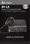 29 LX Radio CB professionnelle 4 W / 40 canaux / écran LCD 4 couleurs MANUEL DU PROPRIÉTAIRE Nos remerciements, l'histoire de la radio CB et le service à la clientèle Merci d'avoir acheté l'émetteur-récepteur radio CB professionnel Cobra 29 LX. Utilisé adéquatement, ce produit Cobra vous donnera de nombreuses années de service fiable. Histoire de la radio CB (Citizens Band) Inventée par Al Gross en 1945, la radio CB a servi initialement comme moyen de communication pour les soldats pendant la Seconde Guerre mondiale. Après la guerre, Gross s'est efforcé de faire des radios bidirectionnelles un moyen de communication à usage personnel et le poste bande publique a été établi par la loi aux États-Unis en 1949. Ce n'est que dans les années 1970 que la technologie a évolué et que le marché des radios CB s'est imposé comme moyen de communication entre les conducteurs pour signaler les zones de contrôle de la vitesse par la police et les dangers routiers. Le service de poste bande publique consiste en 40 canaux de fréquences qui sont pour la plupart espacés de 10 kHz. La puissance de l'émetteur est limitée à 4 watts aux États-Unis et la portée peut varier en fonction du terrain et de la qualité du produit. À l'heure actuelle, le service de poste bande publique ne nécessite pas de permis pour être utilisé, quel que soit l'âge, tant que les règlements d'utilisation établis par la Federal Communication Commission (FCC) aux États-Unis sont respectés. Pétition pour la modification des règlements de la section 95 de la FCC En 2016, Cobra a demandé à la FCC de réviser les règlements de la section 95 pour permettre aux radios CB d'utiliser la modulation de fréquence (FM). Cobra soutient que la FM offre une meilleure qualité de parole et une réduction des interférences sonores, ce qui améliore la qualité des radios bidirectionnelles et constitue un avantage pour le client. Grâce aux efforts directs de Cobra Electronics et au soutien enthousiaste de ses clients fidèles et de son réseau de distribution, la FCC a accédé à la demande. En 2021, la partie 95 a été officiellement mise à jour pour inclure la FM comme option pour l'utilisation des radios bidirectionnelles. Aujourd'hui, grâce aux pétitions de Cobra Electronics visant à améliorer la qualité du poste bande publique, les utilisateurs peuvent profiter des avantages offerts par la communication radio CB dans un grand nombre de secteurs. Soutien à la clientèle Si vous rencontrez des problèmes avec ce produit, ne comprenez pas ses fonctionnalités, son menu ou son installation, veuillez vous référer au manuel de l'utilisateur. Si vous avez besoin d'aide supplémentaire après avoir lu ce manuel, nous sommes là pour vous aider : Questions sur le service, les commandes et les produits Pour la réparation, des questions sur les produits et les heures de service, composez le 1 800 543-1608 ou visitez le site www.cobra.com Pour obtenir de l'aide en dehors des États-Unis Communiquez avec votre détaillant local A1 Caractéristiques AM/FM de la radio 29 LX Bouton NB/ANL Mesure de l'intensité du signal Écran LCD Bouton S/RF/ SWR/CAL Prise de microphone à 4 broches Bouton Balayage/ Mémoire Modes GRADATEUR/ JOUR ou NUIT Bouton CB/Météo/ Sonorisation Mise sous Commande tension/hors Dynamike tension/Volume/ Commande d'accord silencieux Menu/Enter/ Sélecteur de canal Commande de gain RF Commande Delta Tune Prise PA Connecteur d'antenne A2 Bouton AM/FM/ Canal 9/19 Commande TalkBack/ SWR CAL Prise de hautparleur externe Prise d'alimentation Caractéristiques du produit et réglementations de la FCC Nous vous remercions Bouton « Push-ToTalk » (PTT) Connecteur de microphone à 4 broches Main Icons Intro Operation Installation Customer Assistance Warranty Customer Assistance Secondary Icons REMARQUE Notice Cet appareil est conforme à la partie 15 des règlements de la FCC. Le fonctionnement Caution Warningest soumis aux deux (2) conditions suivantes : 1.cet appareil ne doit pas provoquer d'interférences nuisibles, et 2.cet appareil doit accepter toute interférence reçue, y compris les interférences pouvant entraîner un fonctionnement indésirable. Le fabricant n'est pas responsable des interférences radio ou télévisuelles causées par des modifications non autorisées de cet équipement. De telles modifications peuvent annuler l'autorisation d'utilisation de l'équipement par l'utilisateur. A3 Table des matières Nos remerciements, l'histoire de la radio CB et le service à la clientèle..............................................................................A1 29 LX Caractéristiques et réglementations de la FCC....................................................................................................A2 Installation Emplacement..................................................................................................................................................................2 Montage et connexion.....................................................................................................................................................2 PA (Public Address ou sonorisation)...............................................................................................................................4 Antenne CB.....................................................................................................................................................................4 Fonctionnement Mise sous tension...........................................................................................................................................................5 Réglage AM/FM...............................................................................................................................................................5 Réglage des canaux 9/19................................................................................................