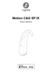 Motion C&G SP IX Guide d’utilisation Sommaire Bienvenue 4 Vos aides auditives Type d’aide auditive Mieux connaître vos aides auditives Composants Boutons de commande Programmes d’écoute Fonctionnalités 5 5 6 7 9 10 10 Manipulation de vos aides auditives Charge Mise sous et hors tension Les différentes manières dont le voyant LED peut s’allumer Passage en mode veille Mise en place et retrait de vos aides auditives Réglage du volume Changement de programme d’écoute Autres réglages 11 11 12 2 14 15 16 18 19 19 Situations d'écoute particulières Au téléphone Diffusion audio sur iPhone Streaming audio sur un téléphone Android Bluetooth Boucles d'induction audio 20 20 21 21 21 22 Maintenance et entretien Aides auditives Embouts et tubes Maintenance effectuée par un professionnel 24 24 26 27 Consignes de sécurité importantes 28 Autres informations Consignes de sécurité Accessoires Conditions d’utilisation, de transport et de stockage Informations relatives à la mise au rebut Symboles utilisés dans ce document Dépannage Informations spécifiques au pays Entretien et garantie 31 31 31 31 33 34 35 36 39 3 Bienvenue Merci d’avoir choisi nos aides auditives pour vous accompagner dans votre vie quotidienne. Comme avec toute chose nouvelle, il vous faudra un peu de temps pour vous y habituer. Ce guide, ainsi que l’assistance fournie par votre audioprothésiste, vous aideront à comprendre les avantages et la meilleure qualité de vie offerts par vos aides auditives. Pour profiter au maximum de vos aides auditives, il est recommandé de les porter tous les jours, toute la journée. Cela vous aidera à vous y habituer. ATTENTION Il est important de bien lire l'intégralité de ce guide d'utilisation et du manuel de sécurité. Suivez les informations de sécurité pour éviter des dommages ou des blessures. Avant d’utiliser vos aides auditives pour la première fois, rechargez-les complètement. Suivez les instructions contenues dans le guide d’utilisation du chargeur. 4 Vos aides auditives Ce guide d’utilisation décrit les fonctionnalités optionnelles dont vos aides auditives peuvent ou non être pourvues. Demandez à votre audioprothésiste de vous indiquer les fonctionnalités qui s’appliquent à vos aides auditives. Type d’aide auditive Vos aides auditives sont des modèles BTE (BehindThe-Ear). Un tube délivre à l’oreille le son fourni par l’aide auditive. Ces aides auditives ne sont pas prévues pour appareiller les enfants de moins de 3 ans ou toute personne dont l’âge de développement est inférieur à 3 ans. Votre aide auditive intègre dès sa sortie d’usine une batterie (batterie rechargeable lithium-ion). Cela vous permet de la recharger facilement avec notre chargeur standard ou le chargeur Dry&Clean Charger, en option. La fonctionnalité sans fil permet d’utiliser les fonctions audiologiques avancées et de synchroniser les deux aides auditives. 5 Vos aides auditives disposent de la technologie Bluetooth® Low Energy* qui permet d’échanger facilement des données avec votre smartphone et de diffuser aisément du son avec votre iPhone** et certains smartphones Android qui prennent en charge la fonction ASHA (Audio Streaming for Hearing Aids, Diffusion audio pour les aides auditives) ou le Bluetooth LE Audio*. Mieux connaître vos aides auditives Pour utiliser instinctivement vos aides auditives, nous vous conseillons de prendre votre temps pour apprendre à les connaître. Tenez les aides auditives dans votre main, essayez d’utiliser les boutons de commande et repérez leur emplacement sur l’aide auditive. Ainsi, vous pourrez utiliser les boutons de commande plus facilement lorsque vous porterez les aides auditives. Si vous avez du mal à utiliser les boutons de commande de vos aides auditives lorsque vous les portez, vous pouvez demander à votre audioprothésiste si une télécommande ou une application smartphone est disponible en option pour la commande des aides auditives. * La marque verbale et les logos Bluetooth sont des marques déposées, propriété de Bluetooth SIG, Inc. Leur utilisation par WS Audiology Denmark A/S se fait sous licence. Les autres marques déposées et noms commerciaux sont ceux de leurs propriétaires respectifs. ** iPad®, iPad Air®, iPad Pro® et iPhone® sont des marques de commerce d’Apple Inc., enregistrées aux États-Unis et dans d’autres pays et régions. 6 Composants Vos aides auditives sont fixées à un coude et à un embout sur mesure. ᆼ ➊ Coude ➋ Voyant LED ➌ Entrées du microphone ➍ Interrupteur à bascule (bouton de commande et bouton marche/ arrêt) ➎ Contact de charge ➏ Indicateur de côté, numéro de série et niveau de performance 7 Votre audioprothésiste fixera sur chaque aide auditive un coude, un tube et un embout sur mesure. Embouts personnalisés Exemples : 8 Boutons de commande Le rocker-switch vous permet, par exemple, de changer de programme d’écoute. Votre audioprothésiste a programmé les fonctions de votre choix sur le rockerswitch. Fonctionnement du rocker-switch G D Appui bref : Défilement des programmes Volume +/‒ Signal du traitement anti-acouphènes +/− Activer/désactiver le flux TV Appui pendant 2 secondes environ : Défilement des programmes Volume +/‒ Signal du traitement anti-acouphènes +/− Activer/désactiver le flux TV Appui pendant plus de 3 secondes : Activation/désactivation G = gauche, D = droite 9 Vous pouvez aussi utiliser une télécommande pour changer de programme d’écoute et ajuster le volume de vos aides auditives. Avec notre application smartphone, vous disposez d’encore plus d’options de contrôle. Programmes d’écoute 1 2 3 4 5 6 Consultez le chapitre « Changement du programme d'écoute » pour obtenir de plus amples informations. Fonctionnalités Le traitement anti-acouphènes génère un bruit doux pour vous distraire de vos acouphènes. Une bobine téléphonique est intégrée à l'aide au