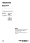 Mode d’emploi Climatiseur nanoeX N° de modèle Unité Intérieure CS-TZ60CKEW CS-TZ71CKEW Unité extérieure Monosplit CU-TZ60CKE CU-TZ71CKE Multisplit CU-3Z68CBE CU-4Z68CBE CU-4Z80CBE CU-5Z90CBE FRANÇAIS Avant d’utiliser l’appareil, veuillez lire ce mode d’emploi dans son intégralité et conservez-le pour toute référence ultérieure. Avant de commencer l’installation, l’installateur doit : Lire les instructions d’installation, puis demander au client de les conserver pour plus tard. Retirer la télécommande fournie avec l’unité intérieure. * Consultez un revendeur agréé pour connaître la validité de la connectivité. WEB-ACXF55-35220-FR Un nouvel adaptateur réseau intégré qui vous permet de contrôler votre pompe à chaleur depuis n’importe où. Possibilité de connecter un climatiseur à système Monosplit ou à système Multisplit. Pour connaître les caractéristiques complètes des produits, veuillez vous référer au catalogue. Utilisez la télécommande dans les 8 m du récepteur de la télécommande de l’unité intérieure. Guide Rapide Insertion des piles B A Réglage de l’horloge 2 A 3 1 1 Retirez le couvercle arrière de la télécommande. 2 Placez des piles AAA ou R03. 3 Fermez le couvercle. 2 1 Appuyez sur CLOCK , et réglez l’heure . • Maintenez la touche CLOCK enfoncée pendant environ 5 secondes pour passer du mode d’affi chage 12 heures (am/pm) ou au mode 24 heures et inversement. pour 2 Appuyez sur confirmer. Nous vous remercions d’avoir porté votre choix sur un climatiseur Panasonic. Table des matières Consignes de sécurité …… 4-12 Consignes d’utilisation …… 13-14 Pour en savoir plus... …… 15-16 Nettoyage du Climatiseur…………………… 17 Dépannage ……………… 18-21 Informations ……………… 22-23 Accessoires • Télécommande • Piles AAA ou R03 × 2 • Support de la télécommande • Vis pour le support de la télécommande × 2 Les illustrations de ce mode d’emploi sont fournies à titre d’exemple uniquement et peuvent présenter des différences par rapport à l’appareil proprement dit. Celui-ci peut être modifié sans préavis. B Fonctionnement de base 1 Appuyez sur pour mettre le fonctionnement en marche/arrêt. POWER • Veuillez noter que l’indication se trouve sur l’affi cheur pour démarrer l’unité. 2 Appuyez sur pour sélectionner le mode souhaité. 3 Appuyez sur TEMP UP, TEMP DOWN pour choisir la température souhaitée. Haut AUTO HEAT DRY COOL Bas Plage de sélection : 16,0 °C ~ 30,0 °C / 60 °F ~ 86 °F. • Maintenez pendant environ 10 secondes pour que le réglage de la température passe en °C ou en °F. 3 Consignes de sécurité Pour éviter des blessures corporelles sur vous-même et sur les autres ou des dégâts matériels, respectez les instructions ci-dessous : Tout dysfonctionnement dû au non-respect des instructions peut occasionner des nuisances ou des dégâts dont la gravité est classée comme décrit ci-après : Ces appareils ne sont pas conçus pour être accessibles du grand public. AVERTISSEMENT Ce symbole signale la présence d’un danger pouvant provoquer des blessures graves ou mortelles. ATTENTION Ce symbole signale la présence d’un danger pouvant provoquer des blessures corporelles ou des dégâts matériels. Les instructions à respecter sont classées d’après les symboles suivants : Ce symbole désigne une action INTERDITE. Ces symboles désignent des actions OBLIGATOIRES. Alimentation Unité intérieure Cet appareil peut être utilisé par des enfants âgés de 8 ans et plus et par des personnes ayant des capacités physiques, sensorielles ou mentales réduites, ou dénuées d’expérience et de connaissances si elles ont été formées et encadrées pour l’utilisation de cet appareil en toute sécurité et comprennent bien les dangers auxquels elles s’exposent (on parle ici des personnes). Les enfants ne doivent pas jouer avec l’appareil. Le nettoyage et l’entretien par l’utilisateur ne doivent pas être effectués par des enfants sans surveillance. Veuillez consulter un revendeur agréé ou un spécialiste pour le nettoyage des pièces internes et pour la réparation, l’installation, le retrait et la réinstallation de l’unité. Une installation et une manipulation incorrectes pourraient occasionner des fuites, un choc électrique ou un incendie. Validez auprès du revendeur agréé ou du spécialiste l’usage de tout type de réfrigérant spécifié. L’utilisation d’un type de réfrigérant autre que le type spécifié peut endommager le produit ou provoquer des explosions, des brûlures, etc. N’utilisez pas de moyens pour accélérer le processus de dégivrage ou de nettoyer l’appareil avec des produits autres que ceux qui sont conseillés par le fabricant. Toute méthode inappropriée ou utilisation de matériel incompatible peut occasionner une détérioration du produit, une explosion et de graves blessures. N’insérez jamais vos doigts ou des objets dans l’unité intérieure ou extérieure du climatiseur, les parties tournantes peuvent causer des blessures. Sortie d’air Entrée d’air Unité extérieure Unité intérieure et unité extérieure N’installez pas l’appareil dans une atmosphère potentiellement explosive ou inflammable. Sinon, il y a un risque d’incendie. Entrée d’air Télécommande AVERTISSEMENT Ne touchez pas l’unité extérieure au cours d’un orage, cela pourrait provoquer un choc électrique. Sortie d’air Ne vous exposez pas directement à de l’air froid pendant une période prolongée afin d’éviter un refroidissement excessif. Ne vous asseyez pas et ne montez pas sur l’unité, vous risquez de tomber accidentellement. Télécommande Maintenez la télécommande hors de portée des bébés et des enfants pour éviter qu’ils n’avalent accidentellement les piles. 4 Alimentation N’utilisez pas de cordon modifié, de raccords, de rallonge ou