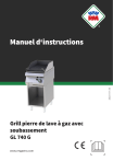 2025-07-26 Manuel d‘instructions Grill pierre de lave à gaz avec soubassement GL 740 G www.rmgastro.com GRILL PIERRE DE LAVE À GAZ AVEC SOUBASSEMENT · GL 740 G · 00019426 OBSAH 1. DÉCLARATION DE CONFORMITÉ 3 2. DONNÉES TECHNIQUES 3 3. TABLEAU DES GAZ AUXQUELS LE PRODUIT EST DESTINÉ 3 4. EMPLACEMENT GAZ 5 5. MESURES DE SÉCURITÉ DU POINT DE VUE DE LA PROTECTION INCENDIE 5 6. INSTALLATION 6 7. CONTRÔLE DES PERFORMANCES THERMIQUES 6 8. RACCORDEMENT DU TUYAU DE RACCORDEMENT AU GAZ 6 9. RACCORDEMENT GAZ LIQUIDE 7 10. RACCORDEMENT D'EAU 7 11. VÉRIFIER LES PARAMÈTRES DE L'APPAREIL POUR LE TYPE DE GAZ 7 12. VÉRIFICATION DES RÉGLAGES DE L‘APPAREIL EN FONCTION DU TYPE DE GAZ 8 13. MODE D‘EMPLOI 9 14. NETTOYAGE ET ENTRETIEN 9 2025-07-26 2 www.rmgastro.com GRILL PIERRE DE LAVE À GAZ AVEC SOUBASSEMENT · GL 740 G · 00019426 1. DÉCLARATION DE CONFORMITÉ Décret du Ministère de santé. 38/21 Sb. Règlement 197/26/CE - Règlement REACH, 1935/24/CE - Règlement relatif au contact alimentaire. Les produits répondent aux exigences du §26 de la loi n° 258/2 telle qu’en vigeur. Les produits répondent aux exigences de la directive RoHS 215/863/UE, 1/211, 517/214, 215/194, 215/195. Attention, le fabricant décline toute responsabilité en cas de dommages directs ou indirects résultant d’une mauvaise installation, d’interventions ou de modifications inappropriées, d’un entretien insuffisant, d’une utilisation incorrecte, ou encore d’autres causes mentionnées dans les conditions générales de vente. Cet appareil est exclusivement destiné à un usage professionnel et doit être manipulé par des personnes qualifiées. Les parties qui ont été réglées et sécurisées par le fabricant ou un technicien agréé ne doivent pas être modifiées par l’utilisateur. 2. DONNÉES TECHNIQUES L’étiquette de données techniques est située sur le panneau latéral ou arrière de l’appareil. Avant l’installation, étudiez le schéma de câblage et toutes les informations suivantes dans les instructions ci-jointes. Largeur nette [mm] Profondeur nette [mm] Hauteur nette [mm] Poids net [kg] Puissance gaz [kW] 400 900 900 45.00 7.500 La puissance thermique nominale maximale et réduite, exprimée en kW, est basée sur la valeur Hi du gaz utilisé. Si le produit est connecté au GPL, la bouteille de gaz doit se trouver dans des pièces suffisamment ventilées. 3. TABLEAU DES GAZ AUXQUELS LE PRODUIT EST DESTINÉ Version Catégorie de produits Pressions de raccordement (mbar) Gaz utilisé Pays de destination A1 I2E 20 G20 DE, NL, PL, RO A1 I2ELL 20, 20 G20,G25 DE A1 I2E+ 20/25 G20/G25 BE, FR A1 I2H 20 2025-07-26 3 www.rmgastro.com GRILL PIERRE DE LAVE À GAZ AVEC SOUBASSEMENT · GL 740 G · 00019426 G20 AT, BG, CH, CZ, DK, HR, EE, ES, FI, GB, GR, IE, IT, LT, LV, NO, PT, RO, SE, SI, SK, TR, LU, CY , FR A1 I3B/P 30 G30 BG, CY, CZ, DK, GB, HR, EE, FI, FR, GR, HU, IT, LT, LV, MT, NL, NO, RO, SE, SI, SK, TR A1 I3B/P 50 G30 AT, DE, CZ, CH, FR, SK A1 I3P 37 G31 BE, CH, CZ, ES, GB, GR, IE, RO, SI, SK, FR, NL, PT, HR, IT, LT, PL, TR A1 I3+ 28-30/37 G30/G31 BE, CH, CY, CZ, EE, ES, FR, GB, GR, IE, IT, LT, PT, SI, SK, TR A1 II2E3B/P 20, 50 G20, G30 DE, PL, RO A1 II2ELL3B/P 20, 20, 50 G20, G25, G30 DE A1 II2E+3+ 20/25, 28-30/37 G20/G25, G30/G31 BE, FR A1 II2H3B/P 20, 30 G20, G30 BG, CZ, GB, DK, HR, EE, FI, GR, IT, LT, LV, NO, RO, SE, SI, SK, TR, CY, FR A1 II2H3B/P 2025-07-26 4 www.rmgastro.com GRILL PIERRE DE LAVE À GAZ AVEC SOUBASSEMENT · GL 740 G · 00019426 20, 50 G20, G30 AT, CH, CZ, FR, SK A1 II2H3P 20, 37 G20, G31 CH, CZ, ES, GB, GR, IE, RO, SI, SK A1 II2H3+ 20, 28-30/37 G20, G30/G31 CH, CY, CZ, EE, ES, GB, GR, IE, IT, LT, PT, SK, SI, TR 4. EMPLACEMENT GAZ Pour un fonctionnement et un emplacement corrects de l'appareil, il est nécessaire de respecter toutes les directives et normes du pays en question. Déballez l'appareil et vérifiez qu'il n'a pas été endommagé pendant le transport. Placez l'appareil sur une surface horizontale (dénivelé maximum jusqu'à 2°). Les petites irrégularités peuvent être nivelées avec des pieds réglables. Si l'appareil est placé de manière à être en contact avec les parois des meubles, ceux-ci doivent résister à une température allant jusqu'à 60°C. L'installation, le réglage, la mise en service doivent être effectués par une personne qualifiée et autorisée à effectuer de telles opérations, selon les normes en vigueur. L'appareil peut être installé séparément ou en série avec des appareils de notre production. Une distance minimale de 10 cm doit être respectée par rapport aux matériaux inflammables. Dans ce cas, des aménagements appropriés doivent être prévus pour garantir une isolation thermique adéquate des parties inflammables. L'appareil doit être installé uniquement sur une surface ininflammable ou contre un mur ininflammable. Le plus petit débit d'air requis depuis l'espace extérieur pour les appareils de conception A est compris entre 5 et 20 m3/h, selon le type d'appareil. Cela dépend des réglementations d'installation du pays de destination. Pièces d'électroménager fournies par le fabricant ou son représentant, l'ouvrier effectuant l'installation ne doit pas reconstruire le produit. L'appareil doit être installé dans un environnement correctement ventilé. 5. MESURES DE SÉCURITÉ DU POINT DE VUE DE LA PROTECTION INCENDIE • l'appareil ne peut être utilisé que par des adultes • l'appareil peut être utilisé en toute sécurité conformément aux normes suivantes : Protection contre l'incendie dans les zones présentant un risque ou un danger particulier Protection contre les effets de la chaleur • l'appareil doit être placé de manière à ce qu'il repose ou soit suspendu fermement sur une surface non combustible Les objets contenant des substances inflammables ne doivent pas être placés sur l'appareil à une distance inférieure à une distance de sécurité de celui-ci (la plus petit