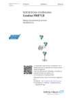 KA01766P/14/FR/01.25-00 71714213 2025-08-01 Products Solutions Services Instructions condensées Cerabar PMP71B Mesure de pression de process PROFIBUS PA Les présentes instructions condensées ne se substituent pas au manuel de mise en service relatif à l'appareil. Pour les informations détaillées, consulter le manuel de mise en service et la documentation complémentaire. Disponible pour toutes les versions d'appareil via : • Internet : www.endress.com/deviceviewer • Smartphone / tablette : Endress+Hauser Operations App Documentation associée 1 Cerabar PMP71B PROFIBUS PA Documentation associée 1. Order code: XXXXX-XXXXXX Ser. no.: XXXXXXXXXXXX Ext. ord. cd.: XXX.XXXX.XX Serial number 2. www.endress.com/deviceviewer Endress+Hauser Operations App 3. A0023555 2 Informations relatives au document 2.1 Fonction du document Les présentes instructions fournissent toutes les informations essentielles, de la réception des marchandises à la première mise en service. 2.2 Symboles 2.2.1 Symboles d'avertissement DANGER 2 Endress+Hauser Cerabar PMP71B PROFIBUS PA Informations relatives au document Ce symbole signale une situation dangereuse. Si cette situation n'est pas évitée, cela entraînera des blessures graves ou mortelles. AVERTISSEMENT Ce symbole signale une situation potentiellement dangereuse. Si cette situation n'est pas évitée, cela peut entraîner des blessures graves ou mortelles. ATTENTION Ce symbole signale une situation potentiellement dangereuse. Si cette situation n'est pas évitée, cela peut entraîner des blessures mineures ou moyennes. AVIS Ce symbole signale une situation potentiellement dangereuse. Si cette situation n'est pas évitée, le produit ou un objet situé à proximité peut être endommagé. 2.2.2 Symboles électriques Prise de terre : Borne pour le raccordement au système de mise à la terre. 2.2.3 Symboles pour certains types d'information Autorisé : Procédures, processus ou actions qui sont autorisés. Interdit : Procédures, processus ou actions qui sont interdits. Informations complémentaires : Renvoi à la documentation : Renvoi à la page : Série d'étapes : 1. , 2. , 3. Résultat d'une étape individuelle : 2.2.4 Symboles utilisés dans les graphiques Numéros de position : 1, 2, 3 ... Série d'étapes : 1. , 2. , 3. Vues : A, B, C, ... 2.2.5 Symboles sur l'appareil Consignes de sécurité : Respecter les consignes de sécurité contenues dans le manuel de mise en service associé. Endress+Hauser 3 Exigences de sécurité de base 2.3 Cerabar PMP71B PROFIBUS PA Marques déposées PROFIBUS® PROFIBUS et les marques déposées associées (la Marque d'Association, les Marques Technologiques, la Marque de Certification et la Marque "Certifié par PI") sont des marques déposées de la PROFIBUS User Organization e.V. (Organisation des utilisateurs Profibus), Karlsruhe – Allemagne Bluetooth® La marque et les logos Bluetooth® sont la propriété de Bluetooth SIG, Inc. et toute utilisation de ces marques par Endress+Hauser fait l'objet d'une licence. Les autres marques déposées et marques commerciales appartiennent à leurs propriétaires respectifs. Apple® Apple, le logo Apple, l'iPhone et l'iPod touch sont des marques d'Apple Inc. déposées aux USA et dans d'autres pays. App Store est une marque de service d'Apple Inc. Android® Android, Google Play et le logo Google Play sont des marques déposées par Google Inc. 3 Exigences de sécurité de base 3.1 Exigences imposées au personnel Le personnel chargé de l'installation, de la mise en service, du diagnostic et de la maintenance doit remplir les conditions suivantes : ‣ Le personnel qualifié et formé doit disposer d'une qualification qui correspond à cette fonction et à cette tâche ‣ Être autorisé par le propriétaire/l'exploitant de l'installation ‣ Connaître les prescriptions nationales ‣ Avant le début du travail, lire et comprendre les instructions figurant dans le manuel de mise en service, la documentation complémentaire et les certificats (selon l'application) ‣ Suivre les instructions et respecter les conditions Le personnel d'exploitation doit remplir les conditions suivantes : ‣ Être formé et autorisé par le propriétaire/l'exploitant de l'installation conformément aux exigences liées à la tâche prévue ‣ Suivre les instructions du présent manuel de service 3.2 Utilisation conforme Le Cerabar est un transmetteur de pression destiné à la mesure de niveau et de pression. 3.2.1 Utilisation incorrecte Le fabricant décline toute responsabilité quant aux dommages résultant d'une utilisation non réglementaire ou non conforme à l'emploi prévu. 4 Endress+Hauser Cerabar PMP71B PROFIBUS PA Exigences de sécurité de base Vérification des cas limites : ‣ Pour les fluides spéciaux et les fluides de nettoyage, Endress+Hauser fournit volontiers une assistance pour vérifier la résistance à la corrosion des matériaux en contact avec le fluide, mais n'accepte aucune garantie ou responsabilité. 3.3 Sécurité du travail Lors des travaux sur et avec l'appareil : ‣ Porter l'équipement de protection individuelle requis conformément aux réglementations nationales / locales. ‣ Couper la tension d'alimentation avant de raccorder l'appareil. 3.4 Sécurité de fonctionnement Risque de blessure ! ‣ Ne faire fonctionner l'appareil que s'il est en bon état technique, exempt d'erreurs et de défauts. ‣ L'exploitant est responsable du fonctionnement sans défaut de l'appareil. Transformations de l'appareil Les transformations effectuées sur l'appareil sans l'accord du fabricant ne sont pas autorisées et peuvent entraîner des dangers imprévisibles : ‣ Si des transformations sont malgré tout nécessaires, consulter au préalable Endress +Hauser. Réparation Afin de garantir la sécurité et la fiabilité de fonctionnement : ‣ N'effectuer des réparations de l'appareil que dans la mesure où elles sont expressément autorisées. ‣ Respec