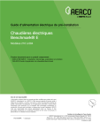 TAG-0109FR • Benchmark E Guide d'alimentation électrique de pré-installation 1. GÉNÉRALITÉS 2. EXIGENCES ÉLECTRIQUES DE LA CHAUDIÈRE Les chaudières Benchmark E sont disponibles avec les options de puissance suivantes : Modèle BMK E Tension Phase Ampérage 480 V 3Æ / 60 Hz 260 BMK E 216 600 V 3Æ / 60 Hz 208 480 V 3Æ / 60 Hz 433 BMK E 360 600 V 3Æ / 60 Hz 347 480 V 3Æ / 60 Hz 520 BMK E 432 600 V 3Æ / 60 Hz 416 480 V 3Æ / 60 Hz 693 BMK E 576 600 V 3Æ / 60 Hz 555 480 V 3Æ / 60 Hz 823 BMK E 684 600 V 3Æ / 60 Hz 659 *Courant admissible minimal du circuit **Protection maximale contre les surintensités MCA* MOCP** 325 260 542 434 650 520 867 350 300 600 450 700 600 1000 694 1029 824 700 1200 1000 Tableau 1 : Spécifications électriques du Benchmark E REMARQUE : Il est recommandé d'utiliser du fil de cuivre. En cas d'utilisation de fil d'aluminium, une graisse conductrice est nécessaire pour prévenir la corrosion. Les dommages résultant de l'utilisation de fils en aluminium sont exclus de la garantie de cet appareil. Benchmark E Guide d'alimentation électrique de pré-installation Sectionneur Figure 1 : Emplacement typique du sectionneur de service Figure 2a : Raccordements d'alimentation et de mise à la terre, BMK216 - 432 Benchmark E Guide d'alimentation électrique de pré-installation Figure 2b : Raccordements électriques et de mise à la terre, BMK 576 et 684 3. DISPOSITIONS RELATIVES AU SERVICE 4. CÂBLAGE DE CHAUDIÈRE dimensionné pour les valeurs d'ampérage du tableau 1 Benchmark E Guide d'alimentation électrique de pré-installation © AERCO International, Inc., 2025 ">