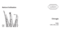Notice d’utilisation Chirurgie Scies S-8R, S-8S, S-80 Sommaire Symboles................................................................................................................................................................................... 4 1. Introduction.......................................................................................................................................................................... 6 2. Consignes de sécurité......................................................................................................................................................... 9 3. Description du produit....................................................................................................................................................... 12 4. Mise en service................................................................................................................................................................... 14 5. Hygiène et entretien.......................................................................................................................................................... 18 Consignes générales.......................................................................................................................................................................... 18 Limitation du retraitement................................................................................................................................................................ 20 Premier traitement sur le lieu d’action...............................................................................................................................................21 Nettoyage manuel.............................................................................................................................................................................. 22 Désinfection manuelle....................................................................................................................................................................... 27 Nettoyage et désinfection mécaniques........................................................................................................................................... 28 Séchage.............................................................................................................................................................................................. 29 Contrôle, entretien et inspection....................................................................................................................................................... 30 2 Emballage........................................................................................................................................................................................... 35 Stérilisation........................................................................................................................................................................................ 36 Stockage............................................................................................................................................................................................. 38 6. Service................................................................................................................................................................................ 39 7. Accessoires, consommables, pièces détachées et autres dispositifs médicaux recommandés W&H..................... 40 8. Caractéristiques techniques............................................................................................................................................. 41 9. Mise au rebut...................................................................................................................................................................... 43 Conditions de garantie........................................................................................................................................................... 44 Partenaires agréés Service Technique W&H........................................................................................................................ 45 3 Symboles AVERTISSEMENT ! (Au cas où des personnes pourraient être blessées) ATTENTION ! (Au cas où des objets pourraient être endommagés) Indications générales, sans danger, ni pour les êtres humains, ni pour les objets Attention ! D’après la législation fédérale américaine, la vente de ce produit n’est autorisée que par ou sur ordre d’un dentiste, d’un médecin, d’un vétérinaire ou d’un autre professionnel de la médecine avec une homologation dans l’État fédéral dans lequel il pratique et souhaite utiliser le produit ou permettre son utilisation. 4 Ne pas éliminer avec les déchets ménagers Fabricant Symboles XXXX Marquage CE suivi du numéro d’identification de l’organisme notifié DataMatrix Code pour les informations de produit avec UDI (Unique Device Identification) Structure des données conformément à Health Industry Bar Code Référence Thermodésinfectable Stérilisable jusqu’à la température indiquée Numéro de série Homologation UL pour les composants reconnus au Canada et aux États-Unis Dispositif médical Date de fabrication Respecter la notice d’utilisation 5 1. Introduction La satisfaction du client est l’objectif prioritaire de la politique qualité de W&H. Ce dispositif médical a été développé, fabriqué et contrôlé selon les normes et lois en vigueur. Pour votre sécurité et celle de vos patients Veuillez lire attentivement cette notice d’utilisation avant la première utilisation. Elle vous permettra de vous familiariser avec la manipulation de votre dispositif médical et vous garantira un traitement sûr, efficace et sans incident. Suivez les consignes de s