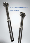GIANT CONTACT SWITCH SL MODE D'EMPLOI |FRANÇAIS| CONTACT SWITCH SL GIANT MODE D'EMPLOI TABLE DES MATIERES 1. INTRODUCTION...................................................................................................................................................... 2 2. LISTE DES PIÈCES .................................................................................................................................................... 3 3. CARACTÉRISTIQUES .............................................................................................................................................. 4 4. OPTIONS DE LEVIER DE COMMANDE À DISTANCE ................................................................................ 5 5. INSTALLATION ......................................................................................................................................................... 6 6. UTILISATION ............................................................................................................................................................. 8 7. ENTRETIEN ET DÉPANNAGE .............................................................................................................................. 8 8. GIANT GARANTIE LIMITÉE............................................................................................................................... 10 1 |FRANÇAIS| CONTACT SWITCH SL GIANT MODE D'EMPLOI 1. INTRODUCTION Félicitations pour l'achat de votre nouvelle tige de selle télescopique GIANT CONTACT SWITCH SL. La toute nouvelle tige de selle télescopique GIANT CONTACT SWITCH SL est conçue pour le crosscountry et le gravel. Dotée d'un système de ressort mécanique, d'un système d'actionnement à deux positions et d'une construction robuste, elle offre des performances fluides et efficaces pour un poids minimal, idéal pour aborder les montées et les descentes exigeantes en toute confiance. Son design épuré se veut purement fonctionnel : une position haute pour une conduite efficace, une position basse pour les défis techniques. Simplicité et absence d'intermédiaires inutiles. Des débattements de 110 mm et 140 mm sont disponibles pour répondre aux exigences de la plupart des cyclistes. Sa construction en alliage haut de gamme offre une résistance exceptionnelle tout en conservant un poids minimal. Les boulons en titane et le collier de selle repensé réduisent encore le poids total. Simple et léger, le GIANT CONTACT SWITCH SL vous permet d'affronter vos sentiers comme un pro. ⚠ATTENTION Lisez attentivement toutes les instructions avant d’installer et d’utiliser cette tige de selle. Le nonsuivi de ces instructions peut entraîner de graves blessures ou même la mort. 1. Régler la hauteur de la selle en roulant peut vous faire perdre le contrôle. 2. Ne roulez jamais avec un CONTACT SWITCH SL qui a subi des modifications. Toute modification annule la garantie. 3. Des pièces desserrées, trop serrées, endommagées ou usées peuvent provoquer un dysfonctionnement intempestif. Vérifiez périodiquement la tige de selle pour détecter tout signe de dommage ou d’usure. Si vos observez des signes d’usure, des fissures ou des bosses sur la tige de selle ou sur l’une de ses pièces, cessez immédiatement de l’utiliser et adressez-vous à un détaillant GIANT agréé pour inspection, réparation ou remplacement. 4. Avant de rouler, vérifiez que tous les boulons de la tige de selle du CONTACT SWITCH SL ont été correctement serrés aux couples recommandés. 5. Un serrage excessif de la pince de la tige de selle peut affecter la fonctionnalité de réglage de la hauteur de la tige. Le couple de serrage recommandé est gravé sur la tige, ou figure dans le manuel du vélo. 2 |FRANÇAIS| CONTACT SWITCH SL GIANT MODE D'EMPLOI 2. LISTE DES PIÈCES ➊ Corps de la pince de selle ➋ Tube supérieur ➌ Bague de collier ➍ Tube inférieur ➎ Diamètre du tube de selle (mm) ➏ Longueur totale ➐ Numéro de série de production ➑ logement de la gaine de la commande à distance ❶ Ⓐ Écrou de la pince de selle (M6) Ⓑ Pince de selle - Supérieure (rail de 7mm / 7x 9mm/ 7x10mm seulement) Ⓒ Pince de selle - Inférieure (rail de (7mm / 7x 9mm/ 7x10mm seulement) Ⓓ Joint d'étanchéité Ⓔ Entrée du câble de la commande à distance Ⓕ Écrou de pince de selle (M6 6 pans) Couple max. : 6,0 N·m 3 |FRANÇAIS| CONTACT SWITCH SL GIANT MODE D'EMPLOI 3. CARACTÉRISTIQUES COURSE : 110 MM 1 2 3 4 5 Course Longueur totale* Extension max. Insertion min. Diamètre Poids 110 mm 340 mm 260 mm 80 mm 30,9 mm 360 ±10g COURSE : 140 MM 1 2 3 4 5 Course Longueur totale* Extension max. Insertion min. Diamètre Poids 140 mm 390 mm 310 mm 80 mm 30,9 mm 390 ±10g * Une variation de ±5 mm sur la longueur totale est possible. Cela est normal et correspond à la tolérance de fabrication. 4 |FRANÇAIS| CONTACT SWITCH SL GIANT MODE D'EMPLOI 4. OPTIONS DE LEVIER DE COMMANDE À DISTANCE CONTACT SWITCH CORE CONTACT SWITCH AT GEAR: 150000144 GIANT ROAD DROP-BAR REMOTE GIANT VERTICAL REMOTE GEAR: 150000074 CONTACT SWITCH SL GEAR: 150000073 Un tout nouveau levier de commande à distance économique est désormais disponible. Selon le vélo que vous avez acheté, le levier de commande à distance correspondant peut être, sans s’y limiter, de l’un des types ci-dessus. Le CONTACT SWITCH SL GIANT est compatible avec tous les leviers de commande à distance de la gamme de produits GIANT. 5 |FRANÇAIS| CONTACT SWITCH SL GIANT MODE D'EMPLOI 5. INSTALLATION A B C D E F G H 1. (Passez à l’étape 2 si vous construisez un nouveau vélo) Retirez la tige de selle et la selle existantes avant d’installer le CONTACT SWITCH SL GIANT. 2. Desserrez et retirez le boulon de la pince de selle arrière. L’entrée du câble de la commande est maintenant visible (A). Insérez le nouveau câble de commande. Le câble passe le long de la tige et ressort à l’extrémité inf