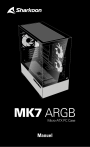 MK7 ARGB Micro-ATX PC Case Manuel Spécifications Caractéristiques générales: Facteur de forme: Slots d‘expansion: Revêtement intérieur: Support carte graphique: Installation sans montage des périphériques: Système de gestion des câbles: Panneau latéral: Versions en couleur: Dimensions (L x P x H): Micro-ATX 5 Verre trempé Noir, Blanc 43,5 x 22,5 x 44,5 cm Compatibilité RVB: Type: Ports: Contrôle manuel: Compatibilité carte mère: Broche RVB: Adressable 4 22 modes ASUS Aura Sync, MSI Mystic Light Sync, ASRock Polychrome Sync, Gigabyte RGB Fusion Ready 5V-D-coded-G Baies maximum: 3,5" 2,5" 2 3 I/O: Type-C (USB 3.2 Gen 2): USB 3.0 (gauche): Audio (gauche): 1 2 (Prise jack TRRS) Configuration des ventilateurs: Panneau arrière: Panneau supérieur: Panneau latéral: Panneau inférieur: Concentrateur de ventilateur PWM: 1x ventilateur PWM ARVB de 120 mm (pré-installé) 3x ventilateur de 120 mm ou 2x ventilateur de 140 mm ou radiateur (en option) 2x ventilateur PWM ARVB de 120 mm (pré-installé) ou radiateur* (en option) 2x ventilateur de 120 mm (en option) 4 ports Compatibilité: Carte mère: Mini-ITX, Micro-ATX (BTF) Longueur max. des cartes graphiques: 41,0 cm Hauteur max. du refroidisseur CPU: 17,0 cm Longueur max. du bloc d‘alimentation: 23,5 cm Hauteur max. du radiateur avec ventilateur (supérieur): 6,0 cm Contenu de l‘emballage: MK7 ARGB, Kit d‘accessoires * Une longueur de carte graphique supérieure à 26 cm peut gêner l‘installation du radiateur sur la panneau latéral 01 Consignes de sécurité L’appareil est conçu comme un boîtier pour les composants matériels PC dans des zones intérieures sèches. Pour votre propre sécurité, suivez toujours les instructions ci-dessous et assurez-vous que l’appareil n’est pas endommagé avant de l’utiliser. En outre, utilisez uniquement des câbles compatibles et des accessoires autorisés. La garantie du fabricant sera annulée si le produit ou tout composant matériel installé est endommagé en raison d’une mauvaise utilisation ou du non-respect de ces consignes de sécurité. En cas de problème avec le produit, contactez notre service d’assistance technique à l’adresse support@ sharkoon.com. • • • • AVERTISSEMENT ! Risque d’étouffement ou de suffocation dû aux petites pièces et aux matériaux d’emballage. Gardez l’appareil et ses matériaux d’emballage hors de portée des enfants de moins de 6 ans ! AVERTISSEMENT ! Risque de blessure telle que coupure ou contusion. Faites attention aux bords tranchants, aux ouvertures et aux pièces mobiles. Utilisez des gants de sécurité lors de l’installation du matériel. AVERTISSEMENT ! Crises d’épilepsie provoquées par les lumières clignotantes. N’utilisez l’appareil que dans des pièces bien éclairées ou, si possible, désactivez l’éclairage de l’appareil ! En cas de doute, consultez un médecin avant utilisation ! ATTENTION ! Risque de casse dû à une tension de surface élevée. Évitez toute pression excessive sur les panneaux en verre trempé, par exemple en posant le verre trempé sur l’un de ses bords sur une surface dure. 02 Assemblage du panneau latéral 03 Installer les disques durs/SSD de 2,5” Ou 04 Installer les disques durs/SSD de 2,5” 05 Installer les disques durs/SSD de 2,5” 06 Installer les disques durs de 3,5” en option en option en option en option 07 Installer les disques durs de 3,5” 08 Installer les cartes d’extension 09 Retirer les filtres anti-poussière 10 Ajuster le support carte graphique 11 Installer les ventilateurs 12 Installer le radiateur sous le panneau supérieur Radiateur de 120 mm 140 mm 240 mm 280 mm 360 mm 13 Installer le radiateur sur le panneau latéral Radiateur de 120 mm 140 mm 240 mm 14 Commande RVB adressable via la carte mère Un ventilateur doit être connecté à FAN1 pour permettre le contrôle de la vitesse du ventilateur via la carte mère et l’affichage des signaux de vitesse du ventilateur. FAN4 LED4 FAN3 LED3 FAN2 LED2 FAN1 LED1 RESET SW Ventilateurs / bandes LED RVB adressables PWM à 4 broches ou ventilateurs à 3 broches +5V D ADD_HEADER Connecteur RVB adressable sur la carte mère Connecteur de ventilateur PWM à 4 broches sur la carte mère SATA 15 Commande RVB adressable manuelle Un ventilateur doit être connecté à FAN1 pour permettre le contrôle de la vitesse du ventilateur via la carte mère et l’affichage des signaux de vitesse du ventilateur. FAN4 LED4 FAN3 LED3 FAN2 LED2 FAN1 LED1 RESET SW Ventilateurs / bandes LED RVB adressables Connecteur de ventilateur PWM à 4 broches sur la carte mère PWM à 4 broches ou ventilateurs à 3 broches Rouge Vert Mode RVB 13 Bleu Blanc Jaune Cyan Rose SATA Blanc naturel Blanc chaud Mode RVB 1 Appuyez sur le bouton reset pour sélectionner différents modes Mode RVB 12 Mode RVB 11 Mode RVB 10 Mode RVB 9 Mode RVB 8 Mode RVB 7 Mode RVB 6 Mode RVB 5 Mode RVB 2 Mode RVB 4 Mode RVB 3 Appuyez sur le bouton reset pendant 2 secondes pour éteindre les LED. Lorsque les LED sont éteintes, appuyez sur le bouton reset pour allumer les LED. 16 Remarque(s) Mentions légales Sharkoon n’assume aucune responsabilité pour les pertes de données, en particulier celles causées par un traitement inapproprié. Les noms de produits et descriptions sont des marques commerciales et/ou protégées des fabricants respectifs, acceptées comme protégées. Dans le cadre de la politique d‘amélioration continue des produits chez Sharkoon, le design et les spécifications sont sujets à des modifications sans préavis. Les spécifications nationales du produit peuvent varier. Tous les droits sont réservés, en particulier pour la traduction, la réimpression, la reproduction par copie ou tout autre moyen technique. Toute infraction donnera lieu à une demande de compensation. Tous droits réservés, en particulier en cas de cession de brevet ou de brevet d‘utilité. Les méthodes de livraison et de modification technique 