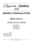 MANUEL D'INSTALLATION SÉRIE VHP-CA CASSETTES AU PLAFOND B-VHP09CA-1 B-VHP12CA-1 B-VHP18CA-1 B-VHP24CA-1 REMARQUE IMPORTANTE, Lisez attentivement ce manuel avant d’installer ou d’utiliser votre nouveau climatiseur. Veillez à conserver ce manuel pour consultation ultérieure. 517.787.2100 • www.marsdelivers.com VHPxxCA - Manuel d’installation CONTENU CONSIGNES DE SÉCURITÉ ·································································································02 VUE D’ENSEMBLE DU PRODUIT ·························································································· 10 INSTALLATION DU PRODUIT ······························································································ 11 RACCORDEMENT DE LA TUYAUTERIE DE RÉFRIGÉRANT······················································23 PRÉCAUTIONS DE CÂBLAGE ······························································································26 ÉVACUATION DE L’AIR ······································································································29 REMARQUE SUR L’AJOUT DE RÉFRIGÉRANT ·······································································30 INSTALLATION DU PANNEAU ····························································································· 31 TEST DE FONCTIONNEMENT ······························································································33 EMBALLAGE ET DÉBALLAGE DU MODULE ···········································································34 Lire ce manuel Vous trouverez à l’intérieur plusieurs conseils utiles sur l’utilisation et l’entretien de votre climatiseur. En entretenant votre climatiseur de manière préventive, vous pouvez économiser beaucoup de temps et d’argent pendant la durée de vie de votre climatiseur. Ces instructions peuvent ne pas couvrir toutes les conditions d’utilisation possibles. Il est donc nécessaire de faire preuve de bon sens et de porter une attention particulière à la sécurité lors de l’installation, de l’utilisation et de l’entretien de ce produit. 0 VHPxxCA - Manuel d’installation CONSIGNES DE SÉCURITÉ Il est très important de lire les précautions à prendre avant l’utilisation et l’installation. Une mauvaise installation due au non-respect des instructions peut causer des dommages graves ou des blessures. La gravité des dommages et des blessures possibles est catégorisée comme un AVERTISSEMENT ou une MISE EN GARDE. Explicación de los símbolos AVERTISSEMENT Ce symbole indique le risque de blessures corporelles ou de perte de vie. MISE EN GARDE Ce symbole indique la possibilité de dommages matériels ou de conséquences graves. AVERTISSEMENT L’appareil n’est pas conçu pour être utilisé par des personnes (enfants y compris) présentant des capacités physiques, sensorielles ou mentales réduites ou manquant d’expérience et de connaissances, à moins qu’elles soient surveillées ou aient reçu des instructions quant à l’utilisation de l’appareil par une personne responsable de leur sécurité. Les enfants doivent être surveillés afin de s’assurer qu’ils ne jouent pas avec l’appareil. AVERTISSEMENTS ÉLECTRIQUES • Utiliser uniquement le fil spécifié. Si le fil est endommagé, il doit être remplacé par le fabricant, son agent de maintenance ou toute autre personne qualifiée afin d’éviter tout risque. • Le produit doit être correctement mis à la terre au moment de l’installation pour éviter tout risque de décharge électrique. • Pour tous les travaux électriques, suivez toutes les normes et réglementations locales et nationales en matière de câblage, ainsi que le Manuel d’installation. Connectez les câbles fermement et fixez-les fermement pour éviter que des forces externes n’endommagent la borne. Des branchements électriques incorrects peuvent surchauffer, provoquer un incendie et provoquer une décharge électrique. Toutes les connexions électriques doivent être effectuées conformément au schéma de connexion électrique situé sur les panneaux des unités intérieures et extérieures. • Tout le câblage doit être correctement disposé pour s’assurer que le couvercle de la carte de commande peut se fermer correctement. Si le couvercle de la carte de commande n’est pas correctement fermé, il peut éventuellement contracter de la corrosion et provoquer la surchauffe des points de connexion sur la borne, un incendie ou une décharge électrique. • La déconnexion doit être intégrée au câblage fixe conformément aux règles de câblage. • Ne partagez pas la prise électrique avec d’autres appareils. Une alimentation incorrecte ou insuffisante peut provoquer un incendie ou une décharge électrique. • En cas de connexion d’une alimentation à câblage fixe, un dispositif de déconnexion possédant au moins 3 mm d’ouvertures à tous les pôles et ayant un courant de fuite pouvant dépasser 10 mA, le dispositif de courant résiduel (RCD) ayant un courant de résiduel nominal ne dépassant pas 30 mA, et une déconnex
