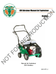N O T R FO R EP U D O R C TI O N N O T FO R R O C TI U D O EP R Identification de votre unité.................................................3 Sécurité de l’utilisateur........................................................ 4 Avant utilisation................................................................ 4 Utilisation sur terrains en pente....................................... 4 Étiquettes.......................................................................... 4 Caractéristiques et commandes..........................................5 Conduit combiné et béquille à dents................................5 Levier de position des dents............................................ 6 Réservoir à eau................................................................6 Poignée pliante.................................................................7 Commutateur marche/arrêt du moteur............................. 7 Configuration initiale............................................................ 7 Déplier la poignée supérieure.......................................... 7 Fixation du réservoir d’eau...............................................7 Vérifications du moteur.....................................................8 Fonctionnement.................................................................... 9 Démarrage de l'unité........................................................ 9 Aération.............................................................................9 Conseils d’utilisation......................................................... 9 Procédures de maintenance.............................................. 10 Remplacement d’une dent individuelle...........................10 Ajustement de la tension de la chaîne........................... 10 Réglage de la tension de la courroie............................. 11 Remplacement de la courroie d’entraînement............... 11 Remplacement de la chaîne d’entraînement et/ou de la chaîne de dents..............................................................12 Remplacement de l’enrouleur de dent........................... 13 Lubrification des chaînes d’entraînement et de dents............................................................................... 13 Lubrification des paliers..................................................13 Entretien périodique....................................................... 14 Dépannage........................................................................... 14 Spécifications...................................................................... 15 Dimensions et poids....................................................... 15 Moteur AE401H.............................................................. 15 Moteur AE403V.............................................................. 15 N Table des matières: 2 Identification de votre unité Nous vous remercions d’avoir acheté cet équipement d’alimentation extérieur de qualité. Veuillez noter que dans ce manuel, tous les cas des termes GAUCHE et DROITE sont indiqués par rapport à la position de l’opérateur. Rapportez-vous au manuel du propriétaire du moteur pour l’emplacement des numéros d’identification du moteur. O N Avant toute utilisation, veuillez prendre connaissance de l’étiquette d’identification du produit. L’étiquette d’identification du produit (A, figure 1) se trouve à gauche de l’unité. Enregistrez votre numéro de modèle, le numéro de série, ainsi que le modèle et les numéros de série du moteur dans l’espace prévu à cet effet pour y accéder facilement. R EP R O D U C TI 1 R . DONNÉE DE RÉFÉRENCE DU PRODUIT FO Numéro de modèle de la machine : Numéro de série de l’unité : Nom du réparateur : O T Date d’achat : DONNÉE DE RÉFÉRENCE DU MOTEUR Marque du moteur : Modèle du moteur : N Type de moteur/ spécification : Numéro de code/série du moteur : Quand vous communiquez avec votre réparateur agréé pour des pièces de rechange, une réparation ou un entretien, ou des informations, vous DEVEZ avoir ces numéros avec vous. 3 Sécurité de l’utilisateur Étiquettes 2 Avant utilisation 4. Toujours identifier et marquer tous les objets fixes à éviter pendant les travaux, tels que (sans s’y limiter) les têtes d'arrosage, les vannes d'eau, les câbles enterrés ou les ancrages de cordes à linge. 5. Toujours porter un équipement de protection individuelle approprié, y compris, mais sans s’y limiter : protection oculaire, protection auditive, chaussures fermées, O Toujours inspecter la zone de fonctionnement avant de l’utiliser. Retirer l’ensemble des pierres, fils, cordes ou autres objets qui peuvent présenter un danger pendant les travaux. C TI 3. U Lire et comprendre le manuel de l’utilisateur dans son intégralité. S’assurer que tous les opérateurs de cet équipement connaissent les procédures d’utilisation avant d’utiliser cet équipement. Le fait de ne pas comprendre les procédures de fonctionnement et/ ou de maintenance peut entraîner une défaillance de l’équipement qui peut ne pas être couverte par la garantie du fabricant. D 2. O Lire et comprendre le manuel général de sécurité fourni avec cette unité. Tous les opérateurs doivent comprendre les dangers et les avertissements de sécurité décrits dans le manuel général de sécurité. Le non-respect des procédures de sécurité peut entraîner des blessures pour l’opérateur et/ou endommager l’unité. EP R 1. N Avant d’essayer d’utiliser l’appareil, s’assurer que les étapes décrites ci-dessous sont suivies : R Utilisation sur terrains en pente R Ne pas utiliser l’aérateur sur des pentes abruptes supérieures à 20°. Faire preuve d’une extrême prudence lors de l’utilisation sur toute surface inclinée. FO Lorsque vous travaillez sur une pente, conduisez l’unité à un angle de 45° par rapport à la pente. N O T Un fonctionnement p