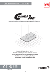 FR Notice d’instructions page 33 - 48 Automatisme hydraulique enterré pour portails à battants Rotation de l'arbre de 110° ou 175° Centrale et vérin hydraulique compacts internes Version réversible ou avec verrouillage bidirectionnel Modèles avec ou sans frein hydraulique Modèles avec ou sans régulateur de débit EN 13241 EN 12453 EN 12445 COMBI 740 automatisme hydraulique enterré pour portails à battants Français AVERTISSEMENTS DE SECURITE AUX USAGERS NOUS VOUS REMERCIONS Nous vous remercions d'avoir acheté un produit Fadini. Veuillez lire attentivement ces instructions avant d’utiliser l'appareil. Ces instructions sont des informations utiles vous permettant de mieux exploiter cet appareil,et vous assurer une installation, une utilisation et un entretien sécurisés et adéquats. Veuillez bien garder ce manuel et toujours vous y référ pour une utilisation sécurisée et adéquate de l'appareil. INTRODUCTION Cet automatisme a été conçu pour une utilisation qui respecte ce qu'il y a indiqué dans ce livret, avec les accessoires de sécurité et de signalisation minimaux demandés et avec les dispositifs Fadini. □ Toute autre application pas expressément indiquée dans ce livret pourrait provoquer des dysfonctionnements ou des dommages à choses et personnes. □ Meccanica Fadini n'est pas responsable d'éventuels dommages provoqués par une utilisation impropre et non spécifiquement indiquée dans ce livret. En outre, elle n'est pas responsable des dysfonctionnements causés de l'usage de matériels ou accessoires non recommandés par le fabricant. □ L'entreprise de construction se réserve le droit d'apporter des modifications aux propres produits sans préavis. □ Tout ce qui n'est pas prévue dans cette notice d'installation n'est pas permis. INSTRUCTIONS A SUIVRE AVANT L'INSTALLATION Contrôler avant toute intervention que l'entrée soit adapté à l'automatisation, ainsi que ces conditions et structure. □ Assurez-vous qu'y ne soit pas des risques d'impact, écrasement, cisaillement, convoyage, entraînement et enlèvement, tells qu'on pourrait affecter la sécurité des personnes. □ Installer l'automatisme loin de tout sources de chaleur et éviter le contact avec substances inflammables. □ Garder tout dispositifs de contrôle automatisme (émetteurs, lecteurs de proximité, sélecteurs etc) hors de la portée des enfants. □ Transiter à travers la zone du mouvement du portail seulement lorsque l'automatisme est fermé. □ Afin de garantir un niveau de sécurité adéquat de l'installation il est nécessaire d'utiliser photocellules, listeaux sensibles, spires magnétiques, détecteurs de masse métalliques, en assurant la sécurité de tout l'aire de mouvement du portail. □ Identifier les points dangereux de l'installation en l'en indiquant avec bandes jaune-noir ou autres signaux appropriés. □ Couper l'alimentation avant toute intervention d'entretien ou nettoyage de l'installation. □ Dans le cas on doit enlever l’opérateur du portail, ne pas couper les fils électrique; mais les débrancher en desserrant les vis du bornier. L'INSTALLATION Toute l'installation doit être accomplie par personnel technique qualifié et autorisé, conformément à la directive Machines 2006/42/CE et, notamment, aux normes EN 12445 et EN 12453. □ Vérifier la présence en amont de l'installation d'un interrupteur différentiel magnétothermique de 0,03 A de courant 230 V - 50 Hz. □ Utiliser des objets approprié pour effectuer les tests de fonctionnement des photocellules, détecteurs des masses métalliques, listeaux sensibles, etc. □ Effectuer une analyse des risques, en utilisant instruments de détection de l'impact et écrasement du bord principale d’ouverture et fermeture, conformément aux normes EN 12445. □ Définir les solutions appropriées pour éliminer ou réduire tels risques. □ Dans le cas où le portail à automatiser aurait doué d'une entrée piétonne, il serait bon d'accomplir l'installation de façon que le moteur ne fonctionne pas lorsque l'entrée piéton est utilisé. □ Fournir des indications concernant la position de l’installation en appliquant sur le portail des plaquettes de signalisation marquée CE. □ L'installateur doit informer l'utilisateur sur le fonctionnement correct du système, en lui remettant le dossier technique signé, incluant: le schéma et les éléments composants l'installation, l'analyse des risques, la vérification des accessoires de sécurité, la vérification de la force d'impact et la déclaration des risques résiduels. INDICATIONS POUR L'UTILISATEUR FINAL L'utilisateur doit consulter et recevoir information relative au fonctionnement de l'installation et il devient lui-même responsable du bon usage du système. □ Il faut qu'il conclue un contrat d'entretien ordinaire et extraordinaire (sur appel) avec l'installateur/réparateur. □ Toute l’intervention d'entretien doivent être accompli par des techniciens qualifiés. □ Conserver toujours la notice d'installation. AVERTISSEMENTS POUR LE FONCTIONNEMENT CORRECT DE L'INSTALLATION Pour que l’installation fonctionne correctement de façon durable et conformément aux normes de sécurité en vigueur, vous devez faire effectuer un entretien correct et le monitorage de toute l’installation au niveau de l’automation, des appareils électroniques installés et des câblages qui y sont branchés. □ Toute l'installation doit être effectuée par un technicien qualifié, qui doit remplir le Manuel d'Entretien indiqué dans le Livret des Normes (à demander ou télécharger sur le site www.fadini.net/supporto/downloads). □ L'automation: contrôle d'entretien tous les 6 mois au moins, tandis que le contrôle d'entretien des appareils électroniques et systèmes de sécurité doit être accompli une fois par mois au moins. □ Meccanica Fadini S.r.l. n'est pas responsable de l'éventuel non-respect des règles de bonne technique