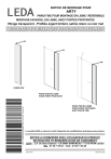 NOTICE DE MONTAGE POUR ARTY PAROI FIXE POUR MONTAGE EN LIGNE / RÉVERSIBLE MONTAGE EN NICHE, EN LIGNE, AVEC PORTES PIVOTANTES Vitrage transparent - Profilés argent brillant, satiné, blanc ou noir mat DOCUMENT A CONSERVER / DOCUMENT TE BEWAREN PAROI FIXE (01)20000002080752(94)AllBlank PAROI FIXE EN LIGNE POUR PORTE PIVOTANTE PAROI FIXE EN LIGNE POUR PORTE PIVOTANTE AVEC PARTIE FIXE La société LEDA se réserve le droit d’apporter des modifications techniques sans préavis. NOTICE A CONSERVER PAR L’UTILISATEUR DU PRODUIT INSTRUCTIES TE BEWAREN DOOR DE CONSUMENT LEDA : Z.A. Du Bois Gasseau - CS 80004 SAMOREAU - 77215 AVON CEDEX TEL : 01 60 71 66 41 - FAX : 01 60 71 66 49 SS2 / ARTY Décembre 2023 ARTY PAROI FIXE B min-max [mm] 20 227-242 30 327-342 40 427-442 50 527-542 Paroi Fixe B min-max [mm] 20 236-251 30 336-351 40 436-451 B 50 536-551 PAROI FIXE EN LIGNE POUR PORTE PIVOTANTE AVEC PARTIE FIXE Paroi Fixe B min-max [mm] 20 236-251 30 336-351 40 436-451 50 536-551 1989 1992 B Paroi Fixe 1989 1992 1989 1992 PAROI FIXE EN LIGNE POUR PORTE PIVOTANTE 2 B 3 L=1100 L=2200 14 3 15 41 29 4 16 M5 DIN934 31 4x20 30 43 18 17 M5x14 DIN7991 6 2,9x25 42 N S 5 44 32 19 7 45 46 33 20 L 8 6mm 47 R 21 48 34 9 2,5 49 10 22 50 35 3,5x13 DIN7982 11 23 51 3,0 36 24 12 52 37 25 50mm 8 8 2 1 1 1 1 1 1 – – – 8 8 2 1 1 1 1 1 1 1 1 1 PORTE PIVOTANTE AVEC PARTIE FIXE 1 – 1 1 1 3 3 3 – – – – – 1 1 1 1 1 1 3 3 3 1 1 4 4 4 1 1 1 1 1 – – – 1 1 1 1 1 2 – – – – – 1 1 2 1 1 1 1 – 1 – – – – 1 1 1 1 1 2 – – – – – – – – – – – – – – – 4 4 – – – – – – – 1 1 1 1+1 – – – – – – – – – – – – – – 1+1 1 1 1 – – – – – – – – – – – 1 1 2 1 1 1 1 – 1 1 1 2 3 4 5 6 7 8 9 10 11 12 13 14 15 16 17 18 19 20 21 22 23 24 25 26 27 28 29 30 31 32 33 34 35 36 37 38 39 40 41 42 43 44 45 46 47 48 49 50 51 52 40 28 3,5x32 DIN7982 PORTE PIVOTANTE 6mm 39 27 PAROI FIXE 38 26 13 2 8x40 1 4x40 11mm ARTY NE SILICO ProKNIFE ProLEV EL 2m 2.8 4 8 E IN VASEL ENTRETIEN NE PAS UTILISER DE PRODUITS ABRASIFS pour nettoyer la paroi NOTICE: a. Lire attentivement la notice avant installation. Vérifier tous les éléments de la liste ci-dessus. b. Préparez toutes les pièces et les outils dont vous aurez besoin et installer le produit en suivant les étapes d’instructions. ONDERHOUD Gebruik geen agressieve, schurende onderhoudsproducten voor de reiniging van het scherm. Notitie a. Lees aandachtig de handleiding alvorens aan te vangen met de montage. Kijk na of alle onderdelen van onderstaande lijst aanwezig zijn. b. Leg alle materialen en werkgerief klaar en start met de installatie door de verschillende stappen van het montagevoorschrift te volgen. 4 Etapes du montage en fonction du type de produit PAROI FIXE EN LIGNE POUR PORTE PIVOTANTE PAROI FIXE A1 A2 A3 A4 A5 A6 B1 B6 B10 B11 A7 A8 A9 A10 PAROI FIXE EN LIGNE POUR PORTE PIVOTANTE AVEC PARTIE FIXE B1 B2 B3 B4 B5 B6 B7 B8 B9 B10 B11 A1 B1 ProLEVEL ProLEVEL Pro LE VE L Pro LE VE L 5 ARTY A2 (L) (R) R L L 1 1 6 6 R 2 2 7 8 6 L 7 R 9 A3 (L) pour faciliter le coulissement mettre du liquide vaisselle, savon ou spray graisse silicone. INTERIEUR 26 21 26 (R) INTERIEUR 26 21 4 3 4 3 7 ARTY A4 (L) 4 (R) 3 5 5 9 2 2 3 3 5 VA S EL 8 IN E 1 9 A5 (L) (R) 28 2 H2O 1 35 3 36 28 28 9 ARTY A6 2 20 x4 3 9 1 25 25 8 9 x6 20 x4 2 1 4 8 1 x4 8 x6 1 10 ou B 2 7 A 12 30 30 Z 29 29 6 29 31 Z Z 38 38 A B 1 11 Z [mm] Paroi fixe-20 195 Paroi fixe-30 295 Paroi fixe-40 395 Paroi fixe-50 495 5 37 2.5 4 NE CO 29 I SIL 37 Z A ou B 10 A7 (L) 1 13 L=180 mm 10 4 (R) 28 4b x2 H2O 4b ~1 80 mm 2 3 6 x2 13 L=1100 4a 4a 1 28 5 H2O NE O IC L SI CO LI SI NE 11 ARTY A8 2.8 24 22 11 23 2 4 13 5 7 6 37 13 L=2200 x2 b /d d max.115mm 3 c 2 13 L=180 x2 a /c 1 37 b a 12 A9 (L) (R) 7 6 8 2 5 48 1 4 47 49 49 2 51 49 45 1 49 44 + 46 51 3 45 37 43 13 ARTY A10 NE O IC L SI NE CO LI SI SI LI 7 C O N E 7 SIL NE ICO SIL ICO NE NE ICO SIL 5 25 1 6 28 27 SI LI 4 C O 52 25 N E 2 25 L L+15 14 3 2m B2 (L) (R) R L L 1 1 6 6 R 2 2 7 8 L 7 R 9 15 ARTY B3 (L) pour faciliter le coulissement mettre du liquide vaisselle, savon ou spray graisse silicone. INTERIEUR 26 26 (R) INTERIEUR 4 3 26 26 4 3 16 B4 (L) (R) 3 3 9 5 L L 2a 2b 1 VASEL IN E 9 17 ARTY B5 (L) (R) 28 1 2 H2O 35 3 36 28 28 18 B6 3 x6 4 8 1 12 2 12 5 x6 2 12 10 x6 10 1 25 9 9 8 25 1 x6 2 1 11 ou B 8 A 12 30 30 Z 29 29 7 29 31 2.5 4 11 Z Z 38 A B NE Z [mm] CO 29 I SIL 6 1 38 38 Z A ou B Paroi fixe-20 195 Paroi fixe-30 295 Paroi fixe-40 395 Paroi fixe-50 495 38 19 ARTY B7 (L) 13 L=180 mm 10 4 (R) 1 4b 28 x2 4b H2O ~1 80 mm 2 x2 3 6 13 L=1100 4a 4a 1 28 5 H2O 20 E C LI SI E ON ON IC L SI B8 4 ±1 5 2 4a 10 mm 3 13 L=180 x2 mm 80 ~1 13 L=1100 2 x2 4a 1 37 21 ARTY B9 3 11 ASSEMBLAGE en ligne 13 18mm 13 10 5 13 2 13 d c 1 d 4 c 13 L=2200 13 L=2200 x2 x2 b /d b /d 13 L=180 b a x2 x2 a a /c a /c 6 37 22 13 L=180 b B10 (L) (R) 6 5 8 49 2 1 48 7 4 47 8 3 47 9 8 49 49 2 2 10 49 51 45 44 + 46 1 1 51 49 48 49 x2 45 43 23 ARTY B11 7 NE O IC L SI NE CO LI SI SI LI C O N E NE ICO SIL E ON LIC SI 7 NE ICO SIL 5 25 1 6 28 27 SI LI 4 C O 52 25 N E 25 2 L L+15 24 3 2m PIÈCES DE RECHANGE / ONDERDELEN Consulter votre revendeur pour toute commande de pièces détachées / Raadpleeg uw verdeler voor elke bestelling van onderdelen PAROI FIXE - POUR MONTAGE EN LIGNE C2517 C2516 6mm C2649 C2698 C2697 C2059 S1168 S1169 S1170 S1171 (20) (30) (40) (50) C2649 C2695 C1425 25 ARTY Ref DESIGNATION Qté C1425 EMBOUT D ANGLE BAGUETTE DE SEUIL (-1: BLANC / -3: CHROME / -5: NOIR) 1 C2516 EMBOUTS D'EQUERRE DE FIXATION (-1: BLANC / -3: CHROME / -5: NOIR) 1 C2517 PROFILE D'EQUERRE DE FIXATION (-1: BLANC / -3: CHROME / -5: NOIR) 1 C2059 JOINT CRANTE 1 C2649 EMBOUTS DE PROFILE (-1: BLANC / -3: CHROME / -5: NOIR) 1 C2698 PAIRE DE JOINTS MAGNETIQUES (-1: TRANSPARENT / -5: NOIR) 1 C2697 PROFILE MURAL (-1: BLANC / -0 : ARGENT MAT / -3: ARGENT BRILLANT / -5: NOIR) 1 C2695 FIXATION BASSE PAROI FIXE 6MM 1 S1168 VITRAGE DE