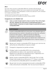 Merci Vous avez choisi une pile à combustible EFOY de l’entreprise SFC Energy AG. Nous vous souhaitons le meilleur avec votre nouvelle source d’énergie. Pour toute question sur l’installation et la manipulation, veuillez vous adresser à votre revendeur ou à la ligne d’assistance EFOY. Copyright by SFC Energy AG 2023. Tous droits réservés. Les informations peuvent être modifiées sans préavis. Révision 04/2023 Consignes pour une utilisation sûre Lisez ce mode d’emploi avant la mise en service. Pour votre propre sécurité, respectez les instructions et avertissements dans ce mode d’emploi. Conservez le mode d’emploi à proximité de la pile à combustible EFOY. AVERTISSEMENT La pile à combustible EFOY est conçue pour une utilisation dans un environnement bien ventilé et nécessite une arrivée d’air suffisante et libre de rejets gazeux. L’appareil doit être protégé des intempéries, en particulier de toute pénétration d’humidité. L’appareil produit des rejets gazeux qui doivent être conduits à l’air libre au moyen du tuyau de rejets gazeux fourni. Assurez toujours une aération suffisante. Ne pas ouvrir la pile à combustible EFOY. Ne pas ouvrir de force les cartouches de combustible et ne pas les remplir. Transporter uniquement en position verticale. Protéger la pile à combustible EFOY et les cartouches de combustible de la chaleur et du rayonnement solaire direct. Respecter les indications de température pour l’exploitation et le stockage mentionnées à la SECTION 2.3.3 . Stocker la pile à combustible EFOY à l’abri du gel. Pour le mode Antigel à des températures inférieures à 3 °C, laisser connectées une cartouche de combustible pleine et une batterie intacte. Ne pas fumer lors de la manipulation de la pile à combustible EFOY et des cartouches de combustible. Tenir les sources de chaleur et Page 83 d’inflammation à distance de l’appareil et des cartouches de combustible. La pile à combustible EFOY ainsi que les cartouches de combustible vides ou partiellement vidées ne sont pas destinées à être utilisées par des personnes (y compris les enfants) dotées de capacités physiques, sensorielles ou mentales restreintes ou ne disposant pas de l’expérience et/ou des connaissances nécessaires, à moins qu’elles ne soient supervisées par une personne responsable de leur sécurité ou que cette personne les instruise sur la manière dont l’appareil doit être utilisé. Les enfants doivent être surveillés pour s’assurer qu’ils ne jouent pas avec l’appareil. Service et contact SFC Energy AG Eugen-Saenger-Ring 7 D-85649 Brunnthal Allemagne Ligne d’assistance : Appel gratuit* : E-mail : Site web : +49 89 673 592 555 00800 732 762 78 [email protected] www.efoy.com « Un appel gratuit depuis le réseau fixe est possible depuis les pays suivants : Allemagne, Autriche, Belgique, Danemark, Espagne, France, Italie, Norvège, Pays-Bas, Royaume-Uni, Suède et Suisse. Page 84 Sécurité Sommaire 1 Sécurité .................................................................................................................................................86 2 Structure et caractéristiques techniques .....................................................................................93 3 4 5 6 7 1.1 1.2 1.3 1.4 1.5 1.6 Signification des avertissements .......................................................................................................... 86 Consignes de sécurité pour la pile à combustible EFOY ............................................................... 87 Consignes de sécurité relatives au méthanol .................................................................................. 89 Certificats ....................................................................................................................................................... 90 Utilisation conforme ................................................................................................................................... 91 Transport et élimination ............................................................................................................................ 92 2.1 2.2 2.3 2.4 Contenu de la livraison ............................................................................................................................ 93 Raccordements de la pile à combustible EFOY ................................................................................ 94 Caractéristiques techniques ................................................................................................................... 94 Paramètres de chargement .................................................................................................................... 98 3.1 3.2 3.3 Avec l’app EFOY ...................................................................................................................................... 100 Avec le panneau de commande........................................................................................................ 101 Au moyen de la touche sur l’EFOY .................................................................................................... 102 4.1 4.2 Première mise en service...................................................................................................................... 103 Utilisation ................................................................................................................................................... 104 5.1 5.2 5.3 5.4 5.5 Changer la cartouche de combustible ............................................................................................. 108 Nettoyer la pile à combustible EFOY ................................................................................................. 112 Changer la batterie ou travailler sur la batterie ..............................................................................