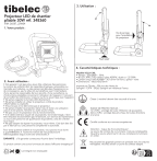tibelec 3. Utilisation : Projecteur LED de chantier pliable 30W réf. 348360 VIM: 26587_22W04 1. Votre produit : Vis de serrage pour l'orientation du projecteur Pied rotatif 4. Caractéristiques techniques : 2. Avant utilisation : • Cet appareil n'est pas prévu pour être utilisé par des personnes (y compris les enfants) dont les capacités physiques, sensorielles ou mentales sont réduites, ou des personnes dénuées d'expérience ou de connaissance, sauf si elles ont pu bénéficier, par l'intermédiaire d'une personne responsable de leur sécurité, d'une surveillance ou d'instructions préalables concernant l'utilisation de l'appareil. Il convient de surveiller les enfants pour s'assurer qu'ils ne jouent pas avec l'appareil. • Ne jamais regarder la lumière LED directement. • Ne jamais installer et utiliser le projecteur à côté de produits inflammables ou explosifs. • N'ouvrez pas et ne démontez pas le projecteur. • Ne jamais installer le projecteur dans l’eau et éviter une utilisation autour d’une piscine, fontaine ou autre source d’eau. • Ne pas couvrir le projecteur lors du fonctionnement. • Si le câble extérieur souple de ce projecteur est endommagé, il doit être remplacé exclusivement par le fabricant, son service de maintenance ou tout autre personne de qualification équivalente, cela afin d'éviter tout risque. • Ne pas essayer de réparer le projecteur vous-même. Cela doit être fait par le fabricant ou une personne compétente et autorisée. Pour toute question relative à nos produits, vous pouvez nous écrire à [email protected]. Toutes les notices de nos produits sont téléchargeables depuis notre site www.tibelec.fr GARANTIE : cf la garantie constructeur fournie dans l'emballage. Ce produit contient une source lumineuse de classe d’efficacité énergétique F LED LED Led intégrée non remplaçable Modèle KCL01-30L • Tension : 220/240V~, 50Hz • 40 LED 30W, 2370 lumens, blanc 4000°K, durée +/- 25 000h. • Cordon long.1m90 H05RN-F 3G1.0mm² et fiche 2 pôles + terre • Dimensions : 180x210x270mm Importé par Tibelec - 996 rue des Hauts de Sainghin - CRT4 - 59262 Sainghin en mélantois France Classe I, matériel devant être raccordé à la terre INDICE DE PROTECTION 65 : 1er chiffre : protégé de toute infiltration de poussières 2ème chiffre : protégé des jets d'eau de toutes directions à la lance Certifié conforme aux normes européennes Attention : risque de chocs électriques ! La source de lumière de ce luminaire n'est pas remplaçable. Quand la source atteint sa fin de vie, remplacez le luminaire en entier. Ne pas jeter les appareils portant ce symbole avec les ordures ménagères. Veuillez utiliser un point de collecte adapté. FR ">