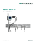 PanaFlow™ LC Manuel d'utilisation panametrics.com BH029C11 FR C PanaFlow™ LC Débitmètre à ultrasons pour liquides Manuel d'utilisation BH029C11 FR C Mars 2024 panametrics.com Copyright 2024 Baker Hughes Company. La présente notice contient une ou plusieurs marques déposées de Baker Hughes Company et de ses filiales, dans un ou plusieurs pays. Tous les noms de produits tiers et de société sont des marques commerciales de leurs détenteurs respectifs. [pas de contenu prévu pour cette page] ii Préface Services Panametrics met à la disposition de ses clients un personnel expérimenté, prêt à répondre à vos questions techniques ainsi qu'à vos besoins d'assistance sur site ou à distance. Pour compléter notre gamme étendue de solutions industrielles de pointe, nous proposons plusieurs types de services d'assistance flexibles et évolutifs, notamment : Formation, réparations produit, contrats de service et autres. Veuillez visiter https://www.bakerhughes.com/panametrics/panametrics-services pour en savoir plus. Conventions typographiques Remarque : Ces paragraphes fournissent des informations qui permettent de mieux comprendre la situation, sans pour autant être indispensables à la bonne exécution des instructions. IMPORTANT : Ces paragraphes fournissent des informations soulignant les instructions qu'il est essentiel de suivre pour configurer correctement le matériel. Le non-respect de ces instructions risque de nuire aux performances. ATTENTION ! Ce symbole indique un risque de dommages corporels mineurs et/ou de dommages matériels graves si les instructions présentées ne sont pas scrupuleusement respectées. AVERTISSEMENT ! Ce symbole indique un risque de dommages corporels graves si les instructions présentées ne sont pas scrupuleusement respectées. Consignes de sécurité AVERTISSEMENT ! Il incombe à l'utilisateur de s'assurer que chaque installation respecte toutes les réglementations et règles locales et nationales en vigueur concernant la sécurité et les conditions d'exploitation sûres. Attention, clients européens ! Pour répondre aux exigences de marque CE pour tous les appareils qu'il est prévu d'utiliser dans l'UE, tous les câbles électriques doivent être installés comme il est indiqué dans ce manuel. Matériel auxiliaire Normes de sécurité locales L'utilisateur doit s'assurer qu'il exploite tout le matériel auxiliaire conformément aux normes, règles, réglementations et législations locales en vigueur concernant la sécurité. Espace de travail AVERTISSEMENT ! Le matériel auxiliaire peut être exploité en mode manuel ou automatique. Comme le matériel peut effectuer des mouvements brusques sans prévenir, n'accédez pas à la cellule de travail de ce matériel lorsqu'il fonctionne en mode automatique, ni à l'enceinte de travail de ce matériel lorsque celui-ci fonctionne en mode manuel. Le non-respect de ces consignes peut entraîner de graves blessures. AVERTISSEMENT ! Avant toute intervention d'entretien sur ce matériel, assurez-vous que l'alimentation du matériel auxiliaire est coupée et verrouillée dans cet état. PanaFlow™ LC Manuel d'utilisation iii Préface Qualification du personnel Assurez-vous que tout le personnel justifie d'une formation agréée par le fabricant applicable au matériel auxiliaire. Équipement de protection individuelle Assurez-vous que les opérateurs et le personnel de maintenance portent tout l'équipement de protection adapté au matériel auxiliaire. Cet équipement peut inclure lunettes de sécurité, casque de protection, chaussures de sûreté, etc. Opération non autorisée Veillez à interdire aux personnes non autorisées d'opérer le matériel. Conformité environnementale Directive sur les déchets d'équipements électriques et électroniques (DEEE) Panametrics participe activement à l'initiative européenne de reprise des déchets d'équipements électriques et électroniques (DEEE), directive 2012/19/UE. Pour sa production, l'appareil que vous avez acquis a nécessité l'extraction et l'utilisation de ressources naturelles. Il peut contenir des substances dangereuses risquant d'avoir un impact sur la santé et l'environnement. Afin d'éviter la dissémination de ces substances dans votre environnement et de réduire les contraintes exercées sur les ressources naturelles, nous vous encourageons à utiliser les dispositifs appropriés de récupération des déchets. Ces dispositifs permettent de réutiliser ou recycler de manière appropriée la plupart des matériaux constitutifs de votre système en fin de vie. Le symbole du conteneur barré vous invite à choisir l'un de ces dispositifs. Pour plus d'informations sur les dispositifs de collecte, de réutilisation et de recyclage, veuillez contacter les services locaux ou régionaux de récupération des déchets concernés. Rendez-vous sur www.bakerhughes.com/health-safety-and-environment-hse pour obtenir des instructions sur la récupération et plus d’informations sur cette initiative. iv PanaFlow™ LC User’s Manual Contents Chapitre 1. Introduction 1.1 1.2 1.3 Présentation . . . . . . . . . . . . . . . . . . . . . . . . . . . . . . . . . . . . . . . . . . . . . . . . . . . . . . . . . . . . . . . . . . . . . . . . . . . . . . . . . . . . . . . . . . . . 1 Principe de fonctionnement. . . . . . . . . . . . . . . . . . . . . . . . . . . . . . . . . . . . . . . . . . . . . . . . . . . . . . . . . . . . . . . . . . . . . . . . . . . . . . 2 Application SIL . . . . . . . . . . . . . . . . . . . . . . . . . . . . . . . . . . . . . . . . . . . . . . . . . . . . . . . . . . . . . . . . . . . . . . . . . . . . . . . . . . . . . . . . . . 2 2.1 2.2 Consignes d'installation . . . . . . . . . . . . . . . . . . . . . . . . . . . . . . . . . . . . . . . . . . . . . . . . . . . . . . . . . . . . . . . . . . . . . . . . . . . . . . . . . 3 Déballage . . . . . . . . . . . . . . . . . . . . . . . . . . . . . . . . . . . . . . . . . .