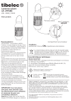 tibelec Lanterne solaire réf. 299380 VIM : 20282_19W33 Votre produit : Panneau solaire Inter 2 positions : ON-OFF ON Recommandations : OFF Compartiment accumulateur • ATTENTION : l'accumulateur installé à Installation : l'intérieur n'est pas chargé ou très peu. Avant positionnez l’inter sur ON et positionnez votre lanterne. de commencer l'installation, laissez charger la lanterne pendant une journée entière et plus si nécessaire, en plein soleil pour un Le consommateur est tenu de par la loi de recycler toutes fonctionnement optimum. les piles et tous les accumulateurs usagés. Il est interdit de • Vous pouvez vérifier le bon fonctionnement les jeter dans la poubelle ordinaire ! Reportez-vous aux de la lanterne en couvrant entièrement le précisions relatives à la protection de l’environnement. panneau solaire avec la main pour simuler Caractéristiques techniques : la nuit. • Cette lanterne est conçue pour fonctionner Modèle GLSL81028 dans le noir. S'il y a de la lumière, elle fonctionnera • Cellule crépusculaire : allumage et extinction automatique la nuit et le jour, faiblement ou ne fonctionnera pas du tout. • 1 LED blanc chaud 2700°K, • Elle aura une plus grande autonomie • 1 accumulateur rechargeable type LR06/AA 300mAh Ni-MH 1,2V, d’éclairage les nuits d’été et une durée moindre jusqu'à 6h d'autonomie (après charge complète), en hiver. La durée d’éclairage est proportionnelle • Dimensions : ø150 x haut. 325mm. au nombre d’heures d’exposition au rayonnement direct du soleil. Par exemple, un ciel voilé Matériel de Classe III, alimenté sous une tension inférieure à 50 volts fournira moins d’énergie à l'accumulateur et par conséquent la durée totale d’éclairage s’en trouvera réduite. Ne pas jeter les appareils portant Certifié conforme • Cette lanterne sert de balisage et son ce symbole avec les ordures ménagères. aux normes Veuillez utiliser un point de collecte adapté. européennes intensité n’est pas comparable à l’intensité d’une lampe classique fonctionnant sur secteur. • La source lumineuse de ce luminaire TIBELEC GARANTIT LA QUALITE ET LA FIABILITE DE CE PRODUIT ; IL FAIT n'est pas remplaçable; lorsque la source lumiPARTIE DES ARTICLES SOUS GARANTIE LEGALE D’UNE DUREE DE 2 ANS neuse atteint sa fin de vie, le luminaire entier POUR DEFAUTS ET VICES CACHES CONFORMEMENT AUX ARTICLES 1641 doit être remplacé. A 1648 DU CODE CIVIL. IMPORTANT: Ces instructions sont pour votre sécurité. Lisez les attentivement avant utilisation et conservez les pour une consultation ultérieure. Importé par Tibelec 996 rue des Hauts de Sainghin CRT4 59262 Sainghin en mélantois Tibelec ne pourra pas être tenu responsable des dommages causés suite à une mauvaise utilisation, mauvais entretien, un détournement de l’utilisation de ce produit, l’usure normale, bris par chute, ouverture de l’appareil. Tibelec ne pourra pas accepter en retour les produits pour remplacement de consommables (lampes, transfo., verre) nécessaires à l’utilisation de ce produit. Le remplacement des consommables est à votre charge. Pour toute question relative à nos produits, vous pouvez nous écrire à [email protected]. Toutes les notices de nos produits sont téléchargeables depuis notre site www.tibelec.fr ">