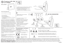 Projecteur LED 10W réf. 344020 Votre produit : 1 OFF - Installez hors de portée de bras, la distance entre le projecteur et la zone à éclairer doit être au minimum de 0,1m - choisissez un endroit pour l'installation, - présentez l'étrier de fixation, - perçez les trous et installez les chevilles Vous aurez besoin de : • une perçeuse • 2 vis et chevilles • pour le branchement : - 1 barrette domino 3 plots ou 3 bornes de connexion - une boîte étanche pour la protection Avant de commencer l'installation... • Coupez le courant à votre tableau électrique. • Cet appareil n'est pas prévu pour être utilisé par des personnes (y compris les enfants) dont les capacités physiques, sensorielles ou mentales sont réduites, ou des personnes dénuées d'expérience ou de connaissance, sauf si elles ont pu bénéficier, par l'intermédiaire d'une personne responsable de leur sécurité, d'une surveillance ou d'instructions préalables concernant l'utilisation de l'appareil. Il convient de surveiller les enfants pour s'assurer qu'ils ne jouent pas avec l'appareil. • Bien que ce projecteur soit protégé des projections d'eau, il est toujours recommandé de l'installer dans un endroit sous abri. • Le câble de ce luminaire ne peut être remplacé, s'il est endommagé, le luminaire doit être détruit. • Si vous avez des doutes ou des problèmes, consultez un électricien ou une personne habilitée. Notre service SAV est à votre disposition pour conseils et assistance, vous pouvez nous écrire à [email protected]. Toutes les notices de nos produits sont téléchargeables depuis notre site www.tibelec.fr Importé par Tibelec - 996 rue des hauts de Sainghin - CRT4 - 59262 Sainghin en mélantois IMPORTANT: Ces instructions sont pour votre sécurité. Lisez les attentivement avant utilisation et conservez les pour une consultation ultérieure. 2 de connexion ! Bornier non fourni - Connectez les fils en suivant l'illustration ci-contre. Assurez-vous que vos connexions électriques soient protégées de l'humidité en utilisant une boîte étanche par exemple. - Fixez le projecteur - Réglez l'orientation du projecteur et serrez fermement les 2 vis de l'étrier à l'aide d'un tournevis cruciforme - Rebranchez le courant. Caractéristiques techniques : Modèle BLS10A1 • Alimentation : 220/240V~, 50Hz, • LED 10W, 800 lumens, blanc 4000°K, +/- 30 000h, • Câble HO5RN-F 3x1mm2 long. 0m15 • Dimensions : 31x115x106mm. Certifié conforme aux normes européennes Matériel de Classe 1, devant être raccordé à la terre 5mm Alimentation 230V P N 10mm neutre (fil bleu) ...0,1m terre (fil vert/ jaune) ! NE PAS DEMONTER phase (fil marron) ON Distance minimale en mètre de la surface à éclairer par rapport à la surface à éclairer (0,1m) INDICE DE PROTECTION 65 : IP65 - 1er chiffre : protégé contre toute infiltration de poussières - 2nd chiffre : protégé contre les jets d'eau de toutes directions Si l'écran de protection (diffuseur) est fissuré ou cassé, il doit être remplacé par un écran de même type. Le projecteur ne doit être utilisé que complet avec son écran de protection. La source de lumière de ce luminaire n'est pas remplaçable. Quand la source atteint sa fin de vie, remplacez le luminaire en entier. TIBELEC GARANTIT LA QUALITE ET LA FIABILITE DES COMPOSANTS DE CE PRODUIT ; IL FAIT PARTIE DES ARTICLES SOUS GARANTIE LEGALE D’UNE DUREE DE 2 ANS POUR DEFAUTS ET VICES CACHES CONFORMEMENT AUX ARTICLES 1641 A 1648 DU CODE CIVIL. NOTRE SERVICE SAV EST A VOTRE DISPOSITION POUR CONSEILS ET ASSISTANCE, VOUS POUVEZ NOUS ECRIRE à [email protected]. Tibelec ne pourra pas être tenu responsable des dommages causés suite à une mauvaise utilisation, mauvais entretien, un détournement de l’utilisation de ce produit, l’usure normale, bris par chute, ouverture de l’appareil. Tibelec ne pourra pas accepter en retour les produits pour remplacement des consommables (lampes,transfo., verre) nécessaires à l’utilisation de ce produit. Le remplacement des consommables est à votre charge. 112016 ">