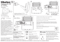 2 1 Projecteur LED 20W réf. 352460 OFF VIM : 21947_20W14 Votre produit : serre-câble x2 x2 Vous aurez besoin de : 4mm et une perçeuse - Choisissez un endroit pour l'installation, - présentez l'étrier de fixation, - repérez, perçez les trous et installez les chevilles phase 3 1/ Dévissez et passez le câble par le joint et le presse-étoupe, Utilisez un câble pour l'extérieur 2 pôles+terre 2/ Dévissez les vis du serre-câble et passez le câble 3/ Connectez les fils : neutre (fil bleu), terre (fil vert/jaune), phase (fil marron) 4/ Revissez fermement les 2 vis du serre-câble Avant de commencer l'installation... • Coupez le courant à votre tableau électrique. • Cet appareil n'est pas prévu pour être utilisé par des personnes (y compris les enfants) dont les capacités physiques, sensorielles ou mentales sont réduites, ou des personnes dénuées d'expérience ou de connaissance, sauf si elles ont pu bénéficier, par l'intermédiaire d'une personne responsable de leur sécurité, d'une surveillance ou d'instructions joint préalables concernant l'utilisation de l'appareil. Il d'étanchéité convient de surveiller les enfants pour s'assurer qu'ils ne jouent pas avec l'appareil. presse-étoupe • Bien que ce projecteur soit protégé des projections d'eau, il est toujours recommandé de l'installer dans 5mm un endroit sous abri. • Ne jamais regarder la lumière LED directement. • Ne jamais installer et utiliser le projecteur à côté de 10mm produits inflammables ou explosifs. • N'ouvrez pas et ne démontez pas le projecteur. • Ne jamais installer le projecteur dans l’eau et éviter Caractéristiques techniques : une utilisation autour d’une piscine, fontaine ou autre Modèle K2Z20A1 source d’eau. • Ne pas couvrir le projecteur lors du fonctionnement. • Alimentation : 220/240V~, 50/60Hz, • Ne pas essayer de réparer le projecteur vous-même. • LED 20W, 1560 lumens, blanc 4000°K, Cela doit être fait par le fabricant ou une personne +/- 30 000h compétente et autorisée. • Dimensions : 52x150x122mm Pour toute question relative à nos produits, vous pouvez nous écrire à [email protected]. Toutes les notices de nos produits sont téléchargeables depuis notre site www.tibelec.fr terre L = P = Phase : fil marron N = Neutre : fil bleu Terre : fil vert/jaune Produit garanti 5 ans, reportez-vous à la garantie constructeur fournie dans l’emballage. Importé par Tibelec - 996 rue des hauts de Sainghin - CRT4 - 59262 Sainghin en mélantois 5/ Vérifiez que l'intérieur du boîtier et le raccordement électrique reste étanche. Le joint, visible quand vous dévissez le presse-étoupe, doit être bien positionné de façon à ce qu'en serrant le presse-étoupe aucune humidité ne puisse pénétrer dans le boîtier. 6/ Revissez les vis du capot 7/ Fixez le projecteur, réglez l'orientation et serrez fermement les 2 vis de l'étrier à l'aide d'une clé BTR 4mm (non fournie) 8/ Rebranchez le courant ON IP65 - INDICE DE PROTECTION 65 : Certifié conforme aux normes européennes - 1er chiffre : protégé contre toute infiltration de poussières - 2e chiffre : protégé contre les jets d'eau de toutes directions Si l'écran de protection (diffuseur) est fissuré ou cassé, il doit être remplacé par un écran de même type. Le projecteur ne doit être utilisé que complet avec son écran de protection. Matériel de Classe 1, devant être raccordé à la terre Les produits électriques usagés ne doivent pas être jetés avec les ordures ménagères. Veuillez utiliser les aménagements spécifiques prévus pour les traiter. Renseignez-vous auprés des autorités locales ou du revendeur pour obtenir la marche à suivre en matière de recyclage La source de lumière de ce luminaire n'est pas remplaçable. Quand la source atteint sa fin de vie, remplacez le luminaire en entier. IK07 INDICE DE PROTECTION IK07, résistance aux chocs, énergie de choc : 2 joules (similaire à 500g lâché à une hauteur de 40cm) IMPORTANT: Ces instructions sont pour votre sécurité. Lisez les attentivement avant utilisation et conservez les pour une consultation ultérieure. ">