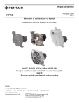 Hypro série 9303 Formulaire L-1547 Rév. B Manuel d’utilisation original CONSERVER POUR RÉFÉRENCE ULTÉRIEURE 9303C, 9303S, 9303C-SP et 9303S-SP Pompes centrifuges de série fonte et acier inoxydable 9303P Pompes centrifuges de série polypropylène Pentair 375 5th Ave., New Brighton, MN 55112 Téléphone : +1 651 766-6300 -OU- +1 800 424-9776 Fax : +1 800 323-6496 www.hypropumps.com Représentant autorisé UE : QNET BV Hommerterweg 286 6436 AM Amstenrade, Pays-Bas KvK Zuid-Limburg 14091511 CE REP Table des matières Langues de l’UE......................................................................................................................................................................3 Introduction..............................................................................................................................................................................4 Description..................................................................................................................................................................4 Usages prévus............................................................................................................................................................4 Objectif du manuel......................................................................................................................................................4 Mauvais usages..........................................................................................................................................................4 Identification de la pompe...........................................................................................................................................5 Données techniques de la pompe..............................................................................................................................5 Applications de pompage de fluides.........................................................................................................................12 Outils........................................................................................................................................................................12 Levage, transport et stockage intermédiaire............................................................................................................12 Assemblage et installation.....................................................................................................................................................13 Assemblage..............................................................................................................................................................13 Installation................................................................................................................................................................13 Diagramme de plomberie.........................................................................................................................................14 Mise en service, démarrage, fonctionnement et mise hors tension......................................................................................16 Informations..............................................................................................................................................................16 Démarrage, fonctionnement et mise hors tension....................................................................................................16 Maintenance et entretien.......................................................................................................................................................18 Informations..............................................................................................................................................................18 Mise au rebut............................................................................................................................................................18 Nettoyage.................................................................................................................................................................18 Maintenance, entretien courant et inspection...........................................................................................................18 Dépannage...............................................................................................................................................................19 Pièces de rechange..................................................................................................................................................20 Déclaration d’incorporation....................................................................................................................................................23 Garantie.............................................................................................................................................................. Dernière page -2- Langues de l’UE DO NOT attempt to install or operate your pump before reading the manual. Original copies of the manual for Hypro pumps are provided in English. To find a copy in your native language, go to www.hypropumps.com. Vor dem Ablesen des Handbuches versuchen Sie NICHT, Ihre Pumpe zu installieren. Originale des Handbuches fur Hypro-Pumpen werden auf englisch zur Verfugung gestellt. Zu eine Kopie in Ihrer Muttersprache finden, zu www.hypropumps.com zu gehen (en allemand) N’essayez pas d’installer votre pompe avant de lire le manuel. Des exemplaires originaux du manuel pour les pompes de Hypro sont fournis en anglais. Pour trouver un exemplaire dans votre langue maternelle, consultez le site www.hypropumps.com (en français) NON tentare di installare la vostra pompa prima di leggere il manuale. Esemplare originale del manuale per Hypro pompe sono in ing