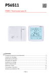 P56S11 FR|BE | Thermostat sans fil Sommaire Consignes de sécurité et avertissements .........................................................................2 Contenu de l'emballage.....................................................................................................3 Spécifications techniques..................................................................................................3 Description de l'appareil.....................................................................................................4 Installation et montage......................................................................................................6 Options fondamentales......................................................................................................9 Application mobile............................................................................................................13 Commandes et fonctions.................................................................................................15 Solutions aux problèmes, FAQ.........................................................................................17 FR|BE | 1 Consignes de sécurité et avertissements Avant d'utiliser cet appareil, lire attentivement la Notice utilisateur. Toujours veiller à respecter les consignes de sécurité stipulées dans la présente notice. • Avant de commencer à utiliser cet appareil, lire attentivement la Notice utilisateur. • Ne pas exposer cet appareil aux rayons directs du soleil, à des températures extrêmement basses, à de l'humidité ou à de brusques variations de température. Cela réduirait la précision du suivi. • Ne pas placer cet appareil à des endroits susceptibles d'être soumis à des vibrations et à des secousses, cela pourrait l'endommager. • Ne pas exposer le produit à une pression excessive, aux chocs, à la poussière, aux températures élevées ou à l'humidité : cela pourrait provoquer un dysfonctionnement de l'appareil, réduire son autonomie ou provoquer une déformation des pièces en plastique. • Ne pas exposer le produit aux intempéries ou à l'humidité, ni à des gouttes d'eau ou à un jet d'eau. • Ne placer aucune source de flamme nue sur l'appareil, comme une bougie allumée par exemple. • Ne pas placer cet appareil dans des endroits où la circulation d'air est insuffisante. • Ne pas obstruer les orifices de ventilation de l'appareil. • Ne pas intervenir sur les circuits électriques internes, vous pourriez les endommager et provoquer une annulation immédiate de la validité de la garantie. • Cet appareil ne devrait être réparé que par un spécialiste qualifié. • Pour le nettoyage, toujours utiliser un chiffon doux légèrement humide. Ne pas utiliser de solvants ni de produits de nettoyage, ils pourraient en effet rayer les parties en plastique et altérer les circuits électriques. • Ne pas immerger cet appareil dans de l'eau ni dans d'autres liquides. • En cas de dégradation ou de défaut de l'appareil, ne jamais essayer de le réparer vous-mêmes. Pour toute réparation, remettre l'appareil au revendeur qui vous l'a vendu. • Cet appareil n'a pas été conçu pour être utilisé par des personnes (enfants compris) qui ont des capacités physiques et/ou sensorielles limitées, qui ont des troubles mentaux ou qui ne sont pas suffisamment expérimentées, à moins qu'elles ne soient sous la surveillance d'une personne qui est responsable de leur sécurité ou qu'une telle personne leur ait fait suivre une formation relative à l'utilisation de l'appareil. Les enfants doivent rester sous surveillance afin de les empêcher de jouer avec cet appareil. FR|BE | 2 Contenu de l'emballage thermostat récepteur adaptateur USB câble USB-C vis 2 pcs cheville 2 pcs Spécifications techniques Charge commutée : max. 230 V AC ; 16 A pour les charges résistives ; 5 A pour les charges inductives Mesure de la température : 0 °C à 40 °C avec résolution de 0,1 °C ; précision ±1 °C à 20 °C Réglage de la température : 7 °C à 30 °C, par pas de 0,2 °C Variation de la température réglée : 0,1 °C à 1 °C, par pas de 0,1 °C Interconnexion des unités : au moyen d'un signal radio de 868 MHz, 25 mW e.r.p. max. Fréquence WiFi : 2,4 GHz, 25 mW e.i.r.p. max. Capacité d'appariement : max. 6 récepteurs Portée de l'unité de transmission : jusqu'à 100 m à l'air libre Alimentation : • Unité de commande (transmetteur) 5 V/1,5 A • Inclus : Adaptateur USB 5 V/1,5 A, câble USB-C de 1,5 m • Unité de commutation (récepteur) 230 V AC/50 Hz Dimensions : • Récepteur : 115 × 37 × 91 mm • Émetteur : 98 × 55 × 98 mm FR|BE | 3 Description de l'appareil Unité de commande (portable) 1 – Jour de la semaine 2 – Affichage de l'heure 3 – Communication sans fil avec récepteur 4 – Réception du signal Wi-Fi 5 – Commande manuelle 6 – Mode confort (température confortable) 7–M ode économique (température basse consommation) 8–P résélection des programmes et graphe de l'évolution de la température de la journée 9 – Température réglée 10 – Touche "VERS LE HAUT" 11 – Touche "VERS LE BAS" 12 – Température ambiante actuelle 13 – mode antigel 14 – Icône du fonctionnement (mise en marche) 15 – Touche du réglage de l'heure 16 – T ouche du réglage de la température confortable et basse consommation 17 – Touche du réglage du programme 18 – T ouche de commutation entre les modes confort/économique 19 – e ntrée USB-C pour connecter le câble d'alimentation 20 – Retirer le support de l'avant du thermostat FR|BE | 4 Unité de commutation (récepteur) 1 – Interrupteur principal ON/OFF 2 – Bouton d'appareillage 3 – Voyants à LED 4 – Contacts pour le raccordement Voyants à LED (diodes) • Le voyant LED bleu inférieur indique que l'unité de commutation est alimentée par une alimentation de 230 V AC. Si l'unité n'est pas branchée à l'ali