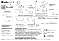 0416 tibelec 2 1 230V OFF Spot LED 9W extra plat à encastrer Rond réf. 306710-306740 Carré réf. 306810-306840 Rond borniers de connexion (non fournis) Carré phase (fil marron) Votre produit : transformateur neutre (fil bleu) ø135mm ou + ø135x135mm Perçez le plafond selon les dimensions ci-dessus 3 Effectuez les connexions électriques avec 2 borniers de connexion et connectez le spot au transfo. ! ne fonctionne pas avec un variateur Critères d’installation : - respectez les distances indiquées ci-dessous - ne couvrez pas directement le transfo et le spot de laine de verre. 50mm 50mm TRANSFO Vous aurez besoin de : - une perçeuse - une scie cloche (pour le modèle rond) ou une scie à guichet ou une mèche extensible - deux borniers de connexion Caractéristiques techniques : Modèle MBD-9W • Alimentation par transformateur 220-240V ~, 50/60Hz • LED 9W, blanc chaud 3000°K, durée +/- 25000h. 640 lumens (rond) - 520 lumens (carré) • Rond : ø150mm, épaisseur 10mm Carré : 150x150mm. Importé par Tibelec - 996 rue des Hauts de Sainghin - CRT4 - 59262 Sainghin en mélantois ON Avant de commencer l'installation... - AVANT INSTALLATION OU TOUTE INTERVENTION ULTERIEURE SUR L'APPAREIL, COUPEZ L’ALIMENTATION AU RESEAU PAR LE DISJONCTEUR OU AU TABLEAU DE FUSIBLES AFIN D'EVITER TOUT CHOC ELECTRIQUE. - IL CONVIENT DE SURVEILLER LES ENFANTS POUR S'ASSURER QU'ILS NE JOUENT PAS AVEC L'APPAREIL. - Cet appareil n'est pas prévu pour être utilisé par des personnes (y compris les enfants) dont les capacités physiques, sensorielles ou mentales sont réduites, ou des personnes dénuées d'expérience ou de connaissance, sauf si elles ont pu bénéficier, par l'intermédiaire d'une personne responsable de leur sécurité, d'une surveillance ou d'instructions préalables concernant l'utilisation de l'appareil. - N'utilisez que le transformateur fourni. En cas d'endommagement d'un des composants, s'adressez uniquement au revendeur ou à Tibelec pour un remplacement afin d'éviter tout danger. - Si vous avez des doutes ou des problèmes, consultez un électricien. Notre service SAV est à votre disposition pour conseils et assistance, vous pouvez nous écrire à [email protected]. Toutes les notices de nos produits sont téléchargeables depuis notre site www.tibelec.fr Classe II, double isolation, dispensé de raccord à la terre Utilisation à l'intérieur uniquement Certifié conforme aux normes européennes Garantie : Cf la garantie constructeur fournie dans l’emballage. IMPORTANT: Ces instructions sont pour votre sécurité. Lisez les attentivement avant utilisation et conservez les pour une consultation ultérieure. ">