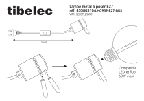tibelec Lampe métal à poser E27 réf. 45500310/LHC959-E27-BRS VIM: 32289_25W01 1m50 Compatible LED et fluo 60W maxi La douille intérieure est composée de 30 % de PET recyclé, le câble et la prise sont composés de plastique recyclé Certifié conforme aux normes européennes Matériel de Classe II, dispensé de raccord à la terre Ne pas jeter les appareils portant ce symbole avec les ordures ménagères. Veuillez utiliser un point de collecte adapté. Si le câble extérieur souple de ce luminaire est endommagé, il doit être remplacé exclusivement par le fabricant, son service de maintenance ou toute personne de qualification équivalente, cela afin d’éviter tout risque. Tibelec garantit la qualité et la fiabilité des composants de ce produit : il fait partie des articles sous garantie légale d’une durée de 2 ans pour défauts et vices cachés conformément aux articles 1641 a 1648 du code civil. Notre service technique est à votre disposition pour conseils et assistance, vous pouvez nous écrire à [email protected]. Toutes les notices de nos produits sont téléchargeables depuis notre site www.tibelec.fr. Tibelec ne pourra pas être tenu responsable des dommages causés suite à une mauvaise utilisation, mauvais entretien, un détournement de l’utilisation de ce produit, l’usure normal, bris par chute, ouverture de l’appareil. Tibelec ne pourra accepter en retour les produits pour remplacement des consommables (lampes, transfo, verre…) nécessaires à l’utilisation de ce produit. Le remplacement des consommables est à votre charge. FR 996 rue des hauts de Sainghin - CRT4 59262 Sainghin en mélantois FRANCE. www.tibelec.fr ">