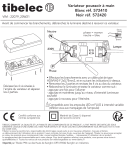 Variateur poussoir à main Blanc réf. 572410 Noir réf. 572420 VIM : 22079_20W21 Avant de commencer les branchements, débranchez le luminaire destiné à recevoir ce variateur. Neutre phase = marron neutre = bleu 5mm 8mm Lampe NL 230V Phase Dévissez les 4 vis situées à l’arrière du variateur et séparez les 2 parties. • Effectuez les branchements avec un câble plat de type H03VVH2-F 2x0,75mm2, et en suivant les indications ci-dessus. • Remontez les 2 parties et revissez les 4 vis au dos du variateur. • Rebranchez le luminaire et testez le variateur comme suit : - appuyez une fois pour l’allumer - appuyez et maintenez jusqu’au niveau d’intensité lumineuse souhaité - appuyez à nouveau pour l’éteindre. ! Compatible avec les ampoules LED et FLUO à intensité variable (référez vous aux marquages de l’ampoule) Certifié conforme aux normes européennes Matériel de Classe II, dispensé de raccord à la terre TIBELEC GARANTIT LA QUALITE ET LA FIABILITE DES COMPOSANTS DE CE PRODUIT ; IL FAIT PARTIE DES ARTICLES SOUS GARANTIE LEGALE D’UNE DUREE DE 2 ANS POUR DEFAUTS ET VICES CACHES CONFORMEMENT AUX ARTICLES 1641 A 1648 DU CODE CIVIL. Tibelec ne pourra pas être tenu responsable des dommages causés suite à une mauvaise utilisation, mauvais entretien, un détournement de l’utilisation de ce produit, l’usure normale, bris par chute, ouverture de l’appareil. Tibelec ne pourra pas accepter en retour les produits pour remplacement des consommables (lampes, fusibles,... ) nécessaires à l’utilisation de ce produit. Le remplacement des consommables est à votre charge. Pour toute question relative à nos produits, vous pouvez nous écrire à [email protected]. Toutes les notices de nos produits sont téléchargeables sur www.tibelec.fr Importé par Tibelec 996 rue des Hauts de Sainghin CRT4 59262 Sainghin en mélantois ">