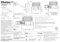 2 1 Projecteur LED 10W réf. 352440 OFF VIM : 20901_19W46 Votre produit : serre-câble x2 x2 Vous aurez besoin de : 4mm et une perçeuse - Choisissez un endroit pour l'installation, - présentez l'étrier de fixation, - repérez, perçez les trous et installez les chevilles 3 Utilisez un câble pour l'extérieur 2 pôles+terre terre neutre L = P = Phase : fil marron N = Neutre : fil bleu Terre : fil vert/jaune 1/ Dévissez et passez le câble par le joint et le presse-étoupe, 2/ Dévissez les vis du serre-câble et passez le câble 3/ Connectez les fils : neutre (fil bleu), terre (fil vert/jaune), phase (fil marron) Avant de commencer l'installation... • Coupez le courant à votre tableau électrique. • Cet appareil n'est pas prévu pour être utilisé par des personnes (y compris les enfants) dont les capacités physiques, sensorielles ou mentales sont réduites, ou des personnes dénuées d'expérience ou de connaissance, sauf si elles ont pu bénéficier, par l'intermédiaire d'une personne responsable de leur sécurité, d'une surveillance ou d'instructions préalables concernant l'utilisation de l'appareil. Il joint convient de surveiller les enfants pour s'assurer qu'ils d'étanchéité ne jouent pas avec l'appareil. • Bien que ce projecteur soit protégé des projections presse-étoupe d'eau, il est toujours recommandé de l'installer dans un endroit sous abri. 5mm • Ne jamais regarder la lumière LED directement. • Ne jamais installer et utiliser le projecteur à côté de produits inflammables ou explosifs. 10mm • N'ouvrez pas et ne démontez pas le projecteur. • Ne jamais installer le projecteur dans l’eau et éviter une utilisation autour d’une piscine, fontaine ou autre source d’eau. Caractéristiques techniques : • Ne pas couvrir le projecteur lors du fonctionnement. • Ne pas essayer de réparer le projecteur vous-même. Modèle K1Z10A1A Cela doit être fait par le fabricant ou une personne • Alimentation : 220/240V~, 50/60Hz, compétente et autorisée. • LED 10W, 790 lumens, blanc 4000°K, +/- 30 000h • Dimensions : 50x130x104mm Pour toute question relative à nos produits, vous pouvez nous écrire à [email protected]. Toutes les notices de nos produits sont Produit garanti 5 ans, reportez-vous téléchargeables depuis notre site www.tibelec.fr IMPORTANT: Ces instructions sont pour votre sécurité. Lisez les attentivement avant utilisation et Conservez les pour une consultation ultérieure. phase à la garantie constructeur fournie dans l’emballage. Importé par Tibelec - 996 rue des hauts de Sainghin - CRT4 - 59262 Sainghin en mélantois 4/ Revissez fermement les 2 vis du serre-câble 5/ Vérifiez que l'intérieur du boîtier et le raccordement électrique reste étanche. Le joint, visible quand vous dévissez le presse-étoupe, doit être bien positionné de façon à ce qu'en serrant le presse-étoupe aucune humidité ne puisse pénétrer dans le boîtier. 6/ Revissez les vis du capot 7/ Fixez le projecteur, réglez l'orientation et serrez fermement les 2 vis de l'étrier à l'aide d'une clé BTR 4mm (non fournie) 8/ Rebranchez le courant ON IP65 - INDICE DE PROTECTION 65 : - 1er chiffre : protégé contre toute infiltration de poussières - 2e chiffre : protégé contre les jets d'eau de toutes directions Certifié conforme aux normes européennes Si l'écran de protection (diffuseur) est fissuré ou cassé, il doit être remplacé par un écran de même type. Le projecteur ne doit être utilisé que complet avec son écran de protection. Matériel de Classe 1, devant être raccordé à la terre Ne pas jeter les appareils portant ce symbole avec les ordures ménagères. Veuillez utiliser un point de collecte adapté. Attention : risque de chocs électriques ! La source de lumière de ce luminaire n'est pas remplaçable. Quand la source atteint sa fin de vie, remplacez le luminaire en entier. IK07 INDICE DE PROTECTION IK07, résistance aux chocs, énergie de choc : 2 joules (similaire à 500g lâché à une hauteur de 40cm) ">