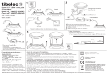 tibelec 2 1 230V OFF Spot LED 3,5W extra plat à encastrer Rond réf. 306010-306040 Carré réf. 306110-306140 Rond borniers de connexion (non fournis) Carré phase (fil marron) VIM : 20980_19W48 Votre produit : neutre (fil bleu) ø75mm ou ø75x75mm Perçez le plafond selon les dimensions ci-dessus 3 transformateur Effectuez les connexions électriques avec 2 borniers de connexion et connectez le spot au transfo. ! ne fonctionne pas avec un variateur Critères d’installation : - respectez les distances indiquées ci-dessous - ne couvrez pas directement le transfo et le spot de laine de verre. + 50mm TRANSFO 50mm Vous aurez besoin de : - une perçeuse - une scie cloche (pour le modèle rond) ou une scie à guichet ou une mèche extensible - deux borniers de connexion Caractéristiques techniques : Modèle MBD-3W • Alimentation par transformateur 220-240V ~, 50/60Hz • LED 3,5W, blanc chaud 3000°K, durée +/- 25000h. 150 lumens (rond) - 110 lumens (carré) • Rond : ø85mm, épaisseur 10mm Carré : 85x85mm Notre service SAV est à votre disposition pour conseils et assistance, vous pouvez nous écrire à [email protected]. Toutes les notices de nos produits sont téléchargeables depuis notre site www.tibelec.fr Importé par Tibelec - 996 rue des Hauts de Sainghin - CRT4 - 59262 Sainghin en mélantois ON Avant de commencer l'installation... - AVANT INSTALLATION OU TOUTE INTERVENTION ULTERIEURE SUR L'APPAREIL, COUPEZ L’ALIMENTATION AU RESEAU PAR LE DISJONCTEUR OU AU TABLEAU DE FUSIBLES AFIN D'EVITER TOUT CHOC ELECTRIQUE. - IL CONVIENT DE SURVEILLER LES ENFANTS POUR S'ASSURER QU'ILS NE JOUENT PAS AVEC L'APPAREIL. - Cet appareil n'est pas prévu pour être utilisé par des personnes (y compris les enfants) dont les capacités physiques, sensorielles ou mentales sont réduites, ou des personnes dénuées d'expérience ou de connaissance, sauf si elles ont pu bénéficier, par l'intermédiaire d'une personne responsable de leur sécurité, d'une surveillance ou d'instructions préalables concernant l'utilisation de l'appareil. - N'utilisez que le transformateur fourni. En cas d'endommagement d'un des composants, s'adressez uniquement au revendeur ou à Tibelec pour un remplacement afin d'éviter tout danger. - Si le câble extérieur souple de ce projecteur est endommagé, il doit être remplacé exclusivement par le fabricant, son service de maintenance ou tout autre personne de qualification équivalente, cela afin d'éviter tout risque. - Si vous avez des doutes ou des problèmes, consultez un électricien. Classe II, double isolation, dispensé de raccord à la terre Utilisation à l'intérieur uniquement Certifié conforme aux normes européennes Les produits électriques usagés ne doivent pas être jetés avec les ordures ménagères. Veuillez utiliser les aménagements spécifiques prévus pour les traiter. Renseignez-vous auprés des autorités locales ou du revendeur pour obtenir la marche à suivre en matière de recyclage Garantie : Cf la garantie constructeur fournie dans l’emballage. IMPORTANT: Ces instructions sont pour votre sécurité. Lisez les attentivement avant utilisation et conservez les pour une consultation ultérieure. ">