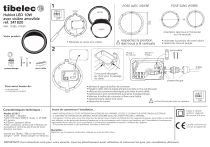 tibelec 1 Hublot LED 10W avec visière amovible réf. 341820 POSE AVEC VISIERE verso cercle OFF ou 139 mm VIM : 15385_17W39 visière orientation des trous à l'horizontal ou à la verticale Votre produit : • Déclipsez le cercle et la visière 2 x4 POSE SANS VISIERE ! respectez la position des trous à la verticale Phase = fil marron Neutre = fil bleu • choisissez la position de votre hublot • repérez les trous et perçez serre-câble x2 presse-étoupe 230V serre-câble 2 trous pré-découpés au choix pour le passage du câble Vous aurez besoin de : • dévissez le capot du boîtier de connexion • Passez le câble dans le presse-étoupe puis dans le trou pré-découpé • effectuez les connexions électriques puis vissez le serre-câble, • positionnez le joint correctement puis serrez le presse-étoupe • refermez le boîtier de connexion et fixez votre hublot • repositionnez la visière et le cercle • rebranchez le courant ! ne fonctionne pas avec un variateur - une perçeuse - un tournevis cruciform Caractéristiques techniques : Modèle 621013 • 220-240V ~, 50/60Hz • LED 11W, blanc 4000°K, durée +/- 25 000h. 615 lumens. • ø150mm, épaisseur 65mm • IP65 : protection contre toute infiltration de poussières et contre les jets d'eau de toute direction à la lance Importé par Tibelec - 996 rue des Hauts de Sainghin - CRT4 - 59262 Sainghin en mélantois presse-étoupe Avant de commencer l'installation... - AVANT INSTALLATION OU TOUTE INTERVENTION ULTERIEURE SUR L'APPAREIL, COUPEZ LE COURANT SUR VOTRE TABLEAU ELECTRIQUE . - IL CONVIENT DE SURVEILLER LES ENFANTS POUR S'ASSURER QU'ILS NE JOUENT PAS AVEC L'APPAREIL. - Cet appareil n'est pas prévu pour être utilisé par des personnes (y compris les enfants) dont les capacités physiques, sensorielles ou mentales sont réduites, ou des personnes dénuées d'expérience ou de connaissance, sauf si elles ont pu bénéficier, par l'intermédiaire d'une personne responsable de leur sécurité, d'une surveillance ou d'instructions préalables concernant l'utilisation de l'appareil. - Si vous avez des doutes ou des problèmes, consultez un électricien. Garantie : Reportez vous à la garantie constructeur indiquée au verso de cette notice. IMPORTANT: Ces instructions sont pour votre sécurité. Lisez les attentivement avant utilisation et conservez les pour une consultation ultérieure. ON Classe II, double isolation, dispensé de raccord à la terre Certifié conforme aux normes européennes ">