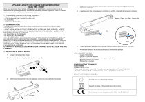 APPLIQUE LINOLITE PRE-CABLEE AVEC INTERRUPTEUR tibelec REF. 319830 4. Nous vous remercions d'avoir acheté cette applique qui a fait l'objet de tous nos soins lors de sa fabrication et du contrôle qualité pour vous donner satisfaction pendant longtemps. Avant de l’installer, nous vous conseillons de lire attentivement cette notice. Dégainez l’extrémité du câble d’alimentation (venant du mur) sur une longueur de 3cm et l’introduire à l’intérieur 5. L’applique peut être connectée avec un domino ou un DCL (dispositif de connexion luminaire) 1° L'EMBALLAGE CONTIENT LES PIECES SUIVANTES : - 1 applique pré-câblée avec interrupteur (câble 2m) - 1 Tube linolite 60W 230V 25x284 mm culots S15 - Vis et chevilles - 1 Notice pour l'installation 2° RECOMMANDATIONS - SUIVRE AVEC SOIN LES INSTRUCTIONS, LIRE LA NOTICE AVANT TOUT MONTAGE ET CONSERVEZ LA. - AVANT INSTALLATION OU TOUTE INTERVENTION ULTERIEURE SUR L'APPAREIL, COUPEZ L’ALIMENTATION AU RESEAU PAR LE DISJONCTEUR OU AU TABLEAU DE FUSIBLES AFIN D'EVITER TOUT CHOC ELECTRIQUE - NE PAS POSER A L’EXTERIEUR - NE PAS POSER AU PLAFOND - CET APPAREIL N'EST PAS PREVU POUR ETRE UTILISE PAR DES PERSONNES (Y COMPRIS LES ENFANTS) DONT LES CAPACITES PHYSIQUES, SENSORIELLES OU MENTALES SONT REDUITES, OU DES PERSONNES DENUEES D'EXPERIENCE OU DE CONNAISSANCE, SAUF SI ELLES ONT PU BENEFICIER, PAR L'INTERMEDIAIRE D'UNE PERSONNE RESPONSABLE DE LEUR SECURITE, D'UNE SURVEILLANCE OU D'INSTRUCTIONS PREALABLES CONCERNANT L'UTILISATION DE L'APPAREIL. IL CONVIENT DE SURVEILLER LES ENFANTS POUR S'ASSURER QU'ILS NE JOUENT PAS AVEC L'APPAREIL. Marron : Phase «L» / Bleu : Neutre «N» OU DCL 6. Fixez l’applique à l'aide des vis et chevilles fournies (distance entre les 2 vis : 193 mm) 7. Remettre le tube dans les douilles puis replacez l’embout de l’applique 3° INSTALLATION ET MISE EN SERVICE 1. Coupez l’alimentation au réseau 2. Retirez l’embout de l’applique (1) et retirez le tube (2) 4° CHANGEMENT DU TUBE Coupez l’alimentation Retirez l’embout de l’applique Positionnez le nouveau tube dans les ergots des douilles Replacez l’embout de l’applique Rebranchez le courant. 5° SPECIFICATIONS TECHNIQUES modèle E9284S • Tension: 230V ~ 50 Hz. • Tube linolite 60W 230V culots S15 – Tube de rechange disponible en Tibelec Ref.374810 • Degré de protection : IP 20 : Pas de protection contre la pénétration des liquides 6° SIGNIFICATION DES SYMBOLES : 3. Déterminez l’emplacement de votre applique, repérez les trous de fixation et perçez Appareil pour une utilisation à l’intérieur Appareil de classe 2 (dispense de raccord à la terre) Conforme aux normes européennes EN 60598-1 et EN 60598-2-1 193 mm ">