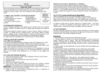 POLKA CARILLON SANS FIL ET AVERTISSEUR MUSICAL tibelec REF. 92403. Nous vous remercions d'avoir acheté ce carillon qui a fait l'objet des meilleurs soins lors de sa fabrication et du contrôle qualité pour vous donner satisfaction longtemps. Avant de l’utiliser, nous vous conseillons de lire attentivement cette notice. OUTILS A 1° L'EMBALLAGE CONTIENT LES PIECES SUIVANTES : PREVOIR : - 1 carillon 2 sons - Vis et chevilles - Un tournevis - 1 bouton poussoir non lumineux - Adhésif double face plat avec porte-étiquette - Cavaliers (dans le - Un tournevis - 1 pile A23 12V pour le bouton compartiment piles carillon) cruciforme poussoir - 1 notice 2° INFORMATIONS GENERALES Aucune installation électrique n’est requise pour le carillon sans fil et le bouton poussoir. Lorsque l’on presse le bouton, un signal radio est transmis au carillon et l‘active. Vous pouvez installer le carillon n’importe ou dans la maison, l’atelier, le bureau ou le jardin. Sa portée est de 50 mètres environ, vous pouvez utiliser le carillon comme récepteur mobile à longue portée ou donner le bouton poussoir à une personne immobilisée pour servir d’avertisseur ou d’avertisseur d’urgence. Le carillon Polka est compatible avec le carillon Bossa réf. Tibelec 923930. 3° INSTALLATION FIXE OU MOBILE A/ LE CARILLON (Récepteur) 1) Ouvrez le compartiment des piles et insérez 3 piles LR14 Alcalines de 1.5 volts (non fournies) en respectant la polarité. Refermez le compartiment des piles. 2) Le carillon peut être transporté avec vous n’importe ou dans votre maison, votre jardin…dans la limite de la portée entre le carillon et le bouton. Il peut être accroché à un mur, sur une vis, grâce au trou à glissière, au dos du carillon, qui permet de le décrocher ou de le raccrocher facilement. Il peut être posé sur une surface plane également, sur un meuble ou une étagère par exemple. B/ LE BOUTON POUSSOIR (Emetteur) 1) Fixez le bouton poussoir à l’aide du trou à glissière en haut au dos du bouton 2) Ouvrez le compartiment à pile 3) Vissez le bouton par le bas grace au trou en bas du bouton 4) Remettez la pile 5) Refermez le compartiment à piles 6) Vous pouvez utiliser l’adhésif double face (fournis) pour installer la façade arrière du bouton poussoir sur le montant de la porte. (voir paragraphe IMPORTANT). Le double face peut éventuellement être coupé en deux et servir à la fois pour le bouton et à la fois pour le carillon. 7) Insérez la pile 12 volts (fournie) à l’emplacement prévu, en respectant la polarité. Le carillon est prêt à l'emploi. Sélection de la sonnerie « Ding-Dong» ou « Mélodie ». Le bouton poussoir peut émettre au choix deux sons différents. Vous trouverez au dos du bouton poussoir des petits contacteurs noirs à 2 broches (Voir dessin page 3) Le bouton poussoir est préréglé sur « Ding-Dong" position 7 : si vous désirez changer le son : il faut insérez un cavalier en position 8. Si vous ne désirez pas changer, il n’est pas nécessaire d’insérer ou de déplacer le cavalier. Second bouton (nous consulter pour la disponibilité) Grâce à la sélection du son, vous pouvez installer un second bouton pour la porte arrière de votre domicile, pour signal d’urgence, par exemple, de façon à ce que chaque bouton puisse jouer un son différent ainsi, vous pourrez différencier le son de la porte avant ou arrière ou celui du signal d’appel d’urgence. 4) Clipsez la partie avant du bouton poussoir sur la façade arrière : il est prêt à l’emploi. Le bouton est alimenté en très basse tension (12V = pas de risque d’électrocution) : il peut donc être posé à l’extérieur comme à l’intérieur. 4° FONCTIONNEMENT Dès que vous aurez appuyé sur le bouton poussoir (émetteur), le voyant rouge de ce dernier s’allumera durant la transmission du signal (pour indiquer que l’émetteur fonctionne bien ) et le carillon (récepteur) sonnera. IMPORTANT 1 - Ne pas exposer le bouton poussoir directement à la pluie. 2 - Ne pas exposer le carillon à de hautes températures ou près de source de chaleur. Utilisez et fixez le carillon dans des environnements à température normale. Les différences de température peuvent raccourcir la durée de vie des dispositifs électroniques, abîmer les piles et tordre ou faire fondre les pièces en plastique. 3 - Ne pas utiliser des piles différentes et ne pas mélanger des piles usagées avec des piles neuves. 4 - Ne pas laisser les piles se décharger. Si vous n’utilisez pas votre carillon pendant un long moment, pensez à enlever les piles pour éviter les fuites et qu’elles ne se déchargent. Utiliser seulement des batteries neuves de la taille et du type recommandé. Enlever toujours les batteries vieilles ou faibles, en cas de non utilisation, car elles peuvent fuir et les composants chimiques peuvent détruire les circuits électroniques. 5 - Poser le carillon au sec, à l'abri de l'eau. Si le carillon devenait humide, essuyez-le immédiatement. L'humidité pourrait corroder les circuits électroniques 6 - Manipuler le carillon doucement et soigneusement. La chute pourrait endommager les circuits imprimés. 7 - Nettoyer le carillon de la poussière et la saleté qui pourraient causer une usure prématurée des pièces 8 - Essuyer le carillon avec un tissu humide de temps en temps. Ne pas employer de produit chimique, des dissolvants ou du détergent. 9 - La modification et la manipulation des composants internes du carillon peuvent causer un défaut de fonctionnement et pourraient annuler la garantie. 5° PROBLEMES ET SOLUTIONS Que faire si le carillon ne sonne pas ou sonne mal ? - Vérifiez l’état d’usure des piles et changez-les éventuellement. Utilisez des piles alcalines (durée plus longue : la durée est directement liée à la fréquence d’utilisation de l’appareil (durée des piles : environ 1 an et demi) - Vérifiez la portée en rapprochant l’émetteur et
