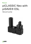piCLASSIC Neo with piSAVE® ESL Vacuum pump Ce manuel est disponible dans les langues suivantes sur piab.com Le manuel original est rédigé en anglais. English Français Deutsch Italiano Polski Português (Brasil) Русский Español Svenska Copyright © 2025 Piab AB Spécifications sous réserve de modification sans préavis. Table des matières 1. Présentation du manuel ................................................................................................................. 4 1.1. À propos de ce manuel ......................................................................................................... 4 1.2. Symboles de sécurité utilisés dans le manuel ....................................................................... 4 1.2.1. Symboles d’avertissement ......................................................................................... 4 1.2.2. Symboles obligatoires ................................................................................................ 4 1.3. Groupe cible ......................................................................................................................... 5 1.4. Conditions du test ................................................................................................................ 5 2. Consignes de sécurité ................................................................................................................... 6 2.1. Avertissement ...................................................................................................................... 6 2.2. Sécurité générale ................................................................................................................. 6 2.3. Utilisation sécurisée ............................................................................................................. 6 2.3.1. Installation ................................................................................................................. 7 2.3.2. Maintenance .............................................................................................................. 7 2.4. Usage prévu ......................................................................................................................... 7 2.5. Utilisation inadaptée ............................................................................................................ 7 3. Introduction à la piCLASSIC Neo with piSAVE® ESL .................................................................... 9 3.1. Fabricant .............................................................................................................................. 9 3.2. Étiquette d’identification ..................................................................................................... 9 3.3. Aperçu du produit .............................................................................................................. 10 4. Installation ................................................................................................................................... 12 4.1. Installation mécanique ....................................................................................................... 12 4.2. Installation pneumatique .................................................................................................... 13 4.2.1. Caractéristiques pneumatiques ............................................................................... 13 4.2.2. Schémas pneumatiques .......................................................................................... 14 5. Fonctionnement ........................................................................................................................... 15 6. Maintenance ................................................................................................................................. 16 6.1. Inspection ........................................................................................................................... 16 6.2. Extraction et insertion d’un éjecteur ................................................................................. 17 6.3. Nettoyage .......................................................................................................................... 18 6.4. Pièces de rechange ............................................................................................................ 20 6.5. Remplacement du filtre ...................................................................................................... 22 6.6. Dépannage ......................................................................................................................... 23 6.7. Accessoires ......................................................................................................................... 25 7. Caractéristiques techniques ........................................................................................................ 27 7.1. Généralités .......................................................................................................................... 27 7.2. Fonctionnement .................................................................................................................. 27 8. Dimensions ................................................................................................................................... 28 9. Garantie ........................................................................................................................................ 30 10. Recyclage et élimination ............................................................................................................ 31 10.1. Démontage ....................................................................................................................... 31 piCLASSIC Neo with piSAVE® ESL Page 3 sur 32 Présentation du manuel 1. Présentation du manuel 1.1. À pr
