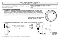 TIMY 1 - PROGRAMMATEUR JOURNALIER tibelec REF. 560100 (blanc) - 560120 (noir) Nous vous remercions d'avoir acheté ce programmateur qui a fait l'objet de L'EMBALLAGE CONTIENT LES PIECES SUIVANTES : nos meilleurs soins lors de sa fabrication et du contrôle qualité pour vous - Programmateur journalier donner satisfaction pendant longtemps. Nous vous conseillons de lire cette - Notice notice avant d’utiliser le produit. 1° FONCTIONNEMENT DU PROGRAMMATEUR Pour programmer l’heure et la durée du fonctionnement de votre programmateur (ex : une cafetière devant s’allumer de 6h à 7h), appuyez sur les cavaliers correspondant à cette plage horaire (à l’aide d’une pointe de stylo si nécessaire). On peut programmer plusieurs plages horaires à la fois ou modifier la programmation en remontant ou en baissant les cavaliers. Un tour complet équivaut à 24 heures, par tranche de 15 minutes. Mettez votre programmateur à l’heure en positionnant en face du triangle noir, le chiffre du cadran du programmateur correspondant à l’heure de votre montre (tournez le cadran dans le sens de la fléche). PLACEZ LA FLECHE FACE A L’HEURE DE VOTRE MONTRE. Ex : 15H - Enfichez le programmateur dans une prise de courant, branchez l’appareil à commander (ex : une cafetière) Voyant de fonctionnement Interrupteur 2 positions sur le côté : § Marche forcée : interrupteur en haut § Marche « programmée » : interrupteur en bas Positionnez l’interrupteur sur « on » Une fois programmé, le cycle de programmation se renouvellera tous les jours. IMPORTANT : L'interrupteur en position marche forcée permet une utilisation manuelle de l'appareil électrique sans pour autant annuler les programmes. 4° CARACTERISTIQUES TECHNIQUES - Modèle n°TF-1, TS-MF1 - Intervalle minimum entre 2 programmations : 15 minutes - Utilisation à l'intérieur uniquement - Puissance maximum : 3500 WATTS - 16(2)A µ - Tension : 220/230V ∼ 50 Hz. - Classe I : Fiche pour appareil nécessitant une mise à la terre Importé par Tibelec – 996 rue des hauts de Sainghin CRT4 – 59262 SAINGHIN-EN-MELANTOIS Appareil pour une utilisation à l’intérieur Appareil de classe I (devant être raccordé à la terre) Conforme aux normes européennes EN 60598-1 et EN 60598-2-1 DEEE (Déchets d’Equipement Electriques et Electroniques) : les produits électriques usagés ne doivent pas être jetés avec les ordures ménagères. Veuillez utilisez les aménagements spécifiques prévus pour les traiter. Renseignez-vous auprès des autorités locales ou du revendeur pour obtenir la marche à suivre en matière de recyclage. BIEN QUE TIBELEC GARANTISSE LA QUALITE ET LA FIABILITE DES COMPOSANTS DE CE PRODUIT ; IL NE FAIT PAS PARTIE DES ARTICLES SOUS GARANTIE EXCEPTE LA GARANTIE LEGALE D’UNE DUREE DE 2 ANS POUR DEFAUTS ET VICES CACHES CONFORMEMENT AUX ARTICLES 1641 A 1648 DU CODE CIVIL. NOTRE SERVICE SAV EST A VOTRE DISPOSITION POUR CONSEILS ET ASSISTANCE, VOUS POUVEZ NOUS ECRIRE à [email protected]. Tibelec ne pourra pas être tenu responsable des dommages causés suite à une mauvaise utilisation, mauvais entretien, un détournement de l’utilisation de ce produit, l’usure normale, bris par chute, ouverture de l’appareil. Tibelec ne pourra pas accepter en retour les produits pour remplacement des consommables (lampes, transfo., verre) nécessaires à l’utilisation de ce produit. Le remplacement des consommables est à votre charge. MAJ 10/2015 ">