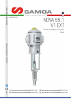 ED. 12 - 09/2024 Manuale Cod. 150152 FR www.larius.com NOVA 55:1 V1 EXT MANUEL D'INSTRUCTIONS Pompe pneumatique a’ extrusion Airless IT https://www.larius.com/wp-content/uploads/NOVA_55_V1_I.pdf FR https://www.larius.com/wp-content/uploads/NOVA_55_V1_F.pdf EN https://www.larius.com/wp-content/uploads/NOVA_55_V1_UK.pdf DE https://www.larius.com/wp-content/uploads/NOVA_55_V1_D.pdf Ce manuel doit être considéré comme une traduction en français du manuel original rédigé en langue italienne. Le constructeur décline toute responsabilité dérivant d’une traduction erronée des instructions contenues dans le manuel en italien. Le fabricant se réserve la possibilité de modifier les caractéristiques et les données du présent manuel à tout moment et sans en donner préavis. NOVA 55:1 V1 EXT FR NOVA 55:1 V1EXT Pompe pneumatique a’ extrusion airless INDICE A AVERTISSEMENTS.......................................................................................................................................................2 B PRINCIPE DE FONCTIONNEMENT..............................................................................................................................3 C DONNEES TECHNIQUES..............................................................................................................................................4 D DESCRIPTION DE L’APPAREILLAGE...........................................................................................................................5 E TRANSPORT ET DEBALLAGE......................................................................................................................................6 F CONDITIONS DE GARANTIE........................................................................................................................................6 G CONSIGNES DE SECURITÉ.........................................................................................................................................6 H INSTALLATION TYPIQUE..............................................................................................................................................8 I MISE AU POINT............................................................................................................................................................8 J FONCTIONNEMENT.....................................................................................................................................................8 K NETTOYAGE A LA FIN DE L’UTILISATION....................................................................................................................9 L ENTRETIEN ORDINAIRE...............................................................................................................................................9 M MANOMALIES ET SOLUTIONS..................................................................................................................................10 N DÉMONTAGE DU MOTEUR PNEUMATIQUE..............................................................................................................11 O DÉMONTAGE DE L’UNITÉ DE POMPAGE..................................................................................................................16 P VUE ÉCLATÉE DE L’UNITÉ DE POMPAGE.................................................................................................................18 Q VUE ÉCLATÉE DE L’UNITÉ MOTEUR.........................................................................................................................20 R CERTIFICAT ATEX.......................................................................................................................................................22 DÉCLARATION DE CONFORMITÉ..............................................................................................................................25 CET APPAREIL EST À USAGE STRICTEMENT PROFESSIONNEL IL N’EST PAS PRÉVU UNE AUTRE UTILISATION QUE CELLE DÉCRITE DANS CE MANUEL. Merci d’avoir choisi un produit SAMOA. en même temps que l’article acheté vous recevrez une gamme de services d’assistance dont le but est de vous permettre d’atteindre les résultats souhaités, de façon rapide et professionnelle. ED. 12 - 09/2024 - Cod. 150152 1 FR NOVA 55:1 V1 EXT A AVERTISSEMENTS Le tableau ci-dessous présente la signification des symboles que l’on trouve dans ce manuel, relatifs à l’utilisation, la mise à la terre, les opérations d’utilisation, d’entretien et de réparation de cet appareil. • Lire ce manuel avec attention avant d’utiliser l’appareil. • Une utilisation impropre peut provoquer des dommages aux personnes ou aux biens. • Ne pas utiliser la machine si on est sous l’effet de la drogue ou de l’alcool. • Ne modifier pour aucune raison que ce soit l’appareil. • Utiliser des produits et des solvants compatibles avec les différentes parties de l’appareil, en lisant attentivement les consignes du producteur. • Consulter les Données Techniques de l’appareil présentes dans le Manuel. • Contrôler l’appareil tous les jours, s’il y a des parties abîmées les remplacer en utilisant EXCLUSIVEMENT des pièces détachées originales. • Tenir les enfants et animaux à l’écart du site de travail. • Respecter toutes les consignes de sécurité. • Indique un risque d’accident ou de dommage important pour l’appareil si l’avertissement n’est pas respecté. FEU ET DANGER D’EXPLOSION • Les vapeurs inflammables, telles que les vapeurs de solvant et de peinture, peuvent prendre feu ou exploser. • Afin de prévenir les dangers d’incendie ou d’explosion: - Utiliser l’équipement SEULEMENT dans une pièce bien ventilée. Veiller à ce que la zone de travail ne soit pas encombrée de matériel de rebut. - Eliminer toutes les sources inflammables ; comme les flammes pilotes, les cigarettes, les torches éle