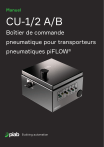 Manuel CU-1/2 A/B Boîtier de commande ­pneumatique pour transporteurs ­pneumatiques piFLOW® Réf 0232670, Rév. 07, GB, 2020-12 Consignes originales Ce manuel est disponible dans les langues suivantes sur piab.com : Chinois Anglais Français Allemand Italien Japonais Coréen Polonais Portugais Russe Espagnol Suédois Sommaire 1. Présentation du manuel �������������������� 4 1.1 Historique des révisions��������������������������4 1.2 À propos de ce manuel����������������������������4 1.3 Symboles de sécurité utilisés dans le manuel������������������������������������������������������������������4 1.3.1 Symboles d’avertissement �������������������������������4 1.3.2 Symboles obligatoires���������������������������������������4 1.4 Groupe cible����������������������������������������������4 2. Consignes de sécurité������������������������ 5 2.1 Sécurité générale�������������������������������������� 5 2.2 Installation sécurisée�������������������������������� 5 2.3 Utilisation sécurisée �������������������������������� 5 3. Présentation du CU-1/2 A/B�������������� 6 3.1 Fabricant���������������������������������������������������� 6 3.2 Utilisation prévue�������������������������������������� 6 3.3 Utilisation inadaptée�������������������������������� 6 4. Vue d’ensemble������������������������������������ 7 5. Caractéristiques techniques�������������� 9 6. Dimensions ���������������������������������������� 10 7. Raccordements���������������������������������� 12 7.1 Disposition des composants et schéma pneumatique ���������������������������������������������������� 13 8. Installation������������������������������������������ 21 8.1 Montage du CU-1/2 A/B ������������������������ 21 8.2 Air comprimé�������������������������������������������� 21 8.3 Position de l’opérateur �������������������������� 21 9. Résolution des problèmes���������������� 22 10. Entretien et maintenance ���������������� 23 11. Pièces détachées������������������������������ 24 Manuel CU-1A/1B/2A/2B Page 3/32 Présentation du manuel 1. Présentation du manuel 1.1 Historique des révisions Mai 2022 Rév. 01 1.3 Symboles de sécurité utilisés dans le manuel Première version Prenez note de tous les symboles Avertissement, Obligatoire et autres de ce manuel. Ils ont la signification suivante : 1.2 À propos de ce manuel Le responsable du site de production doit s’assurer que ce manuel est lu et compris. 1.3.1 Symboles d’avertissement Avertissement ! La violation de ces informations peut entraîner la mort ou des blessures graves ! La section sur la sécurité doit être étudiée très attentivement. Ce manuel doit être rangé dans un endroit connu et facilement accessible, le format numérique est possible. Attention ! La violation de ces informations peut entraîner moins de blessures ou de dommages à la machine ! Le produit ou l’équipement doit être accompagné d’un manuel imprimé si son emplacement est modifié. Lors de la reconstruction ou de la restructuration, une nouvelle analyse des risques est requise. Dispositif sensible à l’électricité ­statique L’électronique est sensible aux décharges électrostatiques, le changement de pièces détachées doit être effectué dans une zone protégée contre les décharges électrostatiques. Tous les types de modifications doivent être approuvés par le propriétaire de la machine. Étudiez attentivement les parties applicables du manuel avant de procéder à l’entretien et à la maintenance de l’équipement. 1.3.2 Symboles obligatoires Remarque ! Ces informations nécessitent une attention particulière ! 1.4 Groupe cible Ce manuel, en particulier la section sur la sécurité, doit être lu par tout le personnel qui effectuera tout type de tâche à l’aide de ce produit ou équipement : • Le personnel d’exploitation • Le personnel d’entretien et de maintenance • Le personnel de nettoyage (nettoyage de l’équipement et de la zone avoisinante). Page 4/32 CU-1A/1B/2A/2B Manuel Consignes de sécurité 2. Consignes de sécurité 2.3 Utilisation sécurisée 2.1 Sécurité générale Les éléments suivants doivent être respectés pour garantir une