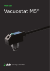 Manuel Vacuostat M5 ® Sommaire 1. Présentation du manuel . . . 3 4. Installation . . . . . . . . . . . . . . 10 1.1 À propos de ce manuel . . . . . . . 3 4.1 1.2 Symboles de sécurité . . . . . . . . 3 4.2 Installation pneumatique . . . . 10 1.3 Groupe cible . . . . . . . . . . . . . . . . 3 4.3 Raccordement électrique . . . . 10 Déballage . . . . . . . . . . . . . . . . . 10 2. Consignes de sécurité . . . . . 4 5. Utilisation . . . . . . . . . . . . . . . 11 2.1 Sécurité générale . . . . . . . . . . . 4 2.2 Utilisation sécurisée . . . . . . . . . 4 5.1 Schémas de sortie du ­commutateur . . . . . . . . . . . . . . . . . . . 11 3. Présentation du vacuostat M5 . 6 6. Entretien et maintenance . 11 3.1 Fabricant . . . . . . . . . . . . . . . . . . . 6 3.2 Caractéristiques techniques . . 7 3.3 Dimensions extérieures . . . . . . 8 3.4 Circuits internes . . . . . . . . . . . . 8 3.5 Conformité . . . . . . . . . . . . . . . . . 9 3.6 Usage prévu . . . . . . . . . . . . . . . . 9 3.7 Utilisation inadaptée . . . . . . . . . 9 7. Garantie . . . . . . . . . . . . . . . . 11 8. Recyclage et élimination . . 12 Ce manuel est disponible dans les langues suivantes sur piab.com : CHINOIS ITALIEN PORTUGAIS ANGLAIS JAPONAIS RUSSE FRANÇAIS CORÉEN ESPAGNOL ALLEMAND POLONAIS SUÉDOIS Manuel Vacuostat M5 Page 2/16 1. Présentation du manuel Avertissement ! Débit d’aspiration 1.1 À propos de ce manuel Avertissement ! Échappement Ce manuel est disponible en téléchargement sur piab.com dans les 12 langues indiquées à la page 2. Les instructions originales ont été rédigées en anglais. Avertissement ! Échappement sans restriction • Le responsable du site de production doit s’assurer que ce manuel est lu et compris. • La section sur la sécurité doit être étudiée très attentivement. • Rangez ce manuel dans un endroit 1.2.2 Symboles obligatoires connu et facilement accessible, le format numérique est possible. Remarque ! Ces informations nécessitent une attention particulière ! • Étudiez attentivement les parties applicables du manuel avant de procéder à l’entretien et à la maintenance de l’équipement. Portez une protection oculaire 1.2 Symboles de sécurité Prenez note de tous les symboles d’avertissement, obligatoires et autres symboles de ce manuel. Ils ont la signification suivante dans ce manuel : Portez une protection auditive 1.2.1 Symboles d’avertissement Avertissement ! La violation de ces informations peut entraîner la mort ou des blessures graves ! Attention ! La violation de ces informations peut entraîner moins de blessures ou de dommages à la machine ! 1.3 Groupe cible Ce manuel, en particulier la section sur la sécurité, doit être lu par tout le personnel qui effectuera tout type de tâche à l’aide de ce produit ou à proximité de ce dernier, y compris : • Le personnel d’exploitation. • Le personnel d’entretien et de maintenance. • Le personnel de nettoyage (nettoyage de l’équipement et de la zone avoisinante). Manuel Vacuostat M5 Page 3/16 2. Consignes de sécurité Le produit est destiné à être incorporé dans une machine ou à être assemblé avec d’autres machines pour constituer une machine couverte par la directive 2006/42/ CE, telle que modifiée. La mise en service du produit n’est pas autorisée tant que la machine dans laquelle il doit être incorporé ou dont il est l’un des composants n’a pas été trouvée et déclarée conforme aux dispositions de la directive 2006/42/EC et aux transpositions de la législation nationale, c’est-à-dire dans leur ensemble, incluant les machines mentionnées dans la présente déclaration. 2.1 Sécurité générale émanations, etc. sont aspirées, celles-ci seront mélangées avec l’air de décharge du générateur de vide et expulsées par le conduit de décharge ; utiliser des filtres à air appropriés et approuvés pour éviter d’éventuelles intoxications. Assurez-vous que les composants sont correctement fixés ; vérifiez régulièrement que les raccordements sont en bon état de fonctionnement, car des cycles ou des vibrations élevés peuvent entraîner leur desserrage. 2.2 Utilisation sécurisée Le produit décrit dans ce manuel est conçu pour être mis en œuvre dans des systèmes industriels ; par conséquent, il ne doit pas être utilisé dans des conditions différentes de celles spécifiées dans ce manuel. Avertissement ! Avertissement ! Débit d’aspiration • Ne pas utiliser de pression d’air comprimé ou de tension électrique en dehors des spécifications en raison du risque d’objets éjectés et/ ou d’endommagement du produit et/ou de défaillance de l’application. Avertissement ! Échappement • Ne pas installer ou faire Avertissement ! Échappement sans restriction L’utilisation correcte d’un équipement pneumatique dans un système relève de la responsabilité du concepteur du système ou de la personne qui détermine ses spécifications techniques. Il est recommandé d’utiliser des dispositifs de protection pour minimiser le risque de blessure des personnes ; prêtez une attention particulière au fait que l’air comprimé peut provoquer l’explosion des conteneurs fermés et que le vide peut entraîner l’implosion des conteneurs fermés. Si, contrairement aux indications, des poussières, des vapeurs d’huile, des Manuel Vacuostat M5 fonctionner votre produit s’il a été endommagé lors du transport, d’une intervention ou d’une utilisation. Un produit endommagé peut entraîner une explosion et provoquer des dommages corporels ou matériels. • Lors de la manipulation du produit, veiller à prendre le corps et à ne pas appliquer une force excessive sur le câble. • Le produit est non étanche aux gouttes et à la poussière. Ne pas l’utiliser dans des conditions où de l’eau ou de l’huile coule, de la poussière monte ou de la corrosion se produit ! Page 4/16 Avertissement ! Portez