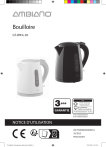 Bouilloire GT-WK1L-03 3 ans GARANTIE SAV 01 40 / 82 92 26 (Appel gratuit) gt-support@ zeitlos-vertrieb.de AN: FR2006050206254 35/2025 GTIN: 4068706568510 GTIN: 4068706568527 NOTICE D‘UTILISATION AN: FR2006050206254 35/2025 PO51033107 Druckbuch Wasserkocher Mini-Serie FR.indb 1 21.02.2025 10:12:52 Table des matières Sécurité....................................................................................................................................2 Lire et conserver la notice d‘utilisation.................................................................2 Explication des symboles...........................................................................................3 Utilisation conforme à l‘usage prévu.....................................................................3 Consignes de sécurité.................................................................................................4 Contenu ..................................................................................................................................6 Vue détaillée..........................................................................................................................7 Avant la première utilisation............................................................................................8 Fonctionnement...................................................................................................................8 Faire bouillir de l’eau....................................................................................................8 Protection contre le fonctionnement à vide..............................................................9 Nettoyage et détartrage................................................................................................. 10 Nettoyage..................................................................................................................... 10 Détartrage.....................................................................................................................11 Rangement...........................................................................................................................11 Dépannage...........................................................................................................................12 Caractéristiques techniques...........................................................................................12 Déclaration de conformité..............................................................................................13 Recyclage..............................................................................................................................13 Carte de garantie ...............................................................................................................15 Sécurité Lire et conserver la notice d‘utilisation Lisez les instructions suivantes avec attention et conservez la notice afin de pouvoir la relire ultérieurement si nécessaire. Joignez la notice d‘utilisation si vous remettez det appareil à une autre personne. 2 Druckbuch Wasserkocher Mini-Serie FR.indb 2 21.02.2025 10:12:53 Explication des symboles Les symboles et termes de signalisation suivants sont utilisés dans cette notice d’utilisation, sur l´appareil ou l’emballage. AVERTISSEMENT ! Ce symbole/mot signalétique désigne un risque à un degré moyen qui, si on ne l’évite pas, peut avoir comme conséquence la mort ou une grave blessure. ATTENTION ! Ce symbole/mot signalétique désigne un risque à degré réduit qui, si on ne l’évite pas, peut avoir comme conséquence une blessure moindre ou moyenne. REMARQUE ! Ce mot signalétique avertit de possibles dommages matériels. Ce symbole vous donne des informations complémentaires sur l’utilisation. Déclaration de conformité : Les produits marqués par ce symbole répondent à toutes les consignes communautaires de l’Espace économique européen. Utilisation conforme à l‘usage prévu Cette bouilloire est exclusivement conçue pour chauffer et faire bouillir de l’eau. La bouilloire ne doit pas être utilisée pour chauffer de l’eau gazeuse, du lait ou d’autres liquides l’appareil pourrait être endommagé. Cette bouilloire est exclusivement destinée à un usage privé et ne peut être utilisée : − dans les cuisines de restaurants d’entreprises, les magasins ou locaux commerciaux, − dans les exploitations agricoles, − par les clients d’hôtels, de motels et d’autres lieux de résidence similaires, − dans les chambres d’hôtes. Toute utilisation non conforme du produit peut provoquer des blessures et notamment des brûlures. Résidus de production ! Des résidus de production impropres à la consommation peuvent être présents sur ou dans tous les composants de cet article. Les composants susceptibles d’être en contact avec des aliments, doivent être inspectés avec la première utilisation et nettoyés soigneusement. Sécurité contrôlée : Les produits marqués de ce symbole correspondent aux exigences de la loi allemande sur la sécurité des produits (ProdSG). ~ Tension alternative 3 Druckbuch Wasserkocher Mini-Serie FR.indb 3 21.02.2025 10:12:53 Consignes de sécurité AVERTISSEMENT ! Risque d’électrocution ! Une installation électrique défectueuse, une tension de réseau trop élevée et une manipulation inappropriée d’un appareil électrique peuvent provoquer des chocs électriques. Ne pas plonger le réservoir d’eau, le socle et le cordon d’alimentation dans l’eau ou dans d’autres liquides. Risque d’électrocution ! Ne pas utiliser la bouilloire à proximité de sources d’humidité, par ex. d’un évier. Le socle ainsi que les éléments électriques de la partie inférieure de la bouilloire ne doivent pas entrer en contact avec de l’eau. Placez la bouilloire et le socle de manière à ce qu’aucun liquide ne puisse déborder sur le co