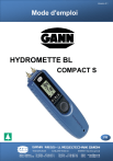 Version 2.1 Mode d'emploi Mode d'emploi HYDROMETTE BL COMPACT S FR Hydromette BL Compact S 1 Table des matières 0.1 Déclaration de conformité ................................................. 4 0.2 Déclaration de publication ................................................ 5 0.3 Directive relative aux déchets d'équipements électriques et électroniques 2002/96/CE (abréviation anglaise WEEE) ......................................................................................... 5 0.4 Consignes de sécurité ...................................................... 6 1 Introduction .......................................................................... 8 1.1 Description........................................................................ 8 1.2 Construction de l'appareil et affectation des touches........ 9 1.3 Symboles affichés .......................................................... 10 2 Fonctions élémentaires ..................................................... 11 2.1 Mise en circuit de l'appareil ............................................ 11 2.2 Affichage en mode de mesure ........................................ 12 2.3 Menus de réglage ........................................................... 12 2.4 2 2.3.1 Menu de mesure (menu principal) : .................... 13 2.3.2 Réglage de la sorte de bois ................................ 16 2.3.3 Affichage de la valeur maximale ......................... 17 2.3.4 Affichage de la valeur minimale .......................... 18 Autres fonctions .............................................................. 19 2.4.1 Mise hors circuit automatique ............................. 19 2.4.2 Surveillance de pile ............................................ 19 2.4.3 Remplacement des électrodes ........................... 19 Hydromette BL Compact 3 Spécifications..................................................................... 20 3.1 Caractéristiques techniques ........................................... 20 3.2 Conditions ambiantes inadmissibles ............................... 20 3.3 Plages de mesure........................................................... 21 4 Remarques relatives à l'utilisation ................................... 21 4.1 4.2 5 Remarques générales .................................................... 21 4.1.1 Définition de l'humidité du bois (u) ...................... 21 4.1.2 Définition de la teneur en eau (w) ....................... 22 4.1.3 Pouvoir calorifique .............................................. 22 4.1.4 Tableau de conversion ....................................... 22 Remarques relatives à la mesure de l'humidité du bois .. 23 Annexe ................................................................................ 24 5.1 Réglage des sortes ......................................................... 24 5.2 Tableau des essences/sortes de bois pour le Compact S .. ....................................................................................... 25 5.3 Graphique de comparaison Humidité de l'air - Humidité du matériau.......................................................................... 26 Bref mode d'emploi graphique au milieu Hydromette BL Compact S 3 Introduction 0.1 Déclaration de conformité Dans le sens de la compatibilité électromagnétique : directive 89/336CEE dans la version 93/31/CEE relative à l'appareil de mesure : GANN HYDROMETTE BL COMPACT S Nous déclarons par cette présente que l'appareil de mesure mentionné ci-avant, dans la version commercialisée par nos soins, est conforme à la disposition susmentionnée du fait de sa conception et de son type de construction. Toute modification de l'appareil effectuée sans notre accord rendra cette déclaration caduque. Voici les normes électromagnétique : de base spécifiant la compatibilité Résistance au brouillage : EN 61326-1:2006-05 ; DIN EN 61326-1:2006-10 ; ESD. EN 61000-4-2: 1995 +A1:1998+A2:2001 Champs électromagnétiques : Perturbation parasite : EN 61000-4-3: 2006-12 EN 61326-1:2006 – 05 ; DIN EN 61326 – 1: 2006-10 Intensité du champ parasite électromagnétique : 30 MHz – 16 GHz EN 55011: 1998 + A1: 1999 + A2: 2002 4 Hydromette BL Compact S Introduction 0.2 Déclaration de publication Cette publication remplace toutes les anciennes versions parues jusqu'ici. Il est interdit de la reproduire - d'une manière quelconque - sans autorisation confirmée par écrit de la société Gann Mess- u. Regeltechnik GmbH ou de la traiter, copier ou diffuser par voie informatique. Sous réserve de modifications techniques et documentaires. Tous droits réservés. Le présent document a été rédigé avec tout le soin imposé. La société Gann Mess- u. Regeltechnik GmbH décline toute responsabilité en cas d'erreurs et d'omissions. GANN Mess- u. Regeltechnik GmbH, Gerlingen, le 07.11.2014 0.3 Directive relative aux déchets d'équipements électriques et électroniques 2002/96/CE (abréviation anglaise WEEE) L'emballage, la pile et l'appareil proprement dit doivent être remis au service de recyclage tel que cela est prescrit par la législation et les directives du pays d'utilisation. L'appareil a été fabriqué après le 01.10.2009 Hydromette BL Compact S 5 Introduction 0.4 Consignes de sécurité Votre appareil de mesure correspond aux standards EN613261:2006-05 et répond aux exigences des directives européennes et nationales en vigueur. Les déclarations et documentations qui s'y rapportent sont disponibles auprès du fabricant. La lecture des instructions de mesure par l'utilisateur s'avère indispensable dans le but d'assurer un fonctionnement conforme de l'appareil de mesure et sa sécurité de service. N'exploitez l'appareil de mesure que dans les conditions climatiques spécifiées. Ces conditions de référence figurent au chapitre 3.1 « Caractéristiques techniques ». Utilisez votre appareil de mesure exclusivement dans les conditions spécifiées et à des fins conformes. Au cas où l'appareil