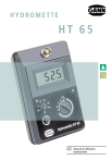 Hydromette HT 65 1 Table des matières 0.1 Déclaration de publication ................................................. 4 0.2 Remarques générales ....................................................... 4 0.3 Directive DEEE 2002/96/CE relative aux déchets d'équipements électriques et électroniques ...................... 6 1 Introduction .......................................................................... 7 1.1 Description......................................................................... 7 1.2 Structure de l'appareil et fonction des touches .................. 8 2 Fonctions de base ............................................................... 9 2.1 Position d'interrupteur ........................................................ 9 2.2 Compensation de température .......................................... 9 2.3 Essences de bois ............................................................ 10 2.4 La mesure des essences non spécifiées ......................... 10 2.5 Branchement des électrodes ........................................... 10 3 Spécifications..................................................................... 11 3.1 Caractéristiques techniques ............................................ 11 3.2 Conditions d'utilisation proscrites .................................... 11 3.3 Plages de mesure............................................................ 12 4 Instructions d'utilisation ................................................... 12 4.1 2 Remarques sur la mesure de l’humidité du bois .............. 12 4.1.1 Introduction .............................................................. 12 4.1.2 Électrode à enfoncer M 20 ....................................... 12 4.1.3 Pastilles de mesure des surfaces M 20-OF 15 ........ 13 Hydromette HT 65 4.1.4 Paire de pointes à enfoncer M 20-HW 200/300 ....... 14 4.1.5 Électrode à percussion M 18 .................................... 14 4.1.6 Étalon de contrôle de l'humidité du bois ................... 15 4.1.7 Charge statique........................................................ 16 4.1.8 Équilibre de l'humidité du bois.................................. 16 Hydromette HT 65 3 0.1 Déclaration de publication Cette publication remplace toutes les versions précédentes. Sans autorisation écrite de l'entreprise Gann Mess- u. Regeltechnik GmbH, toute reproduction sous quelque forme que ce soit ou toute modification, copie ou diffusion au moyen d'un système électronique est interdite. Sous réserve de modifications techniques et documentaires. Tous droits réservés. Le document présent a été élaboré avec le plus grand soin. En cas d'erreur ou d'omission, l'entreprise Gann Mess- u. Regeltechnik GmbH ne saurait être tenue responsable. GANN Mess- u. Regeltechnik GmbH, Gerlingen le 30/08/2017 0.2 Remarques générales Le présent appareil de mesure satisfait aux exigences des directives (2004/108/EC) et des normes (EN61010) européennes et allemandes. Les déclarations et documents correspondants sont consignés chez le fabricant. Pour garantir une utilisation irréprochable et en toute sécurité de l'appareil, l'utilisateur est prié de lire attentivement le manuel d'utilisation. L'appareil de mesure ne doit être utilisé que dans les conditions climatiques indiquées. Ces conditions sont exposées au chapitre 3.1 « Caractéristiques techniques ». De manière générale, cet appareil de mesure ne doit être utilisé que dans les conditions et aux fins prévues par sa fabrication. Si l'appareil subit des modifications ou des transformations, sa fonctionnalité et la sécurité de l'utilisateur ne sont plus garanties. Pour des dommages éventuels résultant d'une mauvaise utilisation de l'appareil, l'entreprise Gann Mess- u. Regeltechnik GmbH décline toute responsabilité. Seul l'utilisateur est responsable des risques encourus. 4 L'appareil ne doit pas être stocké ou utilisé dans un environnement corrosif ou contenant des solvants ! Hydromette HT 65 Charge statique - Une faible humidité de l'air, associée à certaines circonstances extérieures (frottements pendant le transport des matériaux, forte valeur isolante de l'environnement), peut produire de l'électricité statique de tension élevée, pouvant conduire non seulement à de fortes variations de mesure ou des indications négatives, mais aussi à la dégradation de composants électriques à l'intérieur de l'appareil. L'utilisateur de l'appareil lui-même peut, involontairement, contribuer à la production de charge électrostatique avec ses vêtements. L'immobilité complète de l'utilisateur et de l'appareil pendant la mesure ainsi que la mise à la terre (contact avec des métaux conducteurs, une conduite d'eau ou de chauffage, etc.) améliorent grandement les conditions d'utilisation. Des mesures sont impossibles sur le bois gelé. Les indications et les tableaux contenus dans ce manuel concernant les rapports d'humidité autorisés ou habituellement rencontrés, ainsi que les définitions générales des notions sont extraits de documentations spécialisées. C'est pourquoi, le fabricant ne peut être tenu responsable de l'inexactitude éventuelle de ces informations. L'interprétation des résultats de mesure dépend des circonstances particulières et des connaissances que l'utilisateur a acquises au cours de son expérience professionnelle. L'appareil de mesure peut être utilisé dans un environnement domestique et professionnel, car les interférences (CEM) sont strictement limitées au niveau restrictif prévu par la classe B. L'appareil de mesure et les éventuels accessoires fournis ne doivent être utilisés que conformément à l'usage prévu décrit dans le manuel d'utilisation. Les enfants ne doivent pas jouer avec l'appareil ou les accessoires ! Hydromette HT 65 5 Il est déconseillé de mesurer du bois ou d'autres matériaux placés sur un support conducteur. L'entreprise Gann Mess- u. Regeltechnik GmbH ne peut être 