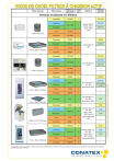 GUIDE DE CHOIX FILTRES À CHARBON ACTIF Référence à partir de 2011 Poids (kg) CDFORG 3 CDFCORG 3 Formol CDFFOR 3 Ammoniac CDFAMM 3 - Organiques ORG50 8 ORG50 Polyvalent(1) CORG51 9 Formol FOR50 8 Ammoniac AMM50 8 - Organiques CDFORG 4 CDF-F20 CDFCORG 4 Formol CDFFOR 4 Ammoniac CDFAMM 4 - Organiques ORG50 8 CDF720 CORG51 9 Formol FOR50 8 Ammoniac AMM50 8 Polyvalent(1) FCR 1 Organiques ORGFC 10 Filtres vapeurs Destinés à Armoires et caissons et à filtration Organiques Corrosives Polyvalent(1) H 150 x Ø 150 (mm) H 70 x L 390 x P 390 (mm) Corrosives Polyvalent(1) H 150 x Ø 150 (mm) Corrosives Polyvalent(1) H 70 x L 390 x P 390 (mm) H 20 x L 390 x P 390 (mm) Corrosives Caisson Série V: CDF-A, CDF-P, CVAT, CMAT, CTAT Caisson Série H : H50 CDF-F35 CDF-F15 CORG51 CDF-F35 Armoires Série 12 : AF10 CDF-F15 CDF735 Armoires Série 12 : AF1, AF2 (avant février 2002) CFR - CFR70 - CFR715 Armoires Série 12 : AF1, AF2 (avant février 2002) FCR - FC20 Armoires Série 12 : AF1, AF2, AF2-2, AF4-2, AF4-3, AF4-4 (avant juillet 2008) H40 FC35 10 Formol FORFC 10 Ammoniac AMMFC 10 - Organiques ORG300 16 FC20 CORG301 15 Formol FOR300 16 Ammoniac AMM300 16 Corrosives Polyvalent(1) H 70 x L 730 x P 380 (mm) CDF-F20 CORGFC Polyvalent(1) H 200 x L 100 x P 400 (mm) Référence avant 2011 Armoires Série 12.X : AF1, AF2, AF2-2, AF4-2, AF4-3, AF4-4 (après juillet 2008) FC15 FC35 FC15 - (1) organiques + corrosives. Les filtres à charbon actif polyvalent CORG permettent d’adsorber la très grande majorité des produits couramment utilisé : acides organiques et inorganiques, composés organiques ou solvants. © TRIONYX se réserve le droit de modifier les caractéristiques techniques sans préavis. Édition 05/2018 Filtres concernés Modèles Filtres concernés H 70 x L 390 x P 390 (mm) H 70 x L 545 x P 380 (mm) Filtres à vapeurs CORG203 FOR203 AMM203 ORG303 13 13 15 Compatible MF3-F Compatible MF3-K Compatible MF4-AS ORG303 CORG303 16 Compatible MF4-BE CORG303 FOR303 16 Compatible MF4-F - Ammoniac AMM303 16 Compatible MF4-K - Polyvalent(1) Organiques Polyvalent(1) Organiques CORG53 ORG53 CORG13 ORG13 7 6 4 3 Compatible F2BE Compatible F2AS Compatible F1BE Compatible F1AS Corrosives Polyvalent(1) Formol Ammoniac Organiques Corrosives Polyvalent(1) Formol Ammoniac Organiques Corrosives Polyvalent(1) Formol H 404 x L 191 x P 50 (mm) 12 12 Compatible MF3-BE Organiques - Ministore 822 - Shelf 812 FOR200 AMM200 ORG300 ORG400 ORG1300 ORG2300 13 Ammoniac H 404 x L 380 x P 50 (mm) 11,5 CORG203 Formol H 100 x L 755 x P 405 (mm) CORG201 Compatible MF3-AS H 70 x L 730 x P380 (mm) - Filtair 814/824/834 HEPA/ Carbon - Filtair XL 1044/1344 MF - Filtair XL 8104/8124 MF - Midcap 804 MF - Store AVP 804 MF - Store AVP 804 Midcap MF - Store AVPD 804 MF - Store AVPD 804 Midcap MF - Store AVPS 804 MF - Store AVPS Midcap 804 MF - Store AVPSD 804 MF - Store AVPSD Midcap 804 MF - Store AVVE 804 MF - Schoolcap AVPS 802 - Store 832 8 9 8 8 11 Référence avant 2011 13 Polyvalent(1) H 100 x L 565 x P 405 (mm) ORG50 CORG51 FOR50 AMM50 ORG200 Destinés à FOR500 FOR1500 FOR2500 FOR3500 AMM500 AMM1500 AMM2500 AMM3500 ORG203 Corrosives - 806 NU - Filtair 623/633 MF - Filtair 936/936-1 MF - Filtair XL 1046/1346/1646 MF - Filtair XL 9156 MF - Midcap 633 MF Poids (Kg) ORG200 COR200 CORG201 ORG300 ORG400 ORG1300 ORG2300 COR300 COR400 COR1300 COR2300 CORG301 CORG401 CORG1301 CORG2301 ORG500 ORG1500 ORG2500 ORG3500 COR500 COR1500 COR2500 COR3500 CORG501 CORG1501 CORG2501 CORG3501 ORG203 Organiques Polyvalent(1) Formol Ammoniac Organiques Corrosives Polyvalent(1) Formol Ammoniac Organiques (2x) H 70 x L 545 x P 380 (mm) Références à partir de 2011 CORG301 CORG401 CORG1301 CORG2301 FOR300 FOR400 FOR1300 FOR2300 AMM300 AMM400 AMM1300 AMM2300 ORG500 ORG1500 ORG2500 ORG3500 CORG501 CORG1501 CORG2501 CORG3501 Hottes Série H : H70 Hottes Série H : H200, H201 H210, H211 PMSF200 H06, H09, H12, H15 16 15 16 Hottes Série H : H300, H301, H310, H311, H400, H401, H410, H411, H1300, H1301, H1310, H1311, H2300, H2301, H2310, H2311, PMSF400, PMSF1300, PMSF2300 16 22 23 24 Hottes Série H : H500, H501, H510, H511, H1500, H1501, H1510, H1511, H2500, H2501, H2510, H2511, H3500, H3501, H3510, H3511, PMSF1500 24 (1) organiques + corrosives. Les filtres à charbon actif polyvalent CORG permettent d’adsorber la très grande majorité des produits couramment utilisé : acides organiques et inorganiques, composés organiques ou solvants. Nous pouvons vous proposer des filtres pour des applications spécifiques pour tous modèles de hottes, sorbonnes à recirculation d’air, armoires de sécurité... en fabrication stand ou fabrication spéciale. © TRIONYX se réserve le droit de modifier les caractéristiques techniques sans préavis. Édition GUIDE DE CHOIX FILTRES À CHARBON ACF Hottes à filtration ">