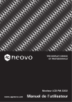 Moniteur LCD PM-3202 www.agneovo.com Manuel de l'utilisateur TABLE DES MATIÈRES INFORMATIONS DE SÉCURITÉ............................................................... SÉCURITÉ............................................................... 1 Avis de la Federal Communications Commission (FCC) (États-Unis uniquement).................................. uniquement).................................. 1 Ukraine RoHS........................................................................................................................................... RoHS........................................................................................................................................... 2 PRÉCAUTIONS........................................................................................... 3 PRÉCAUTIONS Avertissements à propos de l’installation.................................................................................................. l’installation.................................................................................................. 3 Avertissements à propos de l’utilisation.................................................................................................... l’utilisation.................................................................................................... 4 Nettoyage et entretien............................................................................................................................... entretien............................................................................................................................... 4 Notes sur l'écran LCD............................................................................................................................... LCD............................................................................................................................... 5 CHAPITRE 1 : DESCRIPTION DU PRODUIT........................................... PRODUIT........................................... 6 1.1 Déballage............................................................................................................................................ Déballage............................................................................................................................................ 6 1.2 Contenu de l’emballage. l’emballage....................................................................................................................... 6 1.3 Préparation de l'installation................................................................................................................. l'installation................................................................................................................. 7 1.4 Installation murale............................................................................................................................... murale............................................................................................................................... 7 1.4.2 Conditions requises pour la ventilation.................................................................................... ventilation.................................................................................... 8 1.4.1 Grille VESA.............................................................................................................................. VESA.............................................................................................................................. 8 1.5 Description de l'écran LCD. LCD.................................................................................................................. 9 1.5.1 Panneau de contrôle................................................................................................................ contrôle................................................................................................................ 9 1.5.2 Utilisation de la télécommande et du voyant d’état d’alimentationand. d’alimentationand..................................... 10 1.5.3 Prises d'entrée/sortie. d'entrée/sortie................................................................................................................ 10 1.6 Télécommande. Télécommande.................................................................................................................................... 11 1.6.1 Fonctions générales................................................................................................................. générales................................................................................................................. 11 1.6.2 Installation des piles dans la télécommande. télécommande............................................................................ 12 1.6.3 Manipulation de la télécommande........................................................................................... télécommande........................................................................................... 12 1.6.4 Portée de fonctionnement de la télécommande. télécommande....................................................................... 12 CHAPITRE 2 : FAIRE LES BRANCHEMENTS......................................... BRANCHEMENTS......................................... 13 CHAPITRE 3 : MENU AFFICHÉ À L’ÉCRAN. L’ÉCRAN............................................ 14 3.1 Utilisation du menu OSD..................................................................................................................... OSD..................................................................................................................... 14 3.2 Structure du menu OSD...................................................................................................................... OSD....................................................................
