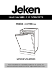 LAVE-VAISSELLE 14 COUVERTS MODÈLE : Z26LVI44 inox NOTICE D’UTILISATION Avant l’installation ou la première utilisation de cet appareil, lire attentivement cette notice. La conserver soigneusement par la suite. TABLE DES MATIÈRES TABLE DES MATIÈRES ........................................................................................ 1 AVERTISSEMENTS.............................................................................................. 2 CONSIGNES DE SÉCURITÉ .................................................................................. 3 DESCRIPTION DE L’APPAREIL .......................................................................... 11 INSTALLATION ................................................................................................. 12 UTILISATION .................................................................................................... 25 ENTRETIEN ET MAINTENANCE ........................................................................ 43 PANNES ET SOLUTIONS ................................................................................... 49 CODES D’ERREUR ............................................................................................ 55 GARANTIE ........................................................................................................ 56 CARACTÉRISTIQUES TECHNIQUES................................................................... 57 PROTECTION DE L’ENVIRONNEMENT ............................................................. 60 1 AVERTISSEMENTS Vous venez d'acheter notre produit et nous vous remercions. Nous apportons un soin particulier au design, à l'ergonomie et à la simplicité d'usage de nos produits. Nous espérons que cet appareil vous donnera entière satisfaction. Dans le souci d'une amélioration constante de nos produits, nous nous réservons le droit d'apporter à leurs caractéristiques techniques, fonctionnelles ou esthétiques toutes modifications liées à leur évolution. LISEZ ATTENTIVEMENT CES INSTRUCTIONS AVANT D'UTILISER L'APPAREIL ET CONSERVEZ-LES POUR POUVOIR LES CONSULTER ULTÉRIEUREMENT. 2 CONSIGNES DE SÉCURITÉ CONSIGNES GÉNÉRALES DE SÉCURITÉ QUANT À L'UTILISATION D'UN APPAREIL ÉLECTRIQUE 1. AVERTISSEMENT : afin d’éviter tout risque d’incendie, d’électrocution ou de blessure, veillez à toujours suivre les consignes de sécurité suivantes quand vous utilisez un appareil électrique. 2. Veillez à ce que les différents types d’emballage (cartons, sacs en plastique, polystyrène, bandes collantes, liens, etc.) soient hors de portée des enfants. Ces éléments comportent un risque potentiel. 3. Lors du déballage de l'appareil, de son installation et avant chaque utilisation, vérifiez son bon état général. Si vous constatez une quelconque anomalie sur l'appareil, le cordon d'alimentation ou la fiche, n'utilisez pas l'appareil et adressez-vous au service après-vente pour qu'il soit vérifié ou réparé. 4. Cet appareil n’est pas destiné à un usage professionnel ou commercial, ou pour d’autre but que celui pour lequel il a été conçu. Cet appareil peut cependant être utilisé dans des applications domestiques et analogues telles que : 3 - des coins cuisine réservés au personnel dans des magasins, bureaux et autres environnements professionnels ; - des fermes ; - l’utilisation par les clients des hôtels, motels et autres environnements à caractère résidentiel ; - des environnements du type chambres d’hôtes. Mais n’est pas destiné à être utilisé dans : - la restauration et autres applications similaires y compris la vente au détail. 5. L’installation du produit doit respecter strictement les exigences de la norme NF C15-100. 6. Avant de brancher votre appareil, assurez-vous que la tension électrique de votre domicile correspond à celle indiquée sur la plaque signalétique de l'appareil. 7. Ne laissez pas l'appareil sans surveillance lorsqu'il fonctionne. 8. Cet appareil peut être utilisé par des enfants âgés d'au moins 8 ans et par des personnes ayant des capacités physiques, sensorielles ou mentales réduites ou dénuées d’expérience ou de connaissance, s'ils (si elles) sont correctement surveillé(e)s ou si des instructions relatives à l'utilisation de l'appareil en toute sécurité leur ont été données et si les risques encourus ont été 4 appréhendés. Les enfants ne doivent pas jouer avec l’appareil. Le nettoyage et l'entretien de l'appareil ne doivent pas être effectués par des enfants, à moins qu'ils ne soient âgés d'au moins 8 ans et qu'ils soient sous la surveillance d'un adulte. 9. Cet appareil n’est pas un jouet. Les enfants de moins de 8 ans ne doivent pas utiliser l'appareil. 10. Pour éviter tout risque d’incendie, d’électrocution ou autres blessures aux personnes, ne plongez jamais l'appareil, le cordon d’alimentation ou la fiche dans l’eau ou tout autre liquide. Ne manipulez pas l’appareil et la fiche avec les mains mouillées. 11. Le cordon d'alimentation doit être manipulé avec précaution. L'appareil ne doit pas être tiré par le cordon. Celui-ci ne doit pas être placé sur le rebord d'une table ou d'un plan de travail. Il ne doit pas entrer en contact avec des surfaces chaudes. Lorsque vous le débranchez, tirez-le toujours au niveau de la fiche, ne tirez pas sur le câble lui-même. 12. AVERTISSEMENT : Lors du positionnement de l’appareil, s’assurer que le cordon d’alimentation n’est pas coincé ni endommagé. 13. Si le cordon d’alimentation est endommagé, il doit être remplacé par le fabricant, son service après-vente 5 ou une personne de qualification similaire, afin d'éviter tout danger. 14. Toute intervention sur l'appareil pendant son installation ou toute réparation doit être effectuée par le service après-vente ou une personne de qualification similaire. 15. Toute intervention ou nettoyage sur le produit doit se faire hors alimentation. Pour 