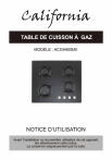 TABLE DE CUISSON A GAZ MODELE : ACGl460S/B NOTICE D'UTILISATION Avant !'installation ou la premiere utilisation de cet appareil, lire attentivement cette notice. La conserver soigneusement par la suite. TABLE DES MATIERES AVERTISSEMENTS ............................................................................................ 3 CONSIGNES DE SECURITE IMPORTANTES ................................................ 3-12 DESCRIPTION DE LA TABLE A GAZ ................................................................ 13 MODE EMPLOI .................................................................................. 14 NETTOYAGE ET ENTRETIEN .......................................................................... 18 GUIDE DE DÉPANNAGE ................................................................................. 20 RENSEIGNEMENTS TECHNIQUES.................................................................. 20 INSTALLATION ............................................................................................ 21-25 RACCORDEMENT DE GAZ.. ....................................................................... 25-27 ENTRETIEN .................................................................................. 28-30 CARACTERISTIQUES TECHNIQUES .............................................................. 31 SERVICE APRES-VENTE ET PIECES DE RECHANGE ................................ 32 PROTECTION DE L'ENVIRONNEMENT........................................................... 33 2 AVERTISSEMENTS Le fabricant décline toute responsabilité en cas de blessure causée à des personnes ou de dégât matériel dus à la non-observation des instructions d’entretien et à l’usage inadéquat de l’appareil. Après avoir retiré l’emballage des différentes pièces de l’appareil, vérifiez que celui-ci se trouve en parfait état. Si vous avez des doutes à ce sujet, n’utilisez pas l’appareil et adressez-vous à un vendeur ou à un technicien qualifié. Veillez également à ce que les différents types d’emballage (cartons, sacs en plastique, polystyrène, bandes collantes, liens, etc.) soient hors de portée des enfants. Ces éléments comportent un risque potentiel. Avant d’utiliser l’appareil, vérifiez si le courant de votre secteur correspond à celui qui est indiqué sur la plaque signalétique. Quand vous utilisez cet appareil, veuillez suivre les consignes de sécurité suivantes. MISES EN GARDE IMPORTANTES. LIRE ATTENTIVEMENT ET CONSERVER POUR RÉFÉRENCE ULTÉRIEURE. CONSIGNES DE SÉCURITÉ Avant l’utilisation de cet appareil, lisez attentivement la notice d’utilisation. Conservez cette notice avec soin. 3 1. Vérifiez premièrement si la tension indiquée sur le produit correspond à votre alimentation électrique. 2. Avertissement : afin d’éviter tout risque d’incendie, d’électrocution ou de blessure, veillez à toujours suivre les principales consignes de sécurité suivantes quand vous utilisez un appareil électrique. 3. Vérifiez régulièrement l’état de votre appareil. N’utilisez pas l’appareil si ce dernier est endommagé. 4. Ne manipulez ni l’appareil, ni la prise avec les mains mouillées. 5. N’utilisez pas l’appareil si le cordon d’alimentation ou la prise est endommagé(e). N’utilisez pas l’appareil s’il est tombé, s’il est endommagé, s’il est resté dehors ou s’il est tombé dans l’eau. Retournez l’appareil au service après-vente le plus proche pour qu’il soit réparé ou ajusté. 6. Ne tirez et ne portez pas l’appareil par le cordon d’alimentation, n’utilisez pas le cordon comme poignée, ne coincez pas le fil dans la porte et ne le tirez pas le long de bords ou angles acérés. 7. Ne placez pas l’appareil sur le cordon d’alimentation. Ne laissez en aucune façon le cordon s’enrouler ou s’emmêler. Tenez le cordon éloigné des surfaces chaudes. 8. Ne retirez pas la prise en tirant sur le cordon. Pour la retirer, prenez-la en main et retirez-la prudemment de la prise murale. 4 9. Utilisez uniquement une rallonge certifiée avec l’ampérage en vigueur dans votre pays. Des rallonges certifiées avec un ampérage inférieur risquent de surchauffer. Veillez à ce que personne ne trébuche sur le cordon ou la prise. 10. Attention : débranchez toujours le cordon d'alimentation ou coupez le disjoncteur avant de procéder au nettoyage. 11. Si le cordon d’alimentation est endommagé, il doit être remplacé par le fabricant, son service après-vente ou une personne de qualification similaire, afin d'éviter tout danger. 12. Toute réparation doit être effectuée par le service après-vente ou des personnes de qualification similaire. 13. Tous travaux électriques requis dans le cadre de l’installation de cet appareil doivent être effectués par un électricien qualifié ou une personne compétente. 14. Eteignez et débranchez l’appareil lorsque vous ne l’utilisez pas. 15. N’utilisez pas l’appareil près de matériaux inflammables. 16. N’utilisez pas d’autres accessoires que ceux étant fournis avec l’appareil. 5 17. Cet appareil peut être utilisé par des enfants âgés d'au moins 8 ans et par des personnes ayant des capacités physiques, sensorielles ou mentales réduites ou dénuées d’expérience ou de connaissance, s'ils (si elles) sont correctement surveillé(e)s ou si des instructions relatives à l'utilisation de l'appareil en toute sécurité leur ont été données et si les risques encourus ont été appréhendés. Les enfants ne doivent pas jouer avec l’appareil. Le nettoyage et l'entretien par l'usager ne doivent pas être effectués par des enfants sans surveillance. 18. Il convient de surveiller les enfants pour s’assurer qu’ils ne jouent pas avec l’appareil. 19. Cet appareil n’est pas un jouet. Ayez une stricte surveillance quand vous utilisez l’appareil en présence d’enfants ou d’animaux domestiques. 20. Ne nettoyez jamais l’appareil avec des produits l