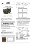 1.2.2 KM2 Terminaux amovibles Bornes débrochables à vis 40 Bornes amovibles à ressort 40 15 8.3 18.85 REGULATEUR ET MINI-PROGRAMMATEUR 15.5 8.3 26 1.2.3 Découpe du panneau 65 mm min. 65 mm min. 45+0.6 45+0.6 Manuel d’utilisation 24/07 - Code: ISTR_M_KM2-_F_01_-- Ascon Tecnologic S.r.l. a socio unico Viale Indipendenza 56, 27029 Vigevano (PV) - ITALY Tel.: +39 0381 69871/FAX: +39 0381 698730 Web site: www.ascontecnologic.com e-mail: [email protected] 2 CONNEXIONS Généralites pour le câblage 1 MONTAGE 1.1 Recommandations de montage Instrument conçu pour un montage permanent , en intérieur uniquement, dans une armoire éléctrique, avec bornier accessible et câblage par l’arrière. Choisir un emplacement avec les caractériqtiques suivantes: Ê Facile d’accès; Ê Peu de vibrations et pas de chocs; Ê Il devrait y avoir aucun gaz corrosifs; Ê Sans présence d’eau ou d’autres fluides (i.e. condensation); Ê Température ambiante compatible avec les spécifications (0... 50°C); Ê Humidité relative compatible avec les spécifications (20... 85%); Montage sur tableau avec épaisseur maxi 15 mm. Si l’indice de protection maximal IP65 est requis, le joint optionnel doit être installé. 1.2 2.1 Schéma de câblage Out1 48 11 Out2 DI2 (note) Out3 Entrée analogique 12 VDC (note) PV Transducteur 2 fils Alimentation mV, V 63.3 mA Thermocouple PV 15 Transducteur 3 fils Passif 4... 20 mA 44.5 AT Entrée T.C. 50 mA AC 12 VDC (note) KM2 PV DI1 RS485 Dimensions (mm) 1.2.1 Instrument avec terminaux non-amovibles 48 Ê Séparer les câbles de puissance et les câbles de mesure. Ê Les composants externes (barrières zener, etc.) connectés entre le capteur et les bornes d’entrée peuvent générer des erreurs de mesure dûes à une résistance de ligne excessive ou mal compensée ainsi qu’à des pics de courant. Ê Si certains câbles sont blindés, le blindage de protection doit être connecté à la terre d’un seul côté. Ê Attention aux résistances de ligne, une résistance trop élevée génère des erreurs de mesure. m Pt1000/NTC/PTC AC/DC Relais Out 1: 4 (4) A/250 VAC Relais Out 2: 2 (1) A/250 VAC SSR Drive Out 1, 2, 3: 12 Vdc/20 mA Out1: 0/4... 20 mA, 0/2... 10V Note: La borne 4 peut être programmée comme: - Entrée logique (DI 2), - Sortie SSR Drive 12 Vdc/20 mA (Out 3) - Alimentation transmetteur 12 Vdc/20 mA Pt100 Pour sélectionner le Transformateur de Courant (Entrée T.C.: aux bornes 11 et 12), voir le chapitre: “4. Comment commander” une page 4. Ascon Tecnologic S.r.l. - Ligne KM2- - Manuel d’utilisation - PAG. 1 Entrée 0/4... 20 mA pour transmetteurs passifs avec alimentation pour transmetteur interne Courant de détection de continuité: 250 nA. Soudure froide: Compensation automatique entre 0... 50°C. Dérive thermique de la CSF: 0.1°C/°C après 20 min de chauffe. Impédance d’entrée: > 1 MW. Calibration: Selon EN 60584-1. Note: Pour les entrées TC, utiliser des câbles de compensation, de préférence blindés. Entrée capteur infrarouge Exergen 2 _ 2.2.2 1 + Résistance externe: Sans objet. Soudure froide: Compensation automatique entre 0... 50°C. Dérive thermique de la CSF: 0.1°C/°C. Impédance d’entrée: > 1 MW. 2.2.3 Entrée RTD (Pt 100) RTD 3 1 Entrée RTD Pt 1000, NTC et PTC * = Also NTC and PTC 3 _ Impédance d’entrée > 1 MW pour entrée mVt, 500 kW pour entrée V. 0/4...20 mA Passive transmitter 2 1 + + External PWS 2 + 1 Entrée 0/4... 20 mA pour transmetteur actif 0/4...20 mA Active transmitter 2.2.7 2 + + 1 Entrées Logiques Notes de sécurité Digital Input 2 16 15 4 Digital Input 1 Résistance maximum: 100 W. Niveau de contact: DI1 = 10 V, 6 mA; DI2 = 12 V, 30 mA. Digital Input 2 + 16 15 4 Digital Input 1 Etat logique 1: 6... 24 VDC; Etat logique 0: 0... 3 VDC. _ + Entrée 0/4... 20 mA pour transmetteur passif avec alimentation pour transmetteur externe 2 Entrée V et mV mV V Impédance d’entrée: < 53 W. Alimentation auxiliaire interne: 12 VDC (±20%), 20 mA max.. Entrée logique par 24 VDC Résistance de ligne: Non compensée. Circuit d’entrée Pt 1000: Injection de courant (15 µA). Calibration Pt 1000: Selon EN 60751/A2. 2.2.5 1 Entrée logique par contact Circuit d’entrée: Injection de courant(150 µA). Résistance de ligne: Compensation automatique jusqu’à 20 W/fil avec erreur maxi 0.3°C. Calibration: Selon EN 60751/A2. Note: La résistance des 3 fils doit être identique. Pt 1000 (*) 4 Ê Séparer les câbles d’entrées logiques et la puissance; Ê L’instrument met 150 ms pour détecter un changement d’état; Ê Les entrées logiques ne sont pas isolées de l’entrée mesure. Une isolation double ou renforcée entre les entrés logiques et l’alimenttion doit être effectuée en externe. 2 2.2.4 + _ _ + 1 4...20 mA Passive transmitter _ 2 _ Entrée termocouple Entrée mA _ 2.2.1 2.2.6 _ Entrées _ 2.2 2.2.8 Entrée du Transformateur de Courant 12 + 11 m C.T. input 50 mA AC Pour sélectionner le transformateur de courant (Entrée T.C.: aux bornes 11 et 12), voir le chapitre “4. Comment commander” une page 4. Ascon Tecnologic S.r.l. - Ligne KM2- - Manuel d’utilisation - PAG. 2 2.3 Sorties Sortie SSR Drive Notes de sécurité Ê Pour éviter les chocs électriques, connecter l’alimentation en dernier. Ê Pour les connexions d’alimentation utiliser des câbles N°16 AWG ou plus conçus pour au moins 75°C. Ê Utiliser du câble cuivre uniquement. Ê Les sorties SSR ne sont pas isolées. Une isolation renforcée sera assurée par les relais statiques. Ê Pour les sorties SSR, mA et V si la ligne est de plus de 30 m utiliser un câble blindé. Avant de racccorder les actionneurs, nous recommandons de configurer au préalable l’instrument (ex.: type d’entrée, de régulation, alarme etc.). SSR Niveau logique 0: Niveau logique 1: 2.3.3 Sortie 3 (Out3) - Out3 Contact: Operations: NO C 2.4 • 4 A /250 V cosj =1 • 2 A /250 V cosj =0.4 1 x 105 Sortie SSR Drive + 8 7 Vout < 0.5 VDC; 12 V