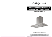 HOTTE CHEMINÉE MURALE À ASPIRATION PÉRIMÉTRALE MODÈLE : AA9-6 SS NOTICE D’UTILISATION Avant l’installation ou la première utilisation de cet appareil, lire attentivement cette notice. La conserver soigneusement par la suite. AA9-6 SS v1 (Apr-2016) 1 2 7 8 14 15 16 17 AVERTISSEMENTS Le fabricant décline toute responsabilité en cas de blessure causée à des personnes ou de dégât matériel dus à la non-observation des instructions d’entretien et à l’usage inadéquat de l’appareil. Après avoir retiré l’emballage des différentes pièces de l’appareil, vérifiez que celui-ci se trouve en parfait état. Si vous avez des doutes à ce sujet, n’utilisez pas l’appareil et adressezvous à un vendeur ou à un technicien qualifié. Veillez également à ce que les différents types d’emballage (cartons, sacs en plastique, polystyrène, bandes collantes, liens, etc.) soient hors de portée des enfants. Ces éléments comportent un risque potentiel.Avant d’utiliser l’appareil, vérifiez si le courant de votre secteur correspond à celui qui est indiqué sur la plaque signalétique. 1 Quand vous utilisez cet appareil, veuillez suivre les consignes de sécurité suivantes. MISES EN GARDE IMPORTANTES. LIRE ATTENTIVEMENT ET CONSERVER POUR RÉFÉRENCE ULTÉRIEURE. CONSIGNES DE SÉCURITÉ Avant l’utilisation de cet appareil, lisez attentivement la notice d’utilisation. Conservez cette notice avec soin. Vérifiez premièrement si la tension indiquée sur le produit correspond à votre alimentation électrique. Avertissement : afin d’éviter tout risque d’incendie, d’électrocution ou de blessure, veillez à toujours suivre les principales consignes de sécurité suivantes quand vous utilisez un appareil électrique. Vérifiez régulièrement l’état de votre appareil. N’utilisez pas l’appareil si ce dernier est endommagé. Ne manipulez ni l’appareil, ni la prise avec les mains mouillées. N’utilisez pas l’appareil si le cordon d’alimentation ou la prise est endommagé(e). N’utilisez pas l’appareil s’il est tombé, s’il est endommagé, s’il est resté dehors ou s’il est tombé dans l’eau. Retournez l’appareil au service après- vente le plus proche pour qu’il soit réparé ou ajusté. Ne tirez et ne portez pas l’appareil par le cordon d’alimentation, n’utilisez pas le cordon comme poignée, ne 2 coincez pas le fil dans la porte et ne le tirez pas le long de bords ou angles acérés. Ne placez pas l’appareil sur le cordon d’alimentation. Ne laissez en aucune façon le cordon s’enrouler ou s’emmêler. Tenez le cordon éloigné des surfaces chaudes. Ne retirez pas la prise en tirant sur le cordon. Pour la retirer, prenez-la en main et retirez-la prudemment de la prise murale. Utilisez uniquement une rallonge certifiée avec l’ampérage en vigueur dans votre pays. Des rallonges certifiées avec un ampérage inférieur risquent de surchauffer. Veillez à ce que personne ne trébuche sur le cordon ou la prise. Attention : débranchez toujours le cordon d'alimentation ou coupez le disjoncteur avant de procéder au nettoyage. Si le cordon d’alimentation est endommagé, il doit être remplacé par le fabricant, son service après-vente ou une personne de qualification similaire, afin d'éviter tout danger. Toute réparation doit être effectuée par le service aprèsvente ou des personnes de qualification similaire. Tous travaux électriques requis dans le cadre de l’installation de cet appareil doivent être effectués par un électricien qualifié ou une personne compétente. Eteignez et débranchez l’appareil lorsque vous ne l’utilisez pas. 3 N’utilisez pas l’appareil près de matériaux inflammables. N’utilisez pas d’autres accessoires que ceux étant fournis avec l’appareil. Cet appareil peut être utilisé par des enfants âgés d'au moins 8 ans et par des personnes ayant des capacités physiques, sensorielles ou mentales réduites ou dénuées d’expérience ou de connaissance, s'ils (si elles) sont correctement surveillé(e)s ou si des instructions relatives à l'utilisation de l'appareil en toute sécurité leur ont été données et si les risques encourus ont été appréhendés. Les enfants ne doivent pas jouer avec l’appareil. Le nettoyage et l'entretien par l'usager ne doivent pas être effectués par des enfants sans surveillance. Il convient de surveiller les enfants pour s’assurer qu’ils ne jouent pas avec l’appareil. Cet appareil n’est pas un jouet. Ayez une stricte surveillance quand vous utilisez l’appareil en présence d’enfants ou d’animaux domestiques. Ne nettoyez jamais l’appareil avec des produits liquides inflammables. Ne nettoyez jamais l’appareil avec des produits liquides inflammables. Les vapeurs risqueraient de provoquer un incendie ou une explosion. Ne stockez pas et n’utilisez pas d’essence ou toute autre vapeur ou liquide inflammable à proximité de cet appareil. Les fumées peuvent entraîner un incendie ou une explosion. 4 Cet appareil est destiné à être utilisé dans des applications domestiques et analogues telles que : - les coins cuisine réservés au personnel des magasins, bureaux et autres environnements professionnels ; - les fermes ; - l’utilisation par les clients des hôtels, motels et autres environnements à caractère résidentiel ; - les environnements du type chambres d’hôtes. Toutes interventions ou nettoyage sur le produit doivent se faire hors alimentation. Pour cela la fiche d’alimentation doit être déconnectée de la prise de courant. Pour éviter tout risque d’incendie, d’électrocution ou autres blessures aux personnes, ne plongez jamais le cordon d’alimentation ou la prise dans de l’eau ou tout autre liquide. Veuillez nettoyer la hotte et le filtre régulièrement, afin de garantir leur bon fonctionnement et leur efficacité. Nettoyez l’appareil en suivant soigneusement les consignes présentes dans 